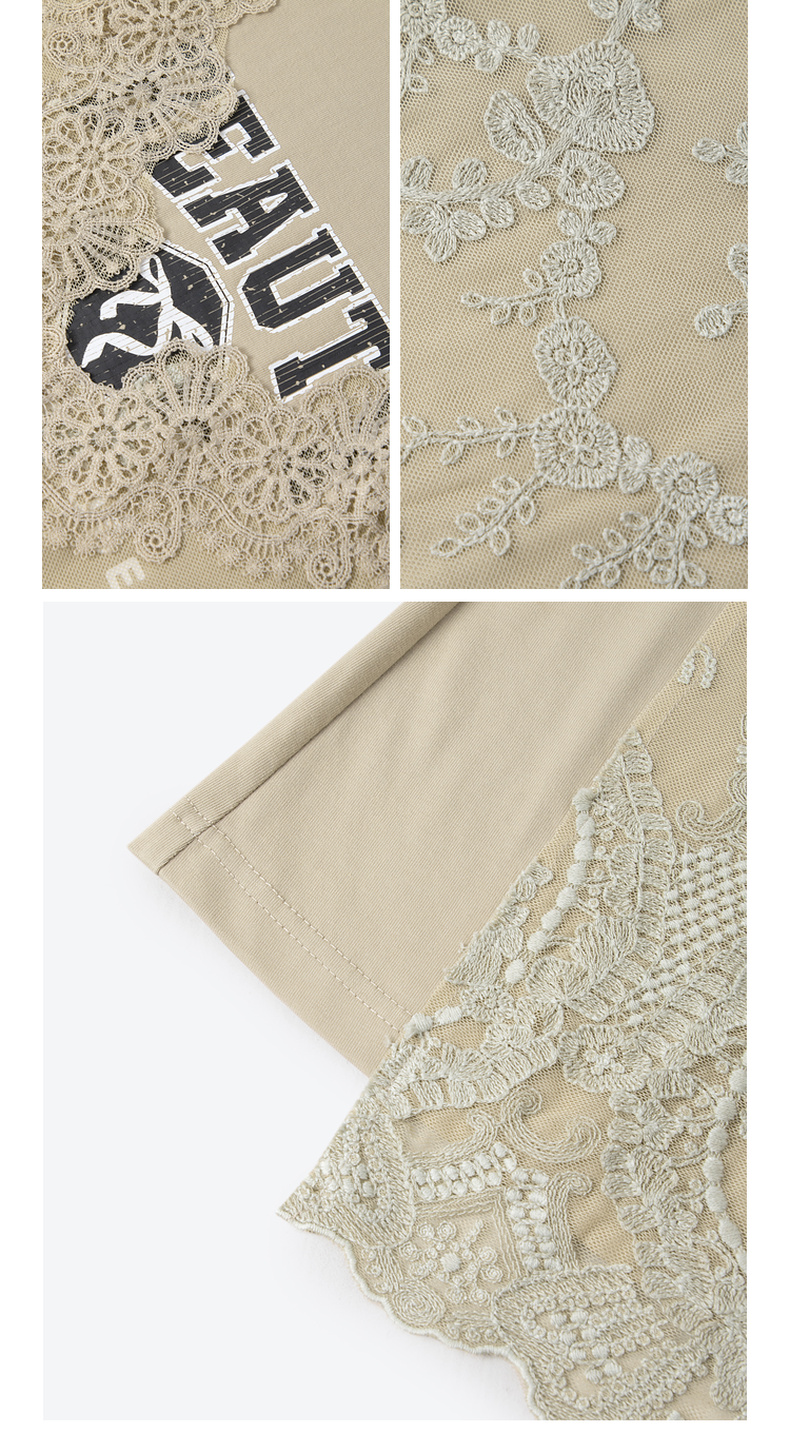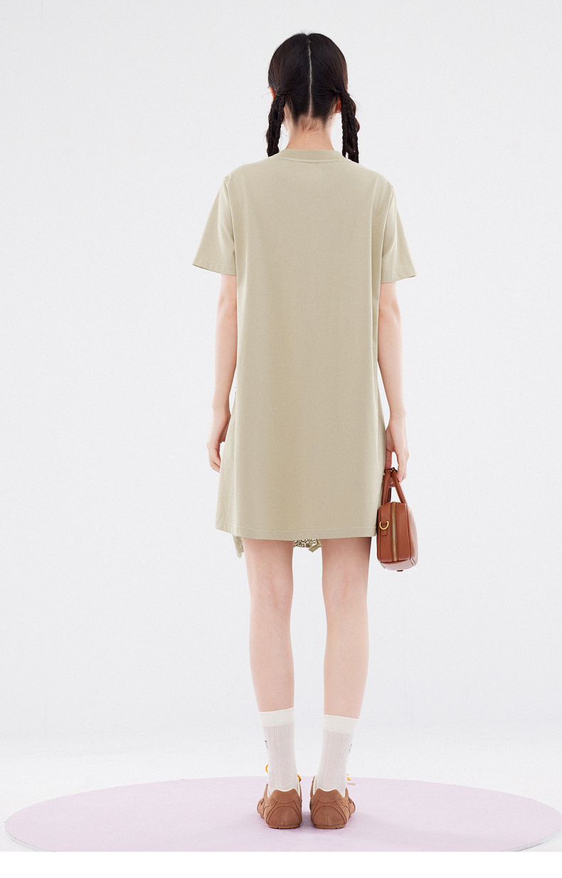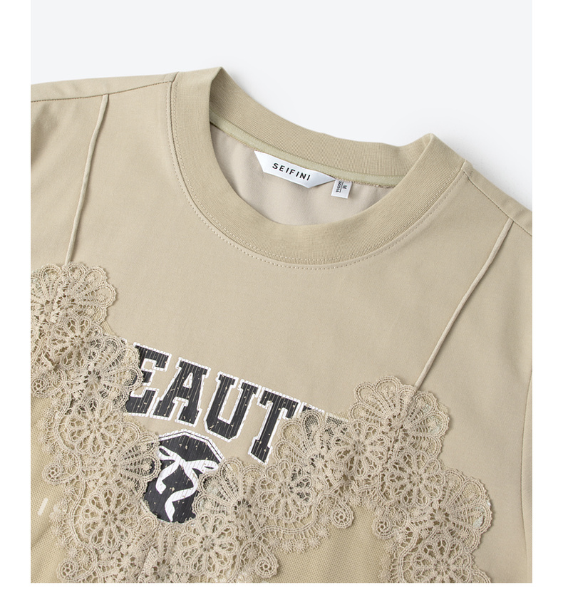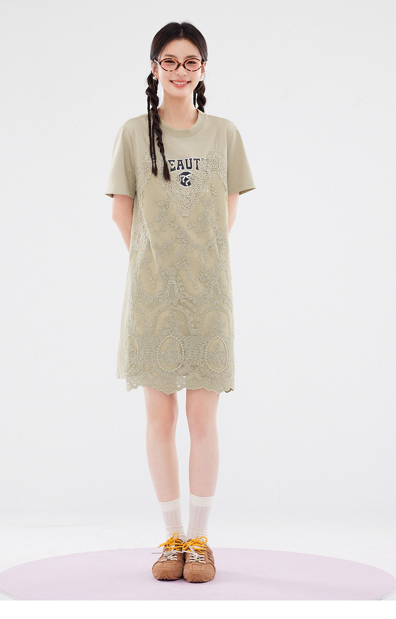 【严选】诗凡黎假两件蕾丝拼接T恤连衣裙2024夏新款洋气圆领直筒裙女SF6391641