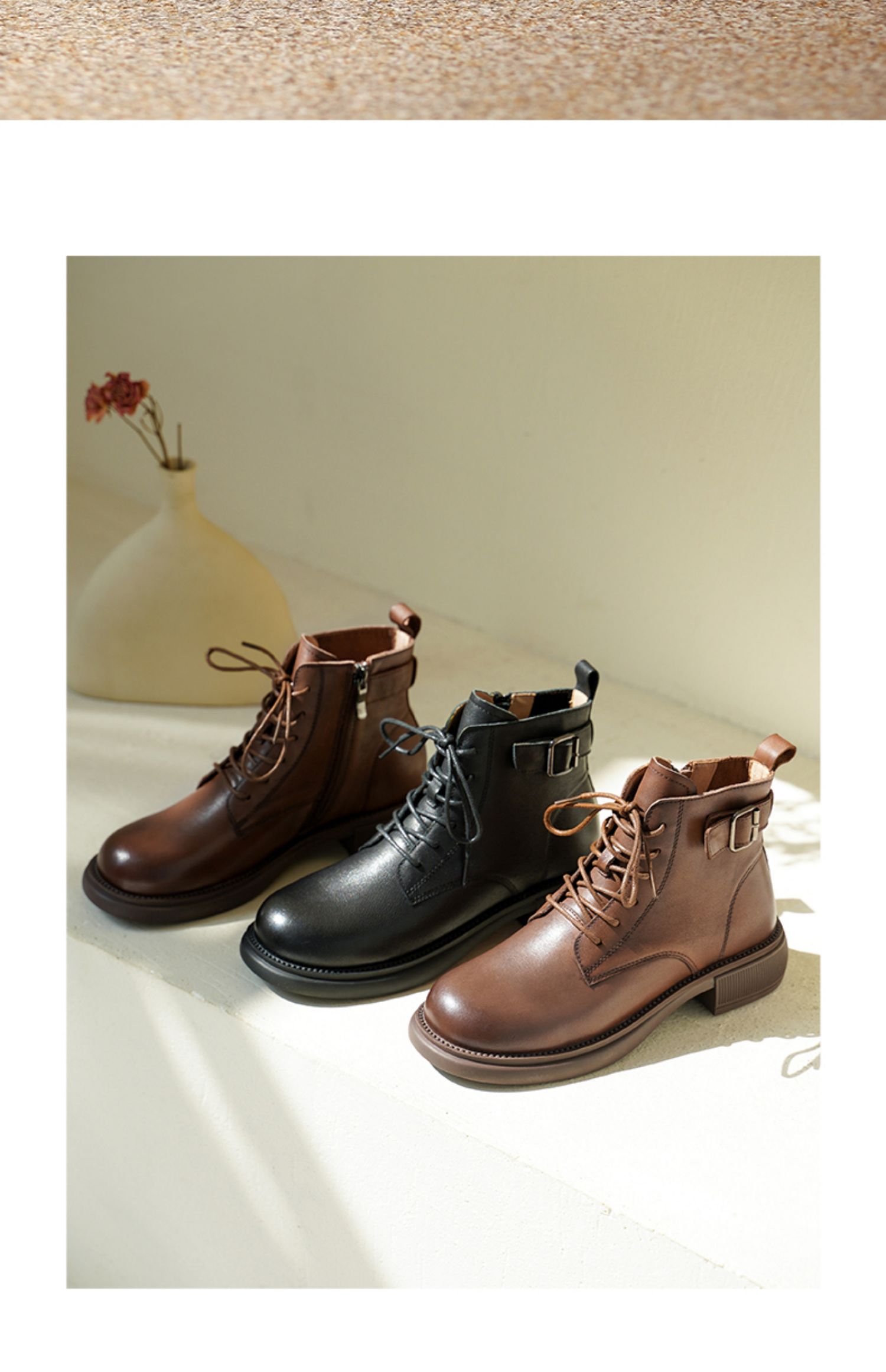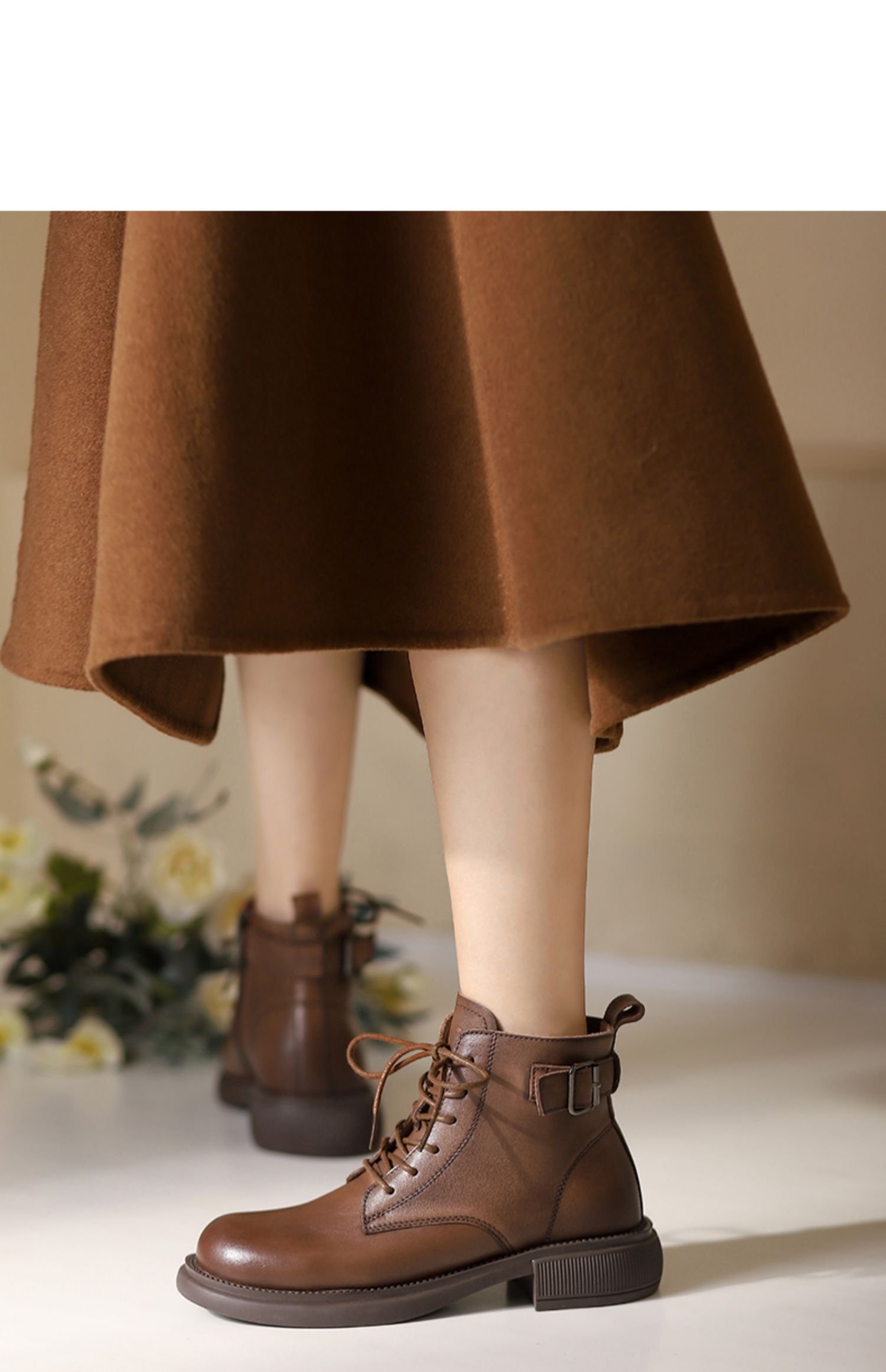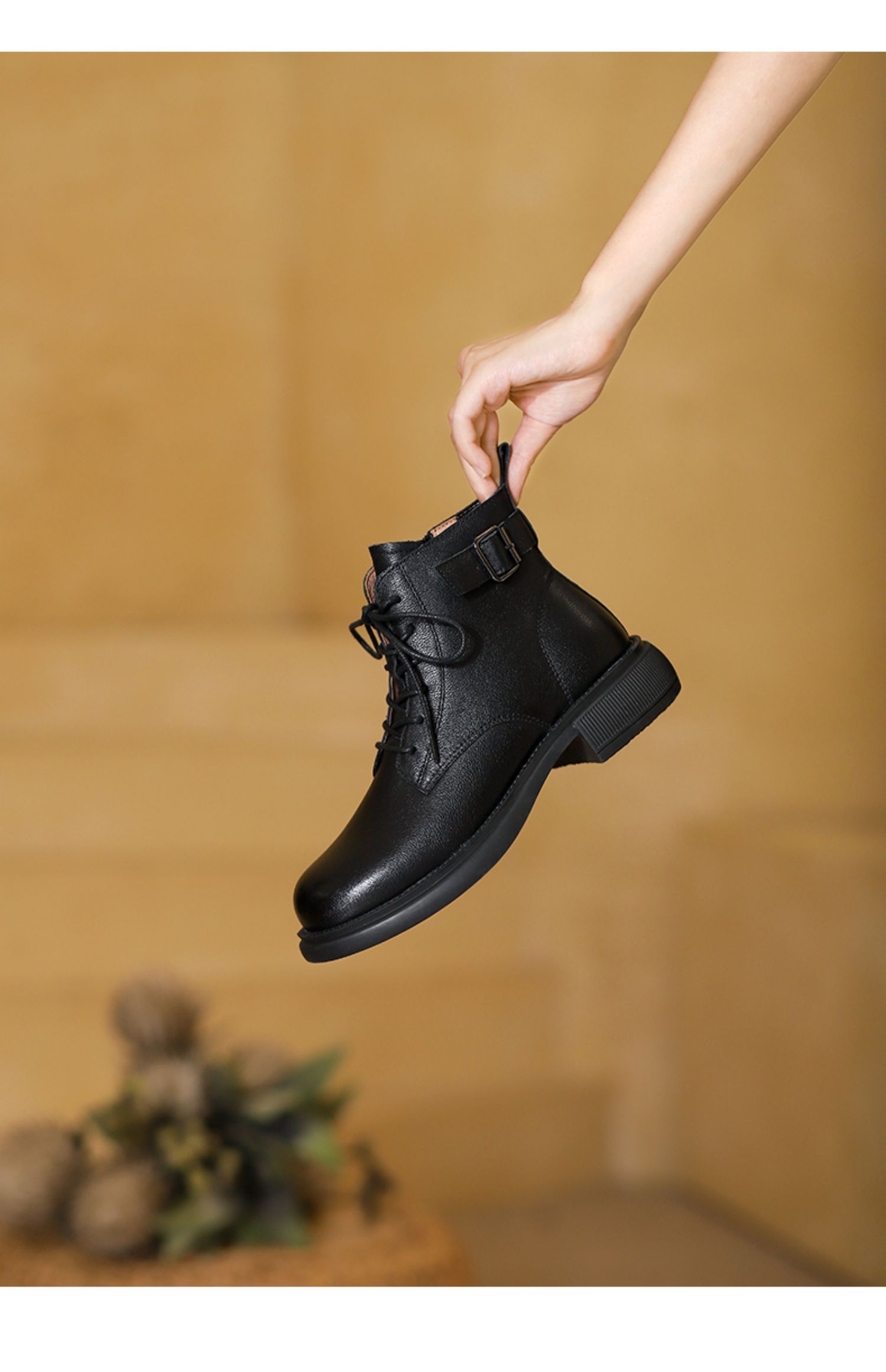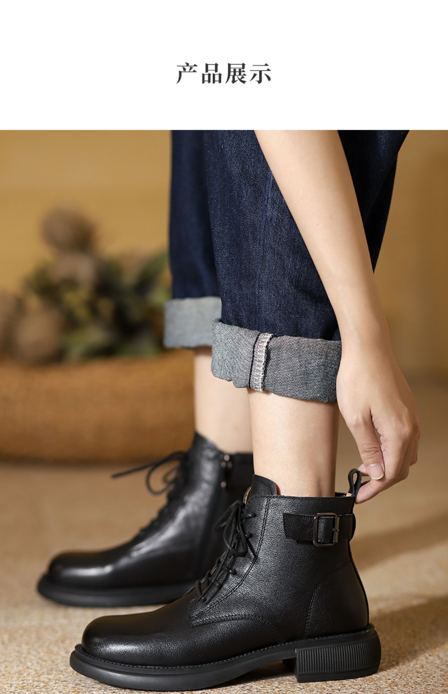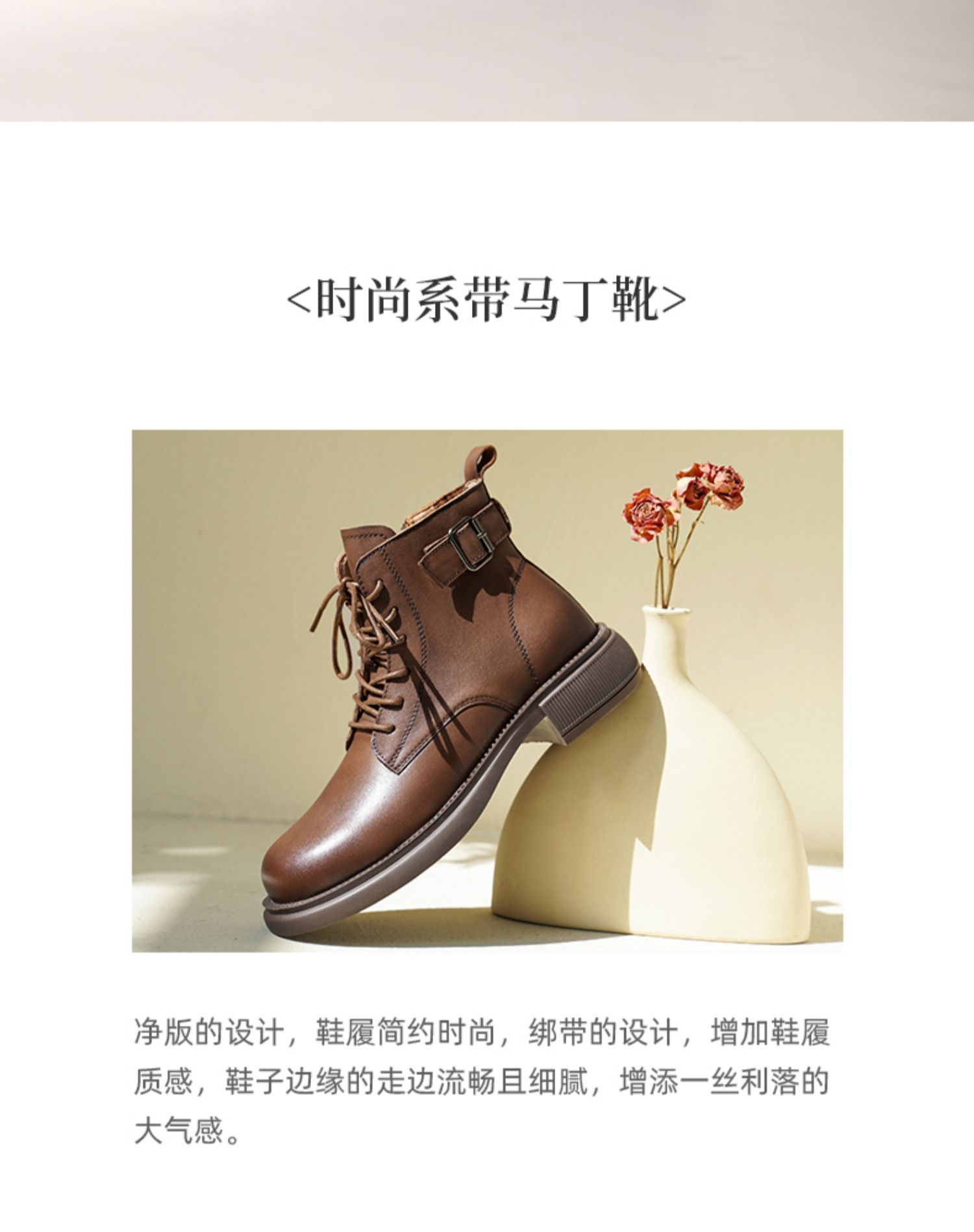 西村名物2021秋冬新款时装款真皮马丁靴女商场同款厚底女靴X21DS43801