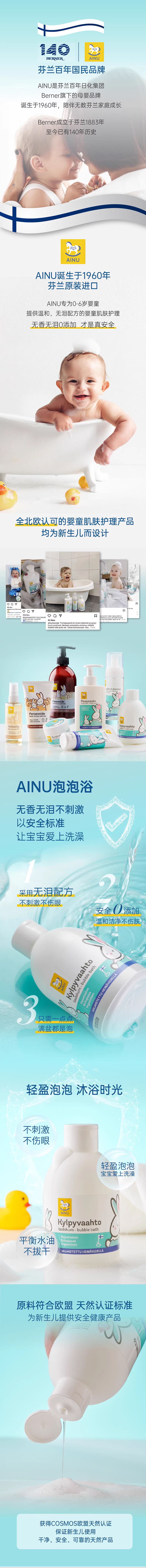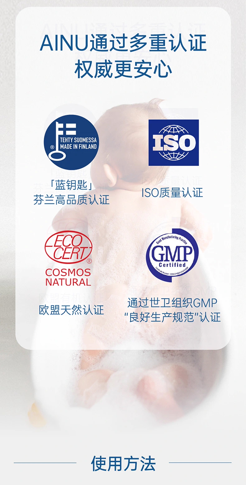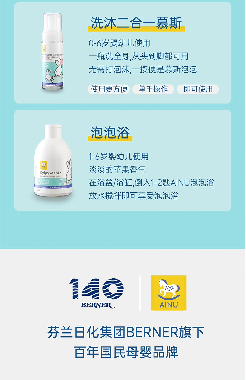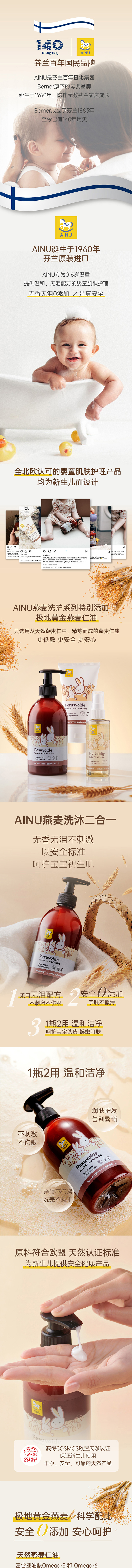 芬兰AINU国民儿童洗护 安心特护系列&燕麦特润系列 低敏温和 无香无泪配方 0有害添加 亲肤不刺激