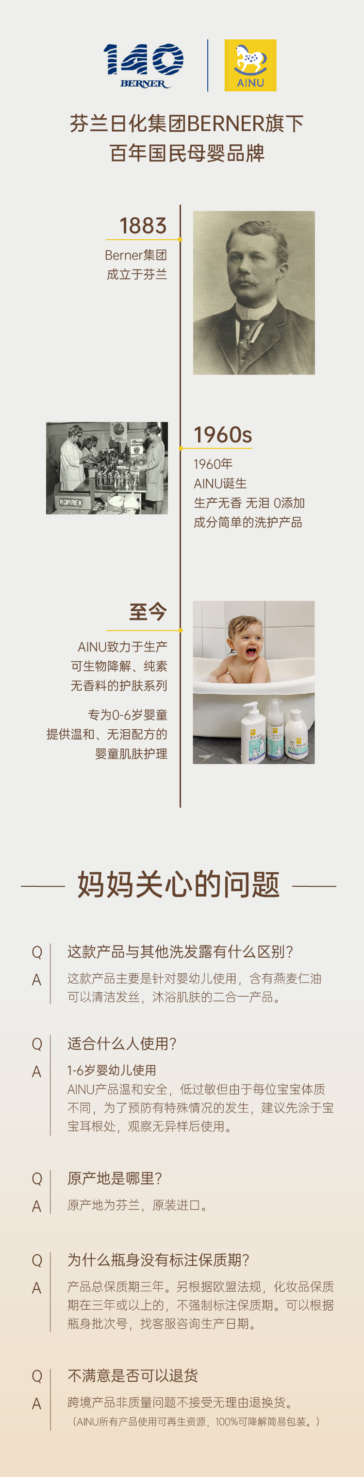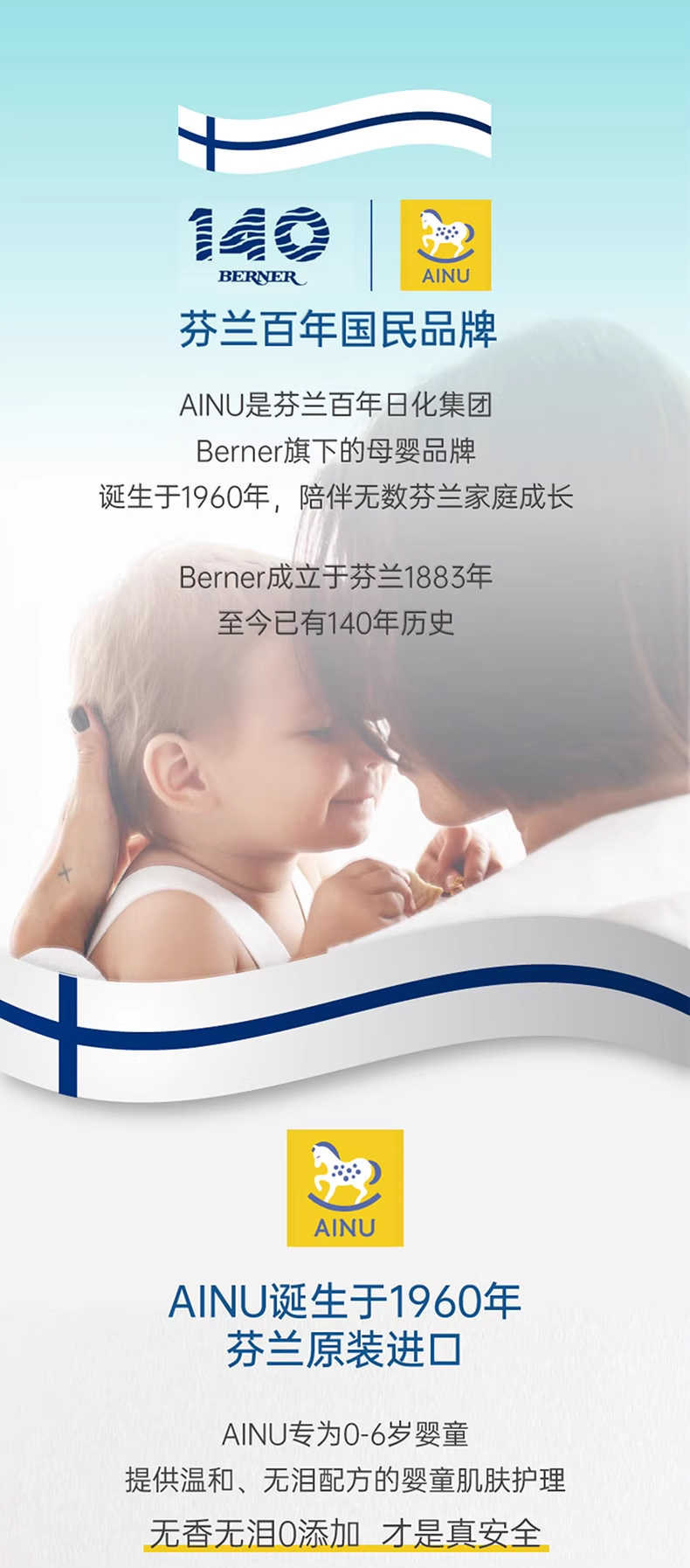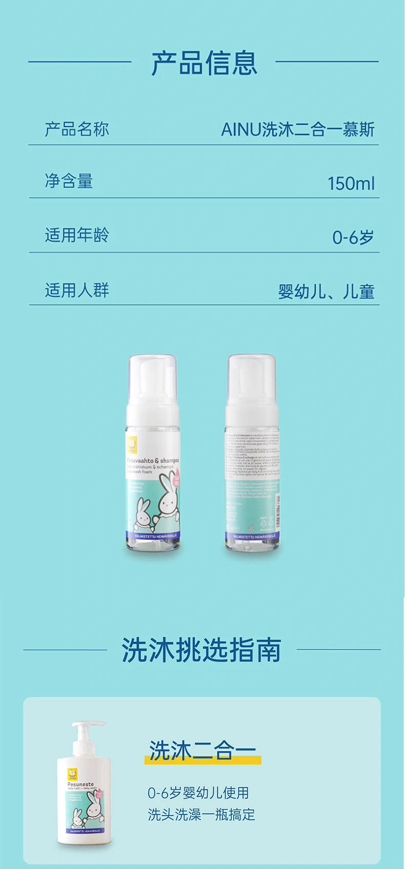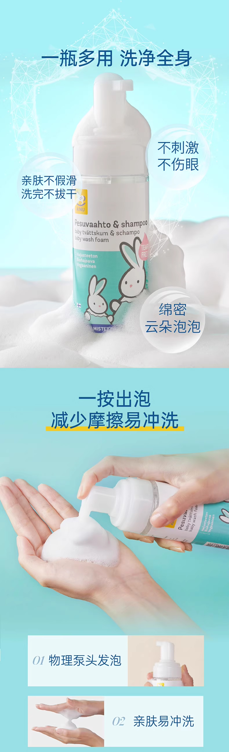 芬兰AINU国民儿童洗护 安心特护系列&燕麦特润系列 低敏温和 无香无泪配方 0有害添加 亲肤不刺激