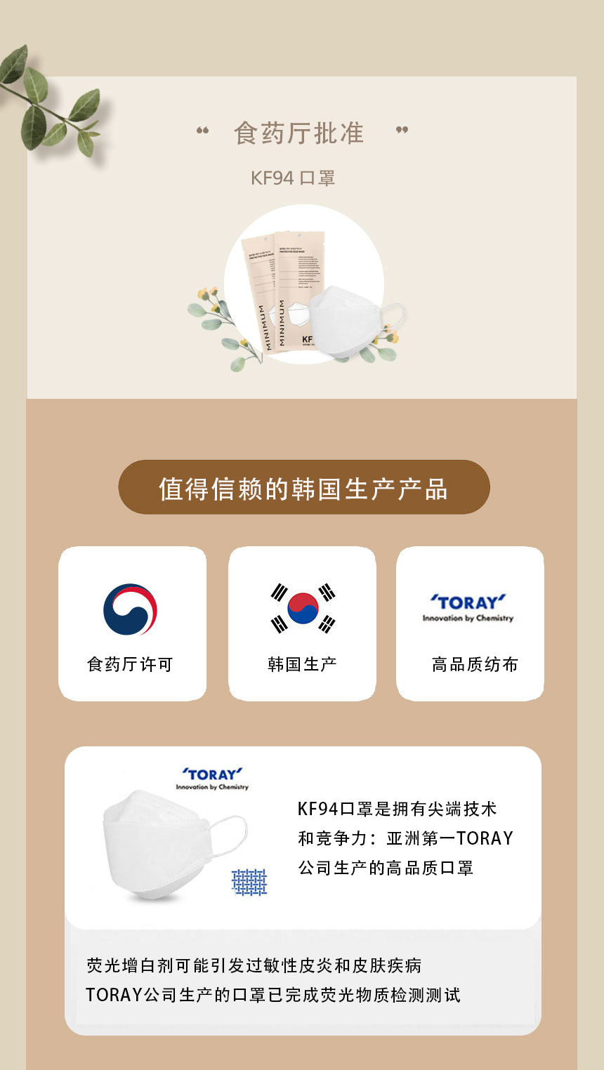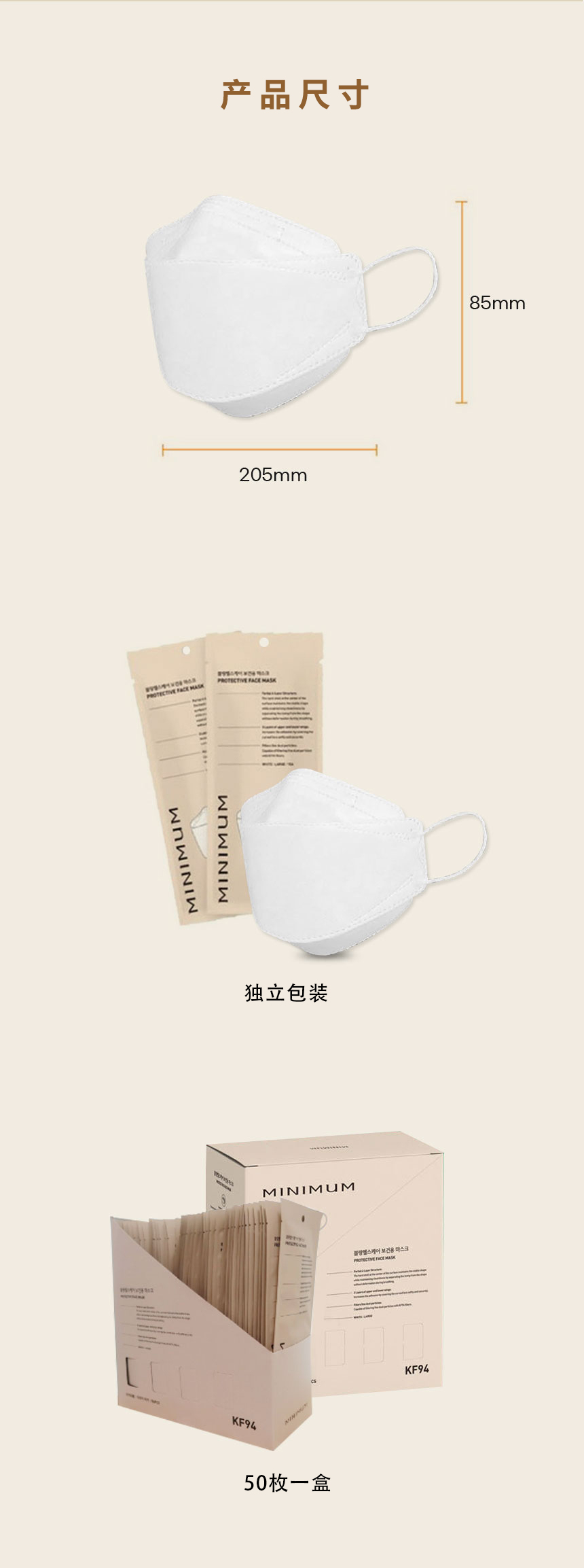 韩国MINIMUM KF94口罩 3D立体一次性独立包装 50枚/盒