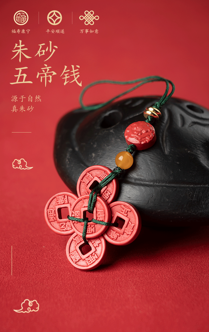 朱砂五帝钱挂件手机挂件包包随身挂件
