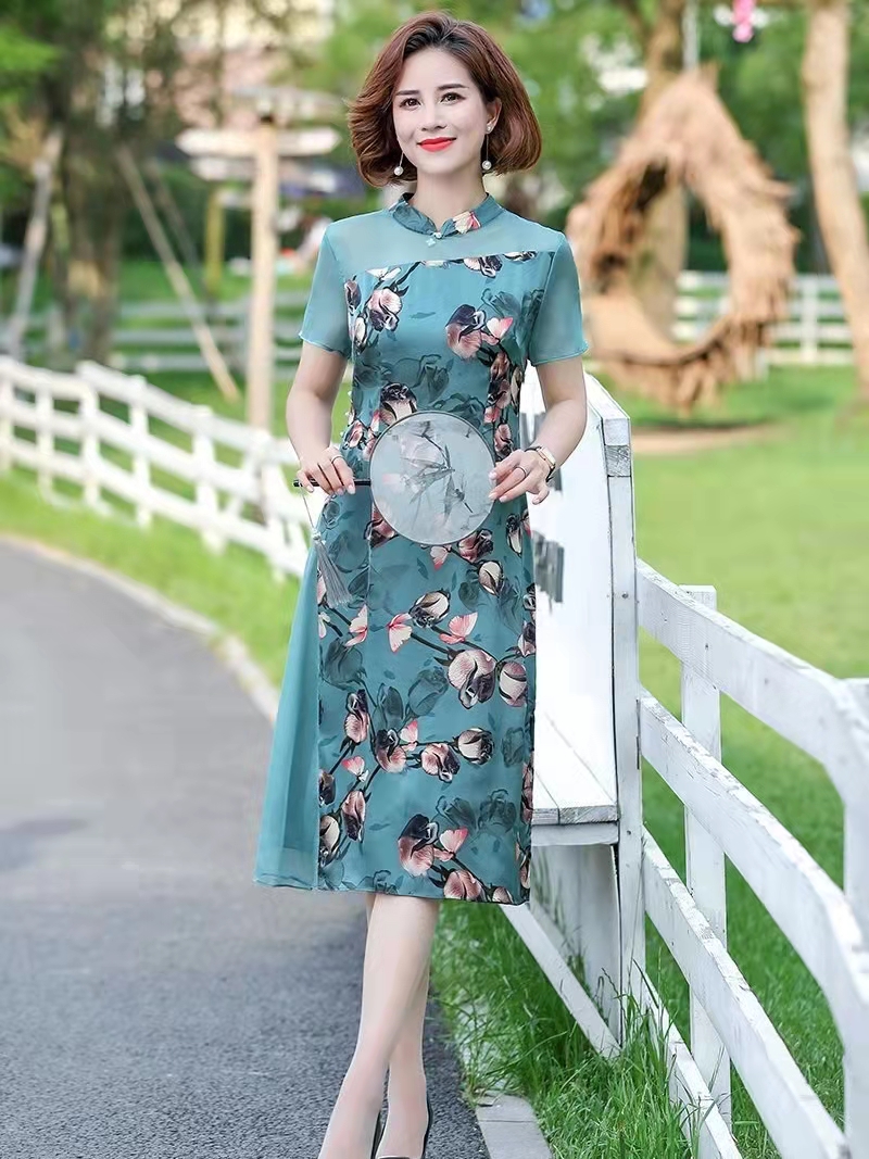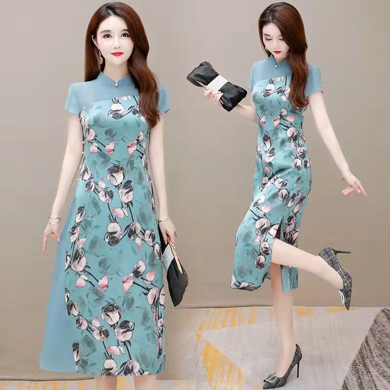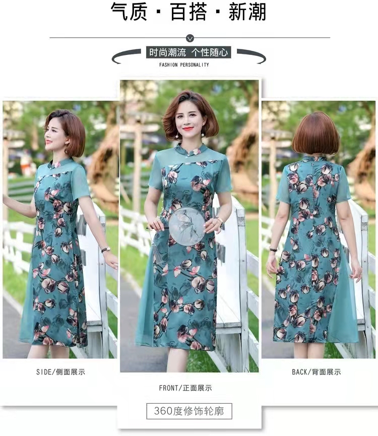 采帛改良旗袍碎花连衣裙