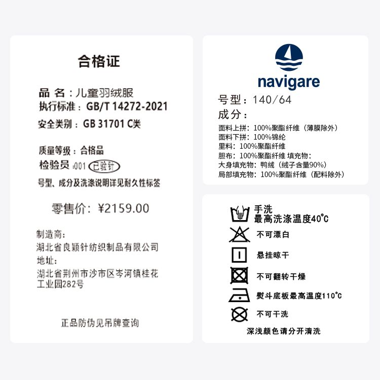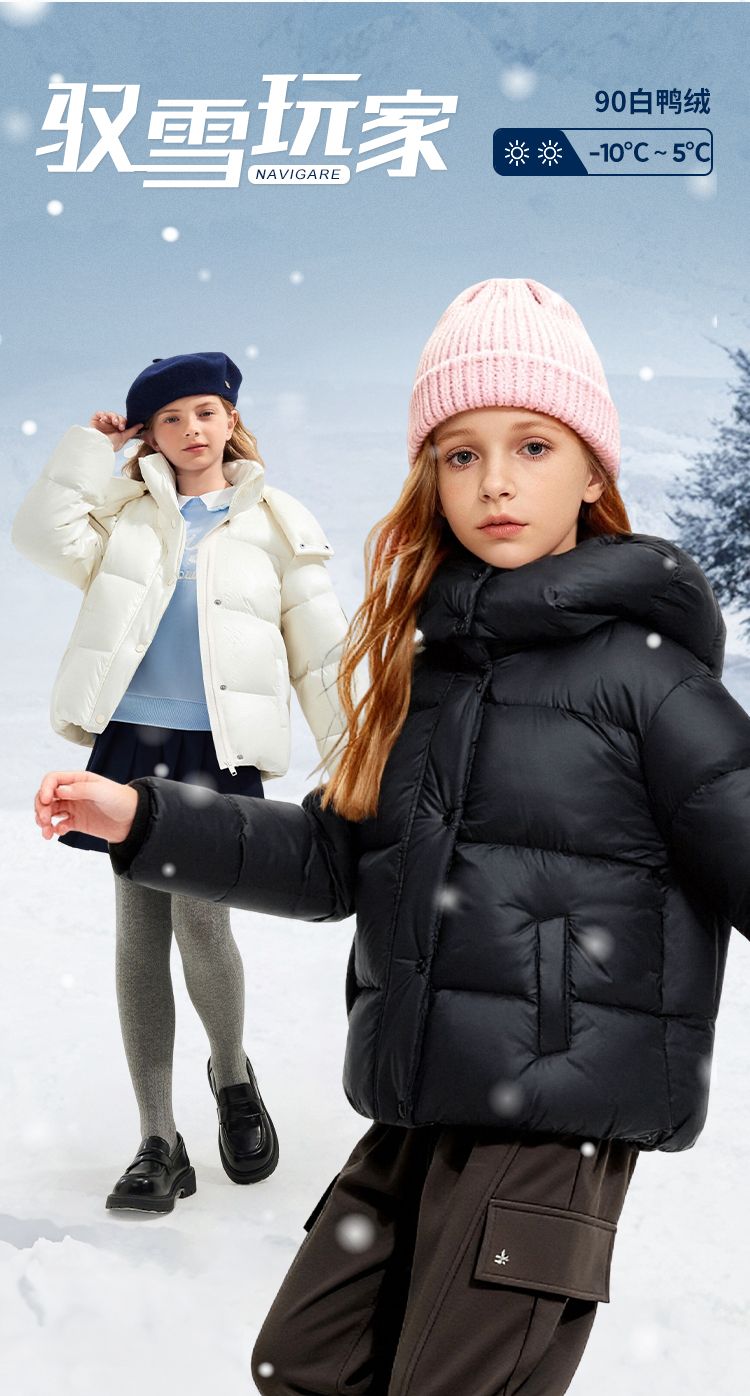 【90绒】【120-170】【纳维凯尔】意大利小帆船女童连帽羽绒服