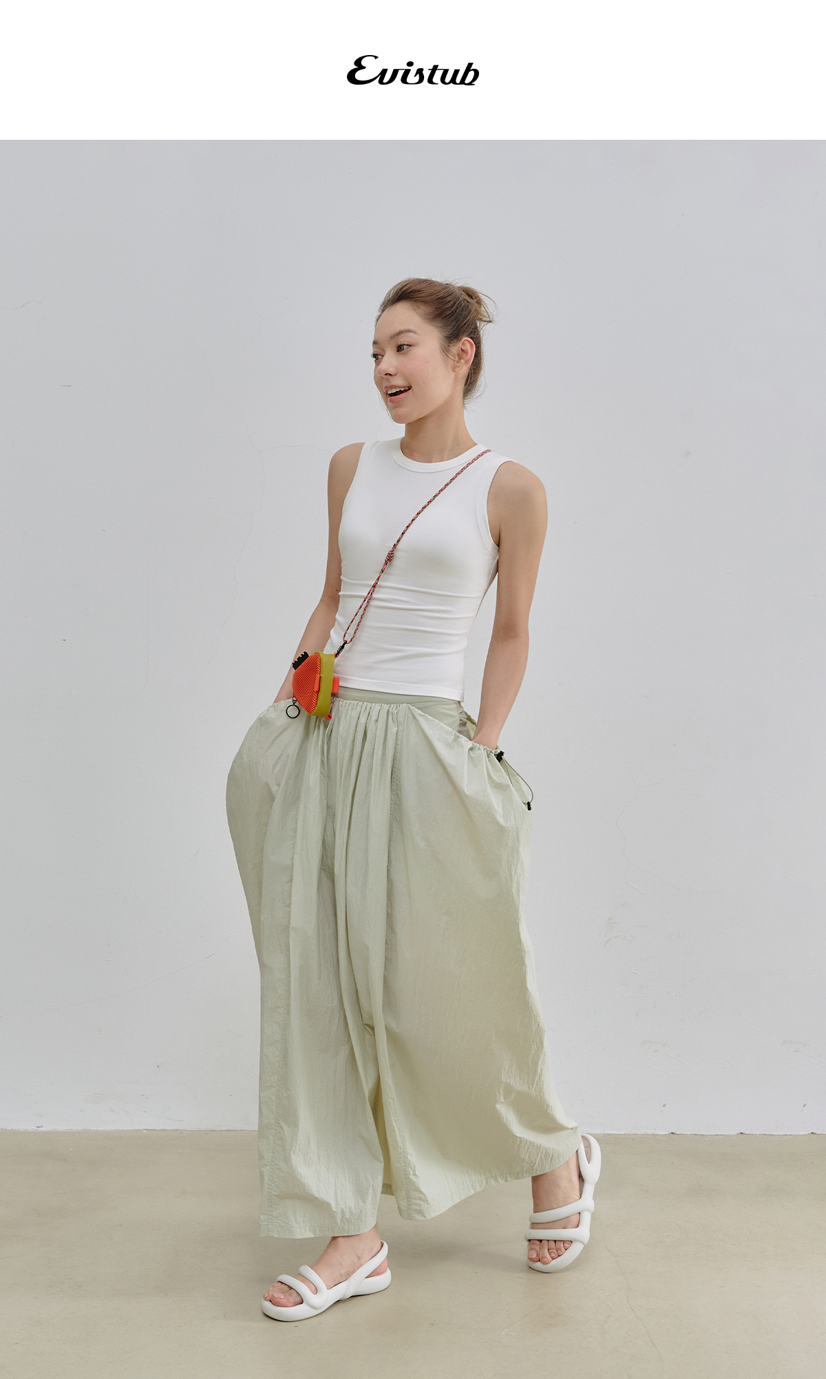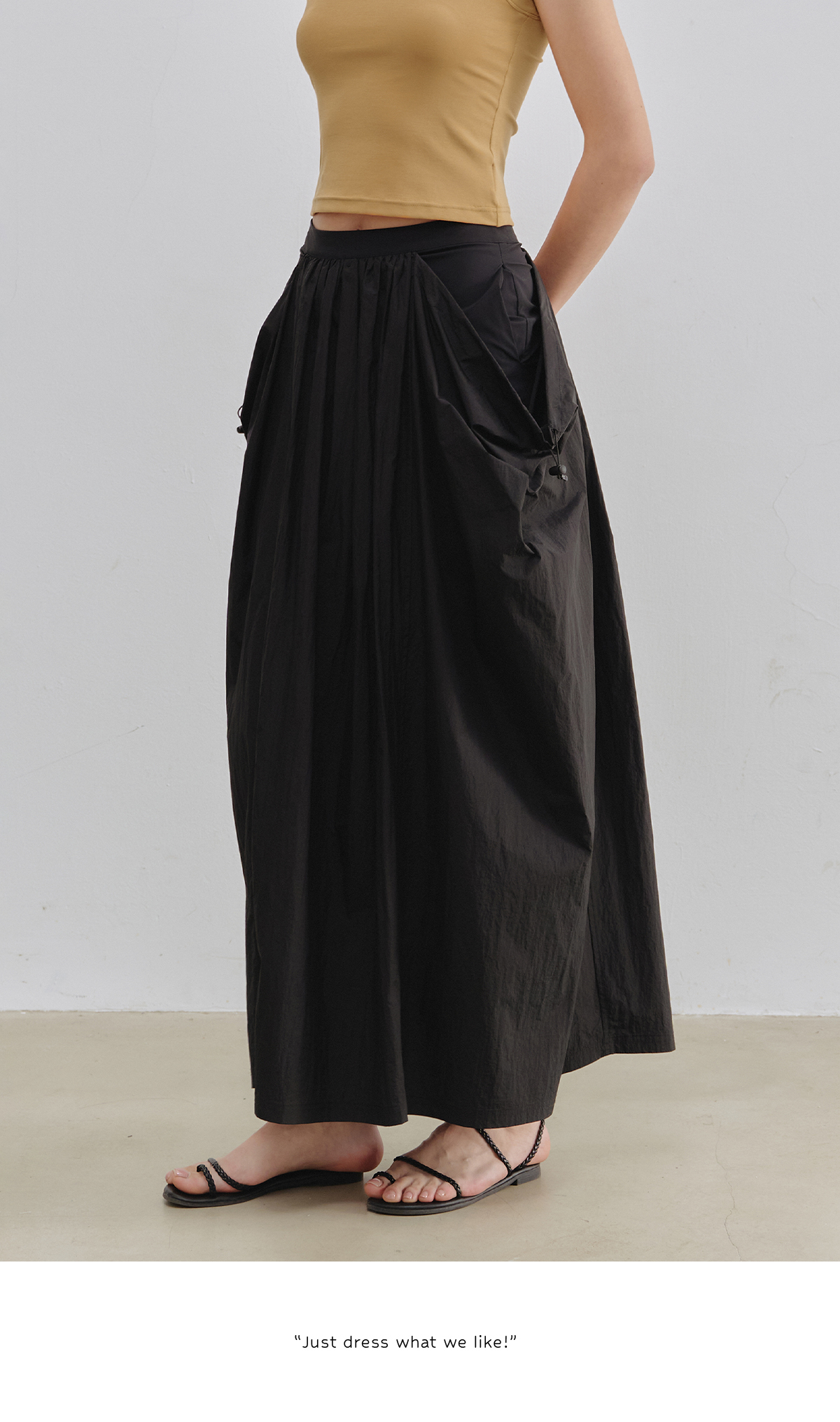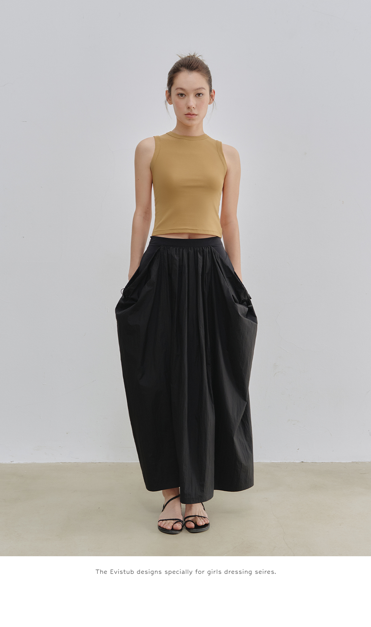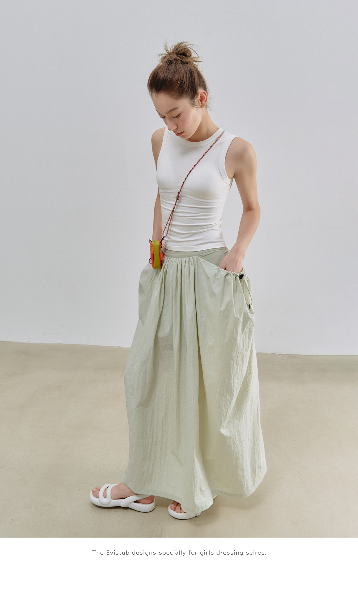 Evistub女装/E-5XDK484/复古褶皱抽绳休闲长裙女