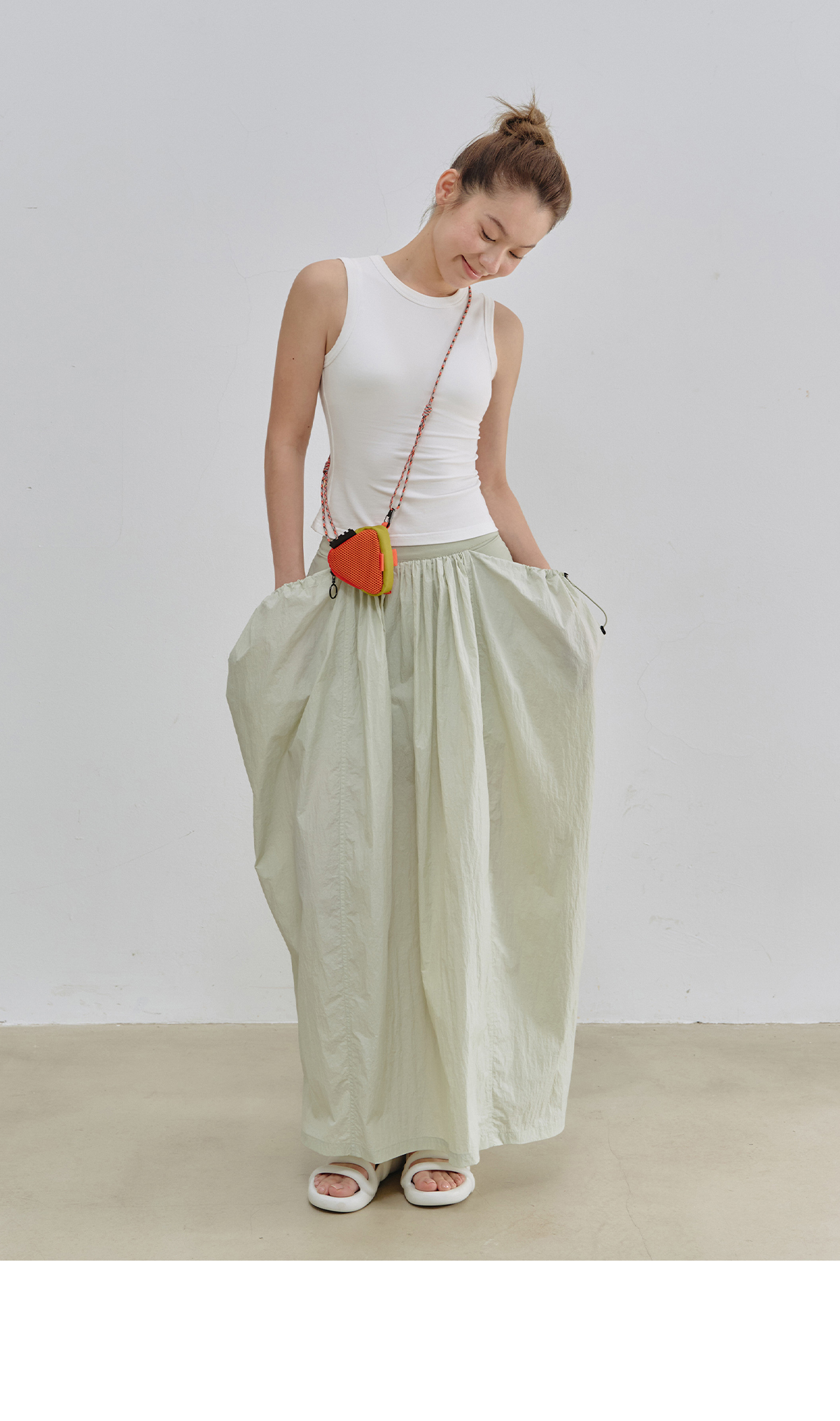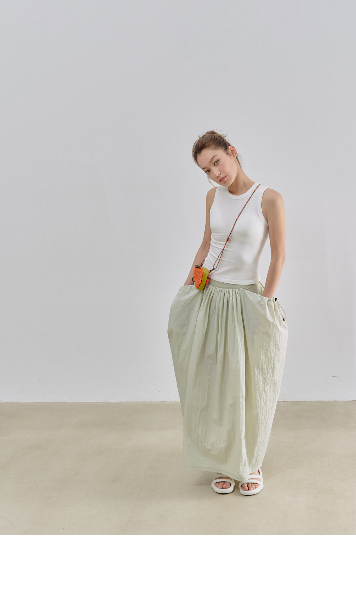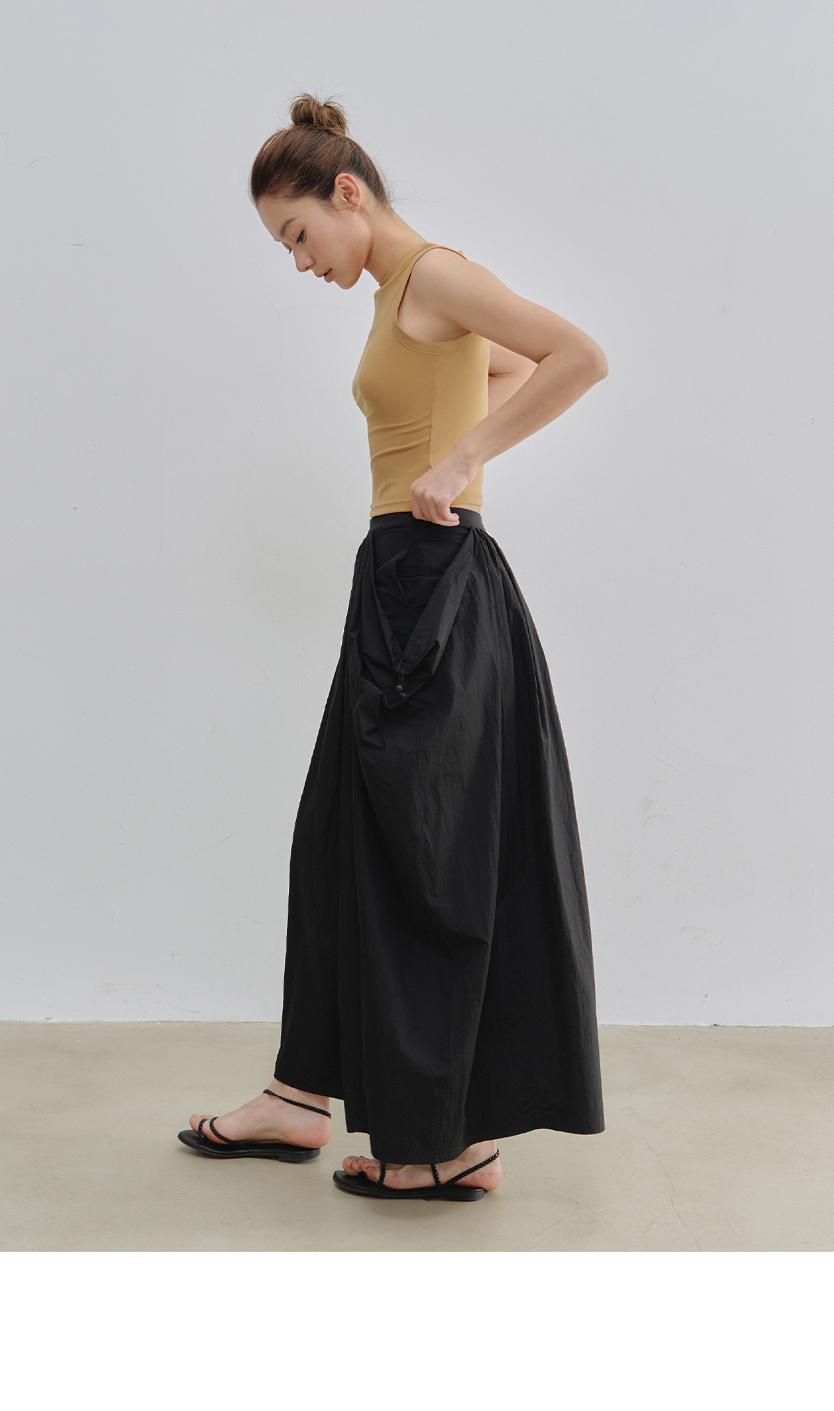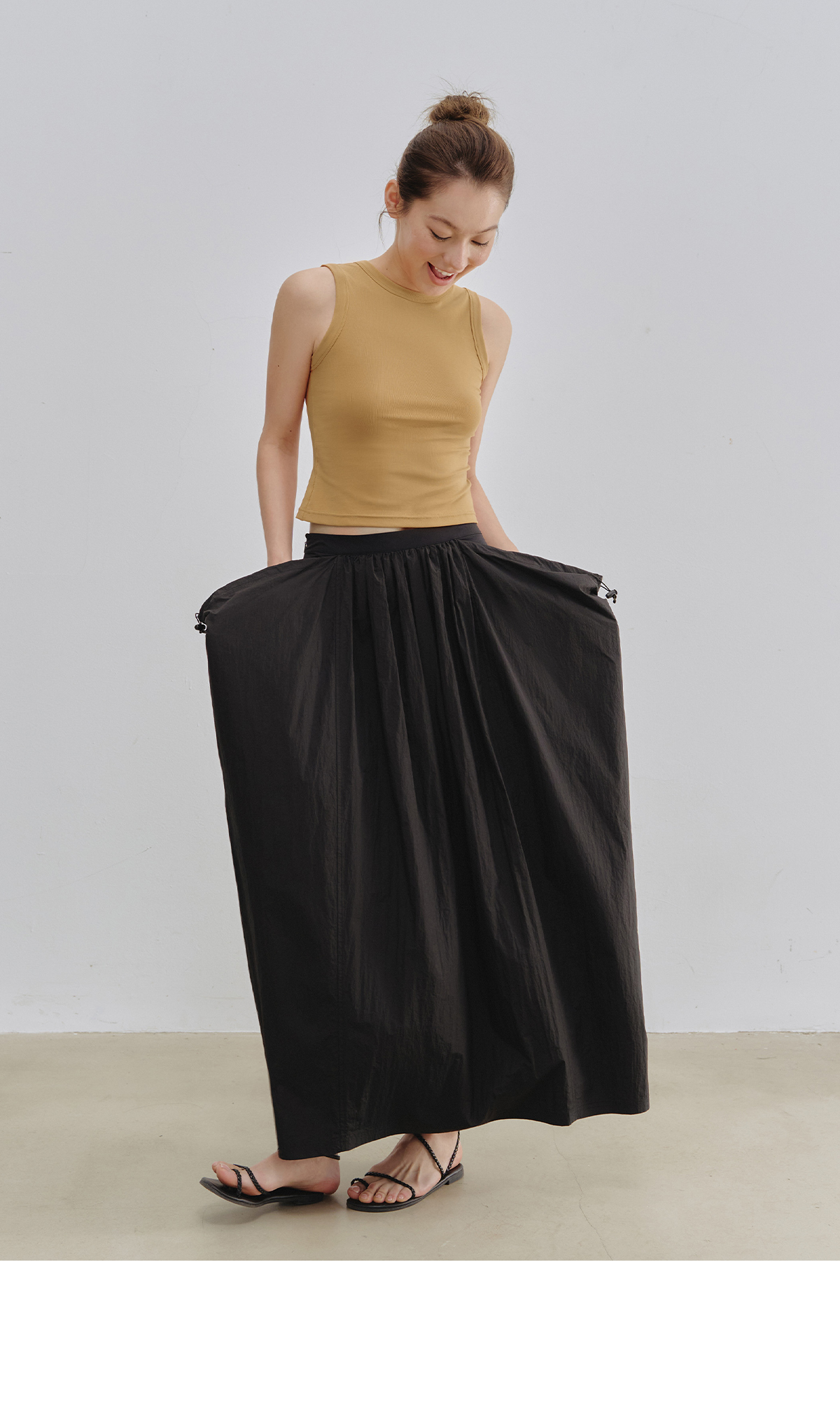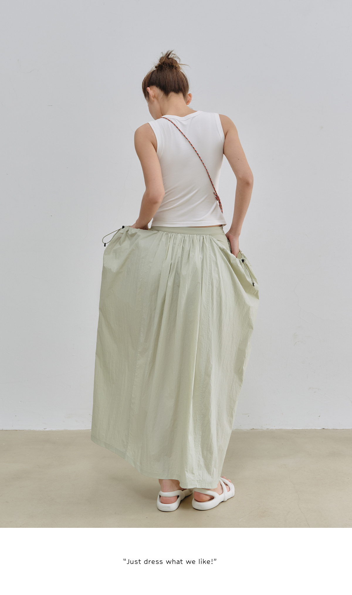 Evistub女装/E-5XDK484/复古褶皱抽绳休闲长裙女