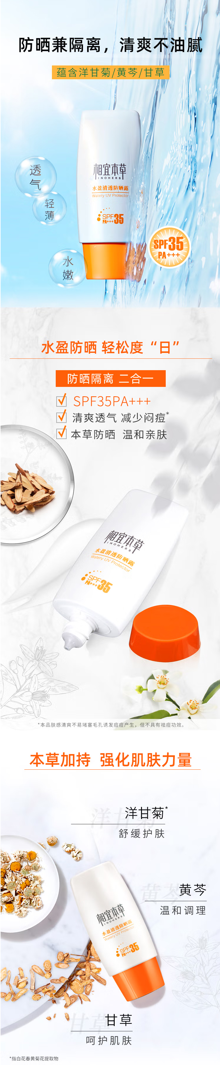相宜本草水盈清透、倍护防晒露体验装50g- 下单送小样一个