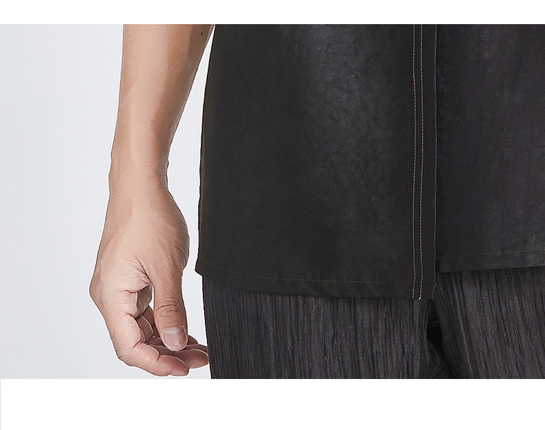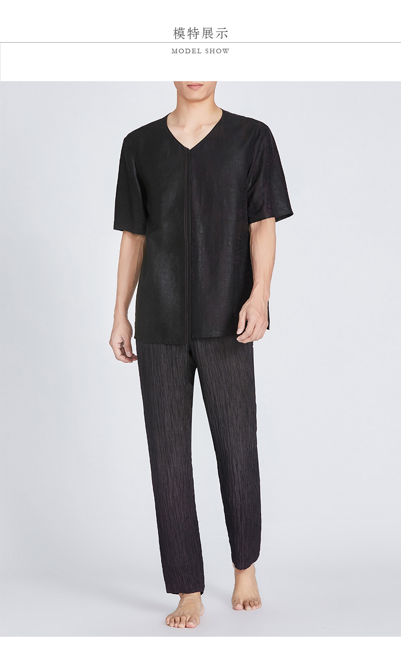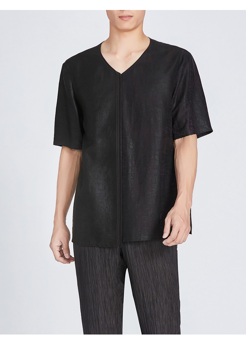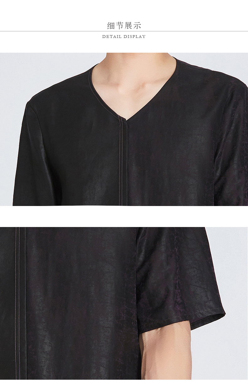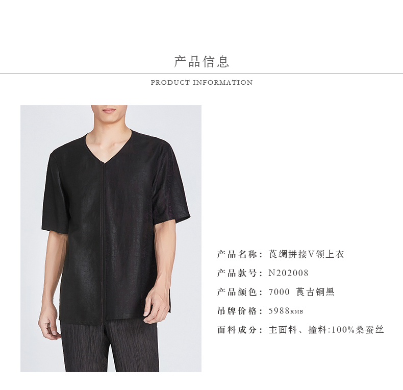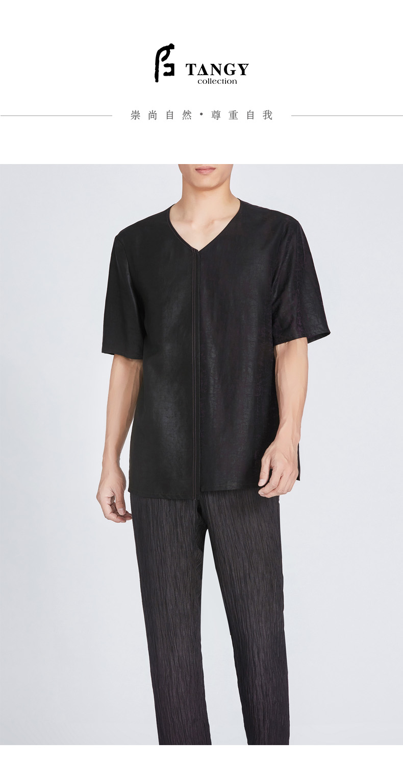 TANGY Collection/天意精品春夏新品原创设计莨绸拼接V领短袖T恤