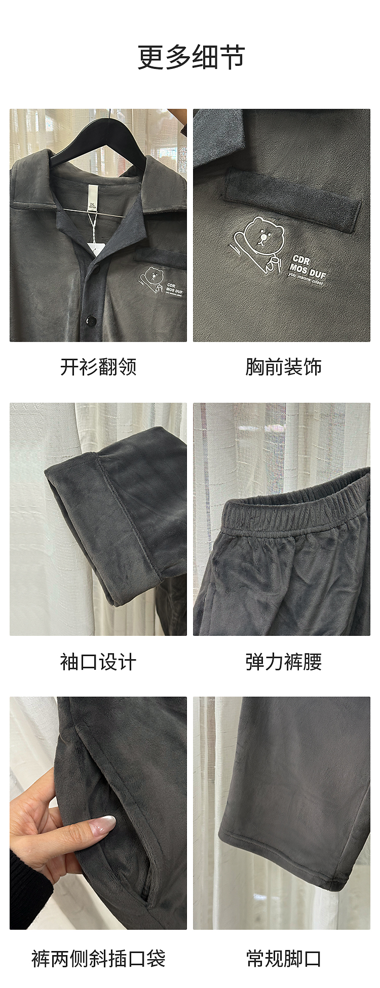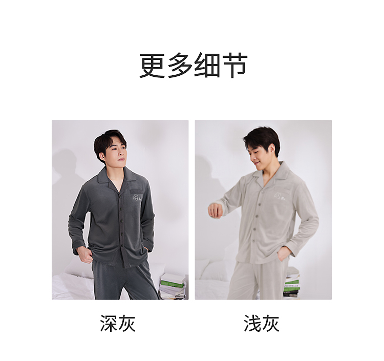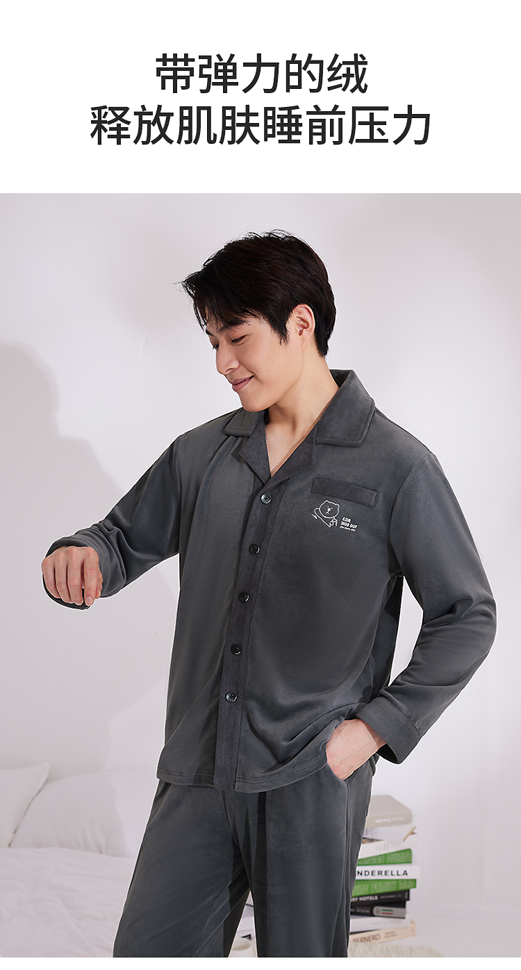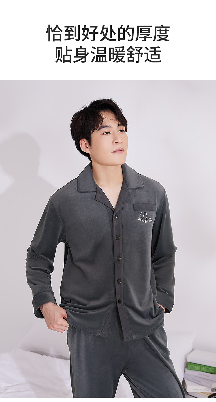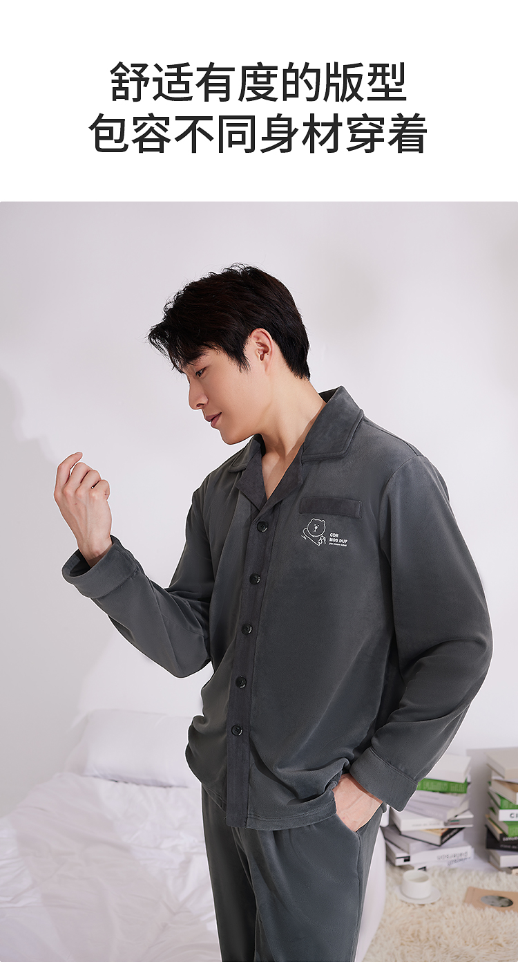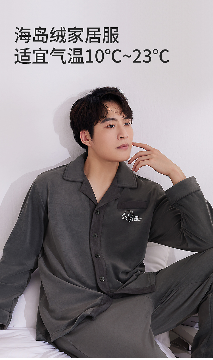 皇家丽美男士海岛绒睡衣套装 双面海岛绒柔软亲肤 带弹力绒肌肤无压力家居服JJT25621