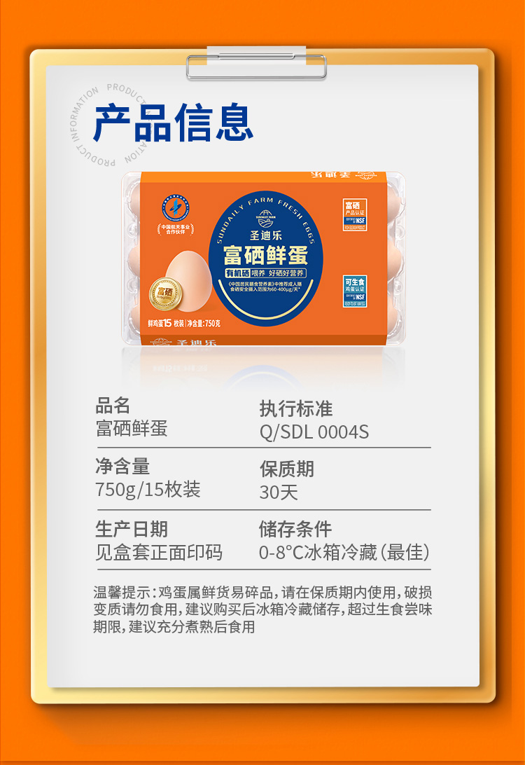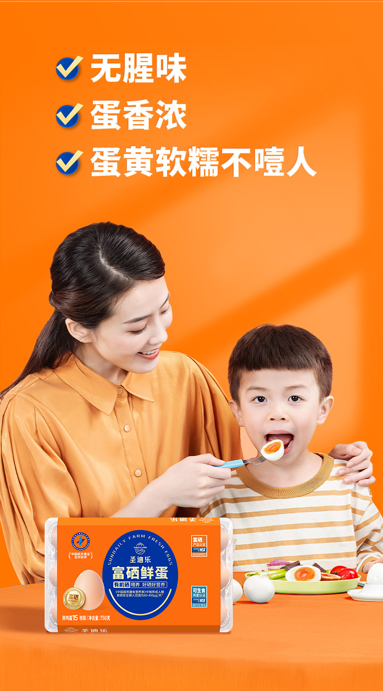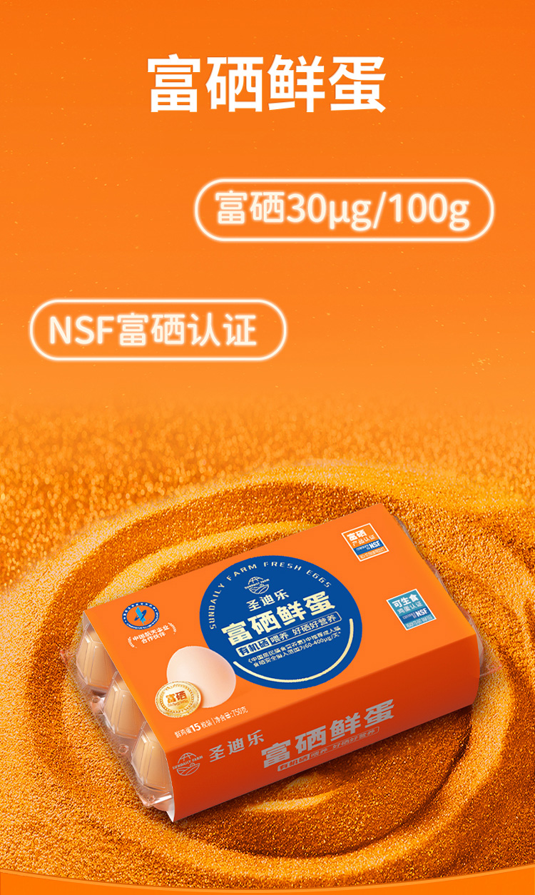 【8折】圣迪乐富硒鲜鸡蛋*2盒(750g/盒 15枚 可生食标准)另赠谷物蛋(4枚/盒)生产日期:3月29日 保质期:冷藏30天补单链接