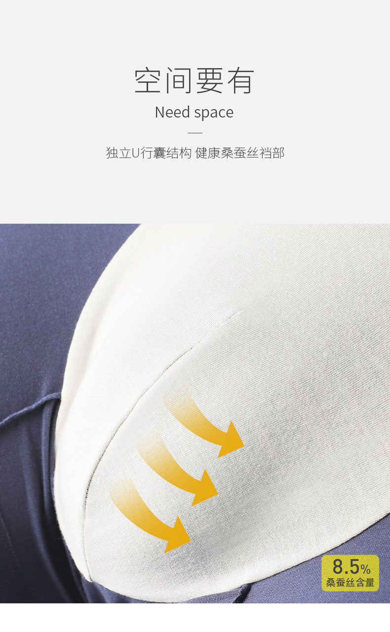 【樱姿娜男士品质内裤】60支兰精莫代尔+6A蚕丝底档超柔软透气铂金蚕丝国民老公裤1003【BPQ】
