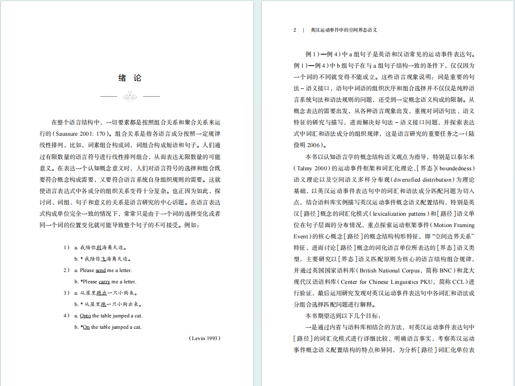 本书关注与英汉运动事件语言表达相关的一系列英汉语法现象,采用溯因推理、内省与语料库验证相结合的方法,以语言现象和事实为切入点,从认知语义学角度出发,基于英国国家语料库、北京大学现代汉语语料库,以及自建英汉双语平行语料库的观察和数据分析,在运动概念事件框架内探讨语义配置的语言事实,分析运动事件核心概念“路径”的认知图式及其“运动空间边界特征”概念结构构形特征,探讨“空间界态”概念结构构形语义在句子建构中所起的句法–语义接口作用,从而解决语言对思维概念的词汇化映射方式问题及语言系统内部的组织规律问题。在实践层面,本书为机器翻译中自然语言的处理以及外语教学和学习中的相关问题提供理论依据。