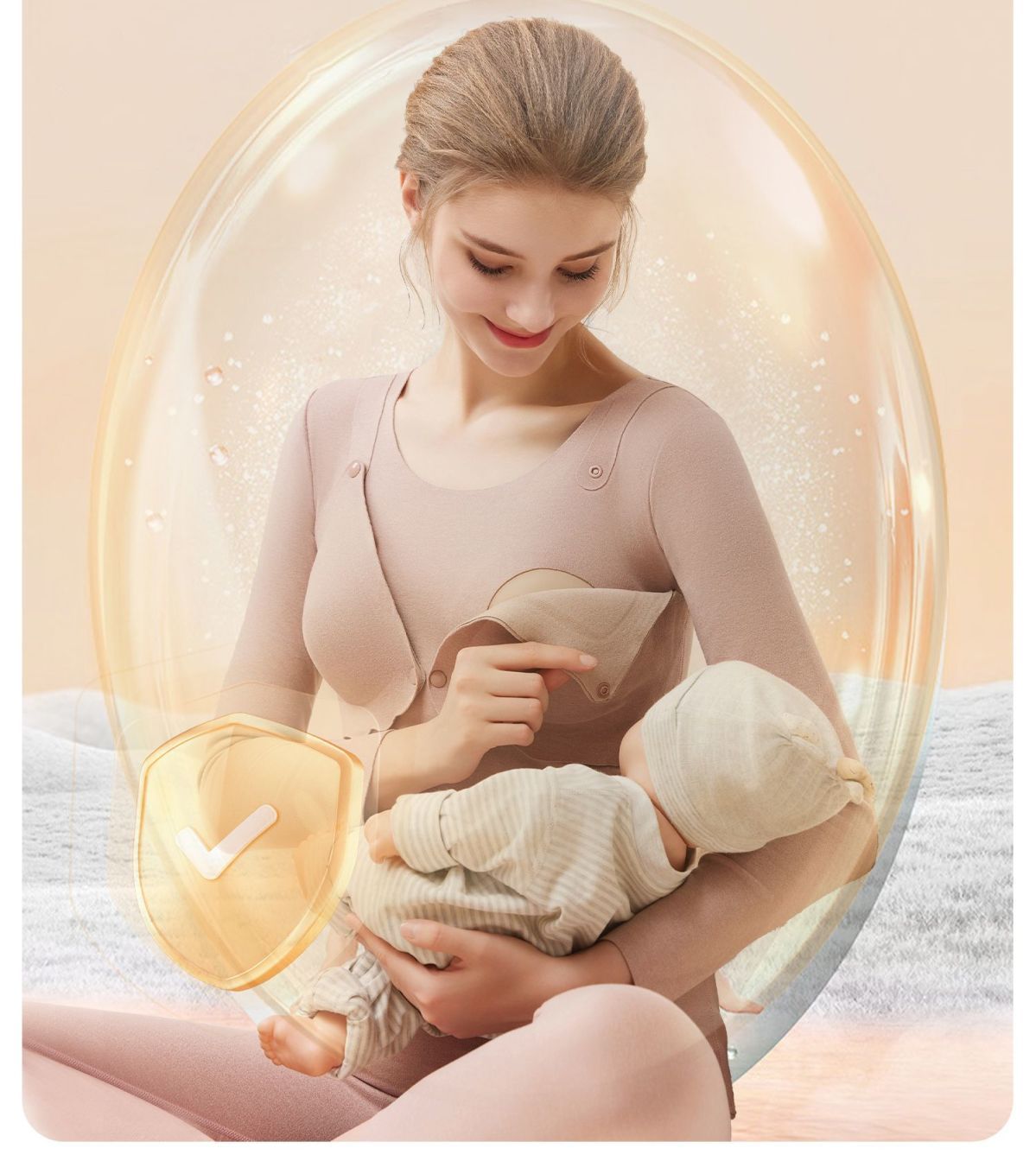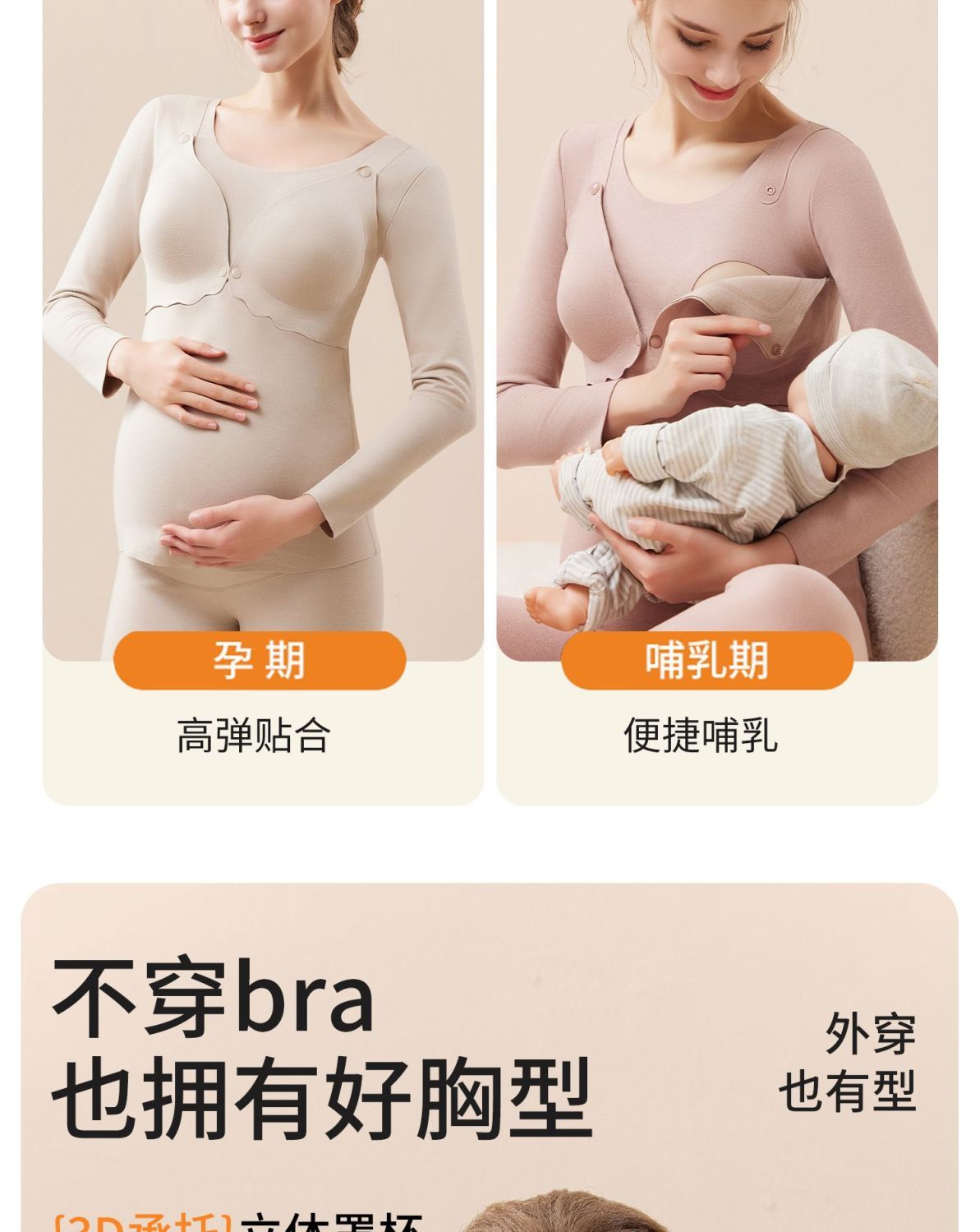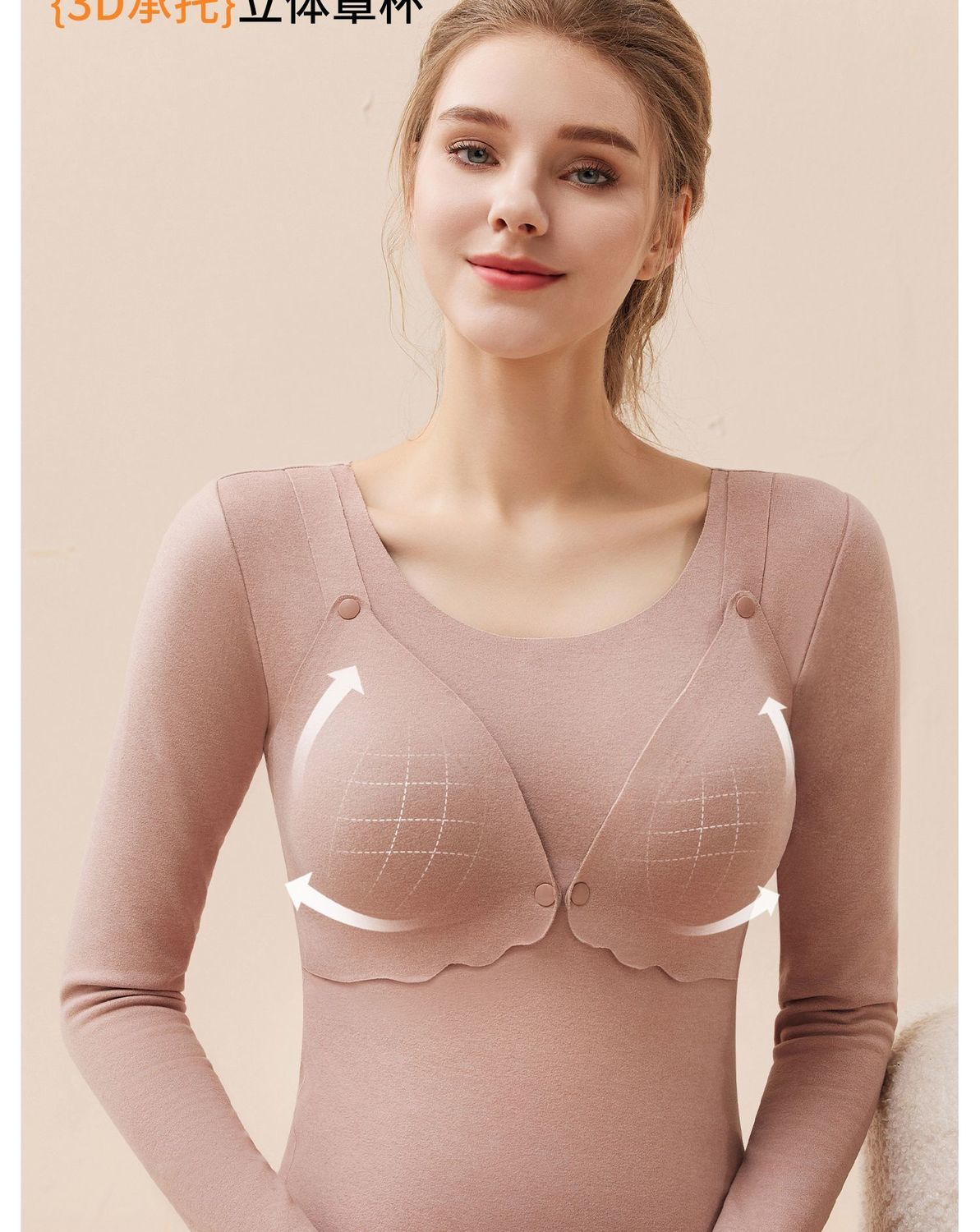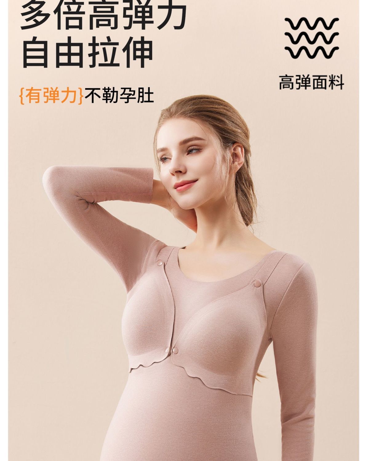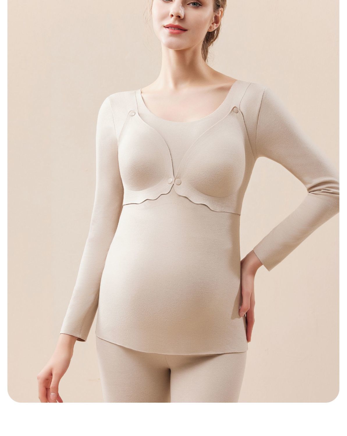 芬也同款哺乳秋衣春秋保暖内衣上衣德绒带胸垫打底孕妇产后喂奶月子服