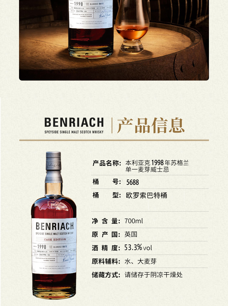 本利亚克1998-25年Oloroso雪莉单桶单一麦芽苏格兰威士忌桶号5688