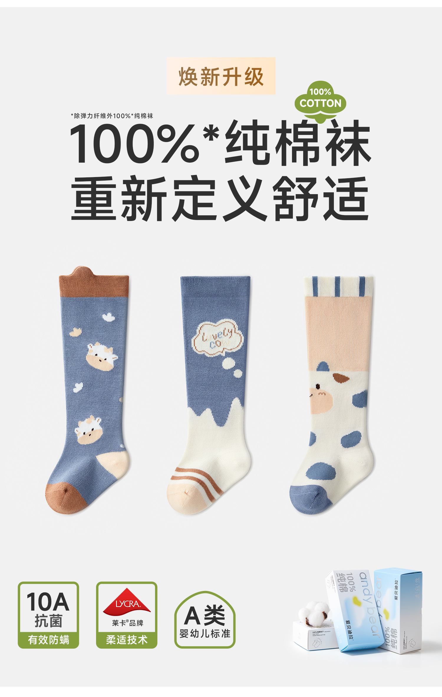 儿童袜子纯棉a类春秋季男女宝宝长筒袜0到3岁婴幼儿过膝袜不勒腿