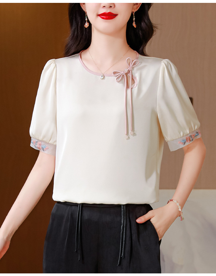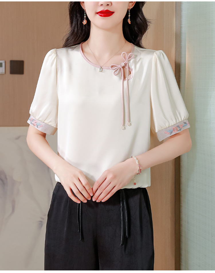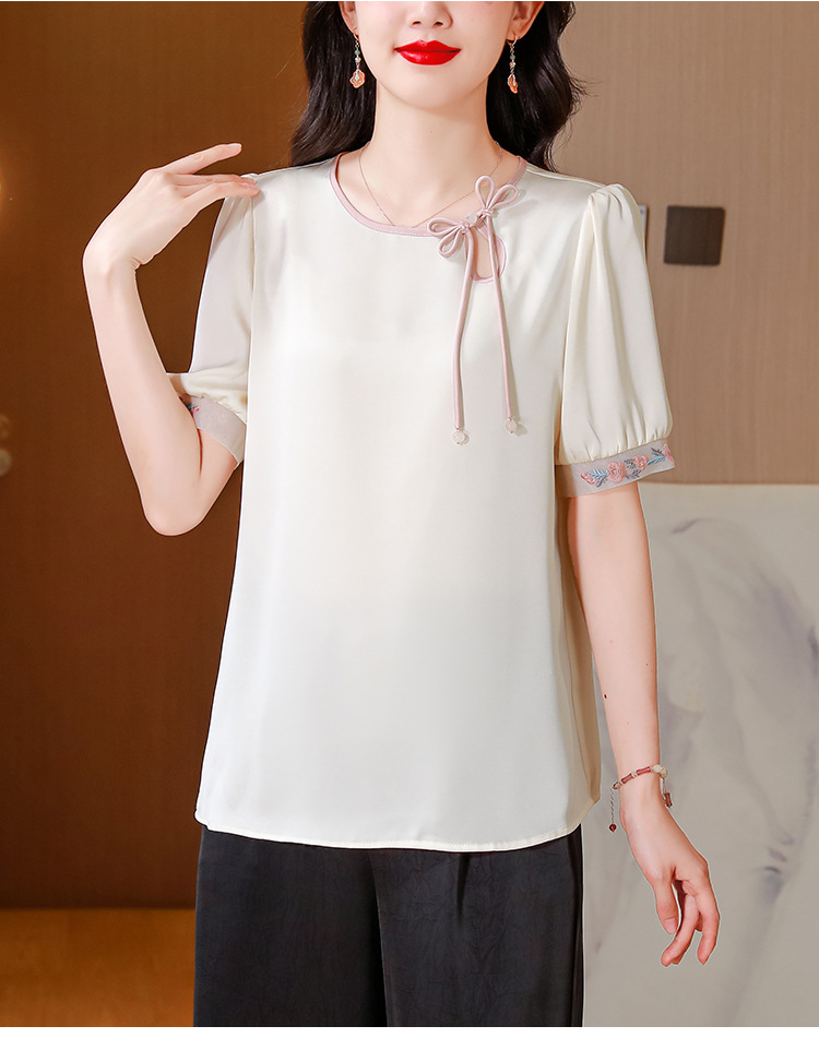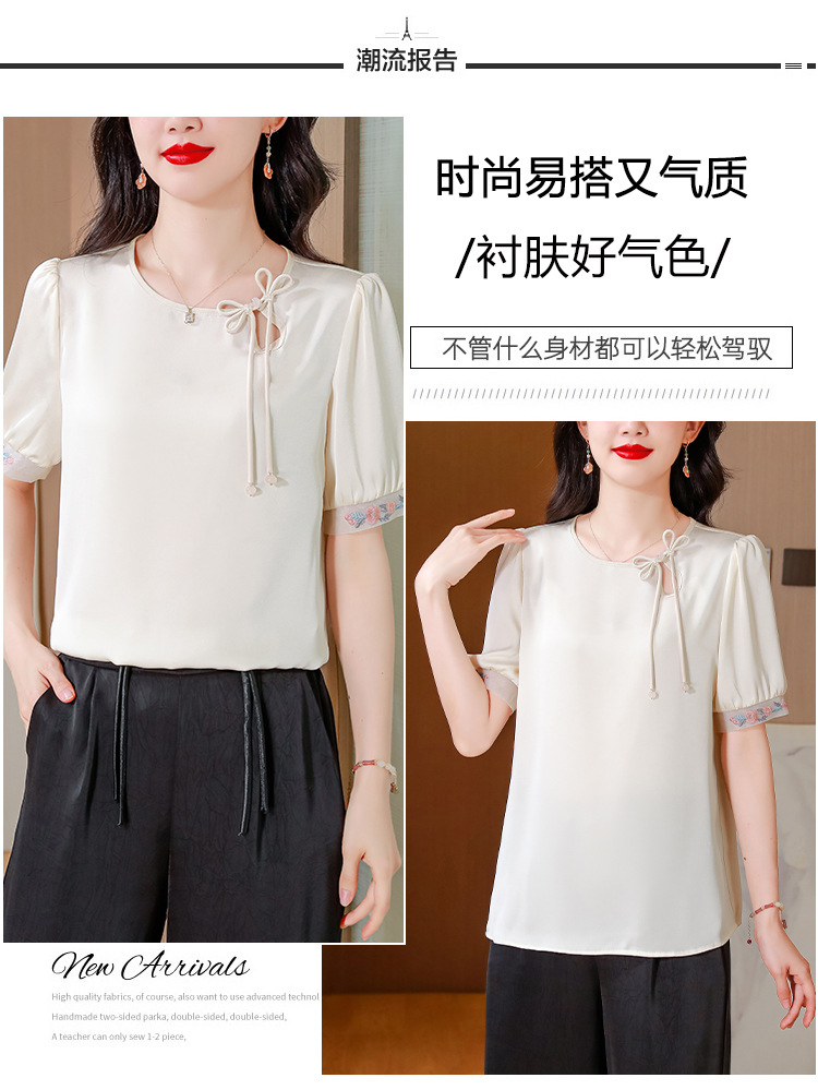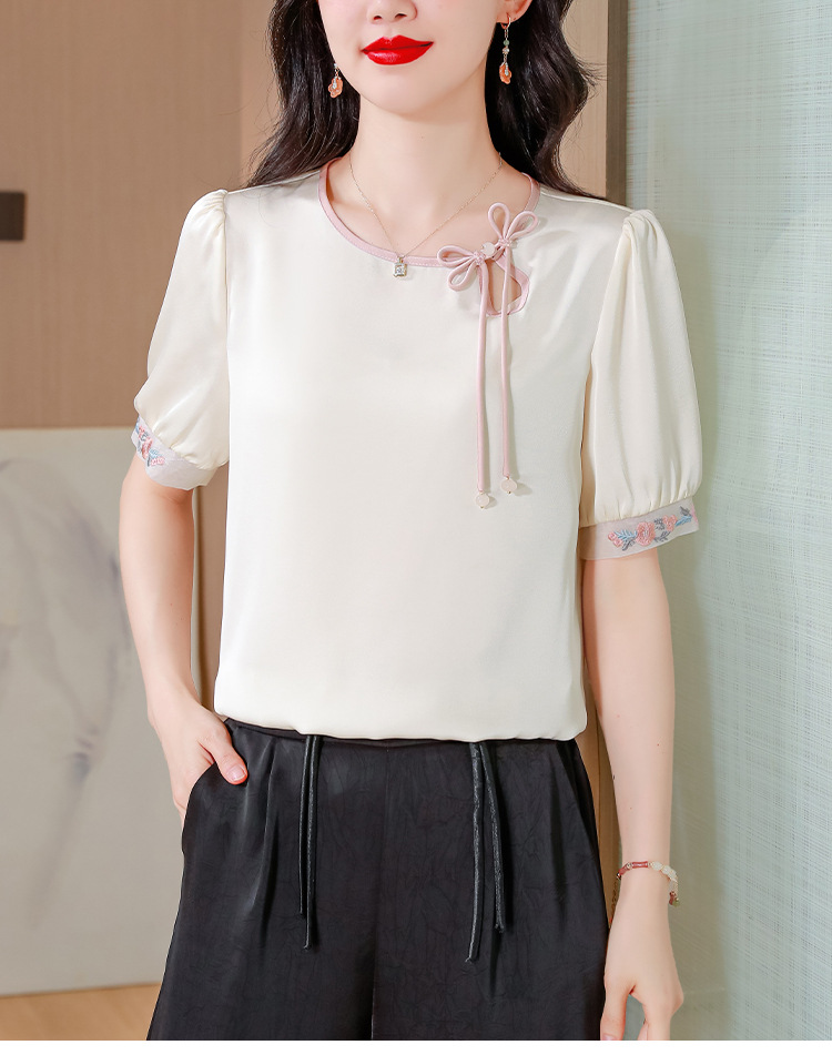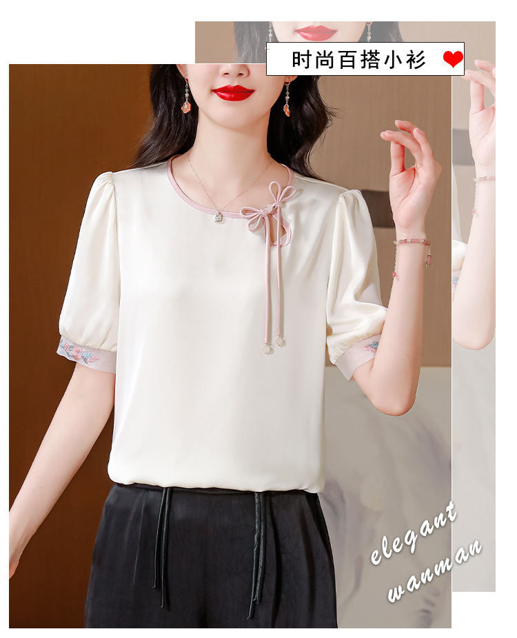 新中式设计感百搭领口撞色短袖衬衫K-A83N9031