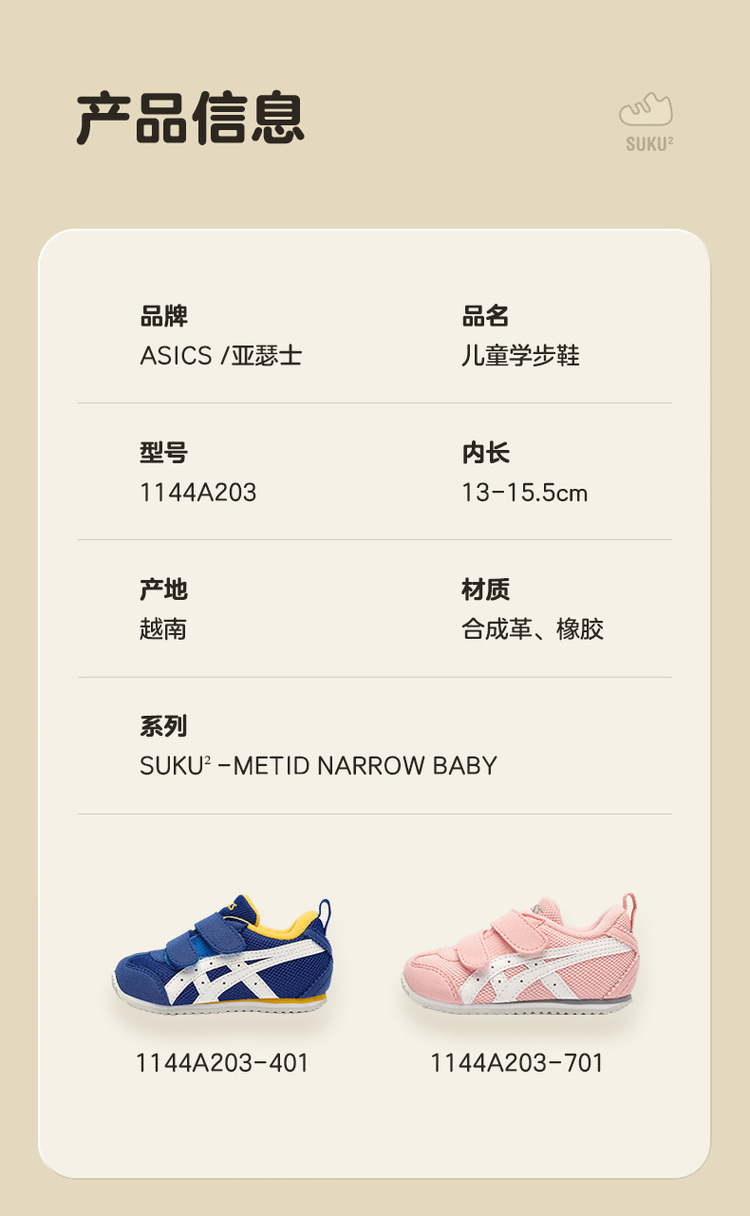 温馨提示:亚瑟士童鞋偏小一码,请对照尺码表鞋子内长拍相应码数