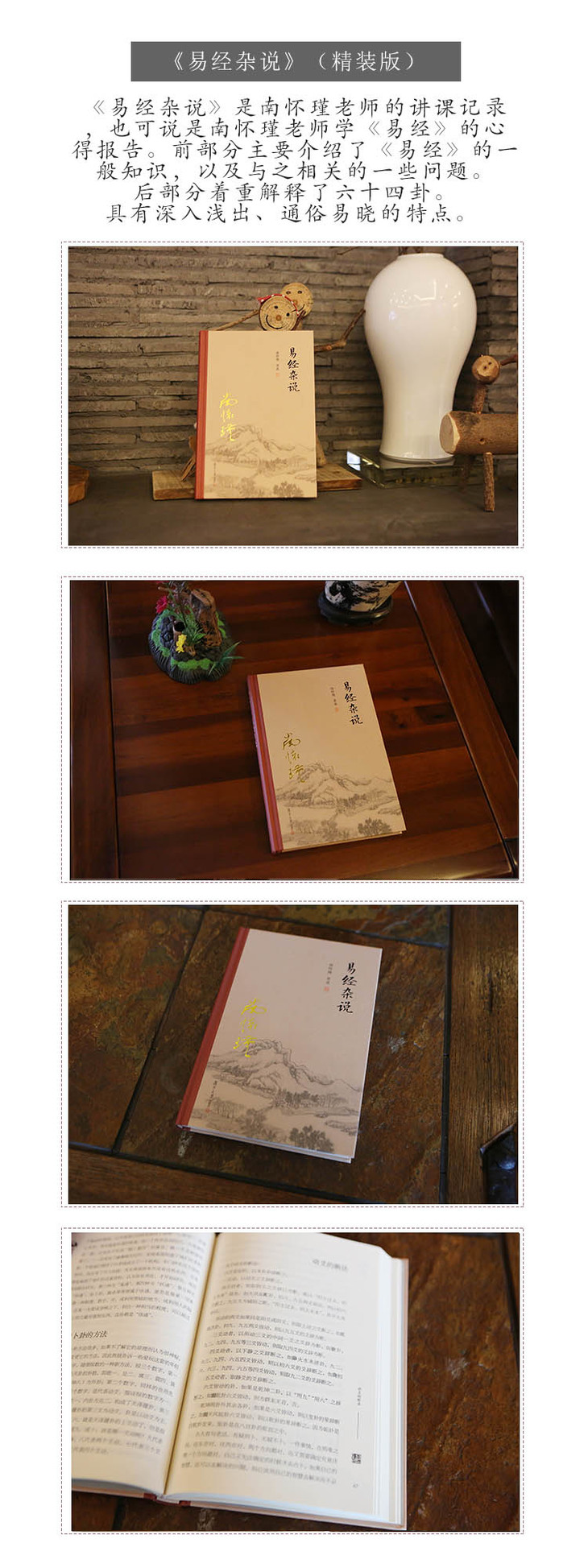 《易经杂说》是南怀瑾老师的讲课记录,也可说是南怀瑾老师学《易经》的心得报告。前部分主要介绍了《易经》的一般知识,以及与之相关的一些问题。后部分着重解释了六十四卦(始“乾卦”,终“未济卦”),而以对“乾卦”的解说为*详。内容包括: 卦名、卦辞、爻辞,以及解释它们的《彖辞》《象辞》《文言》等。具有深入浅出、通俗易晓的特点。