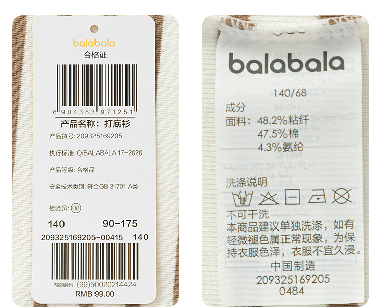 巴拉巴拉儿童长袖T恤秋新品男童打底衫女童内衣秋衣柔软抗菌舒适