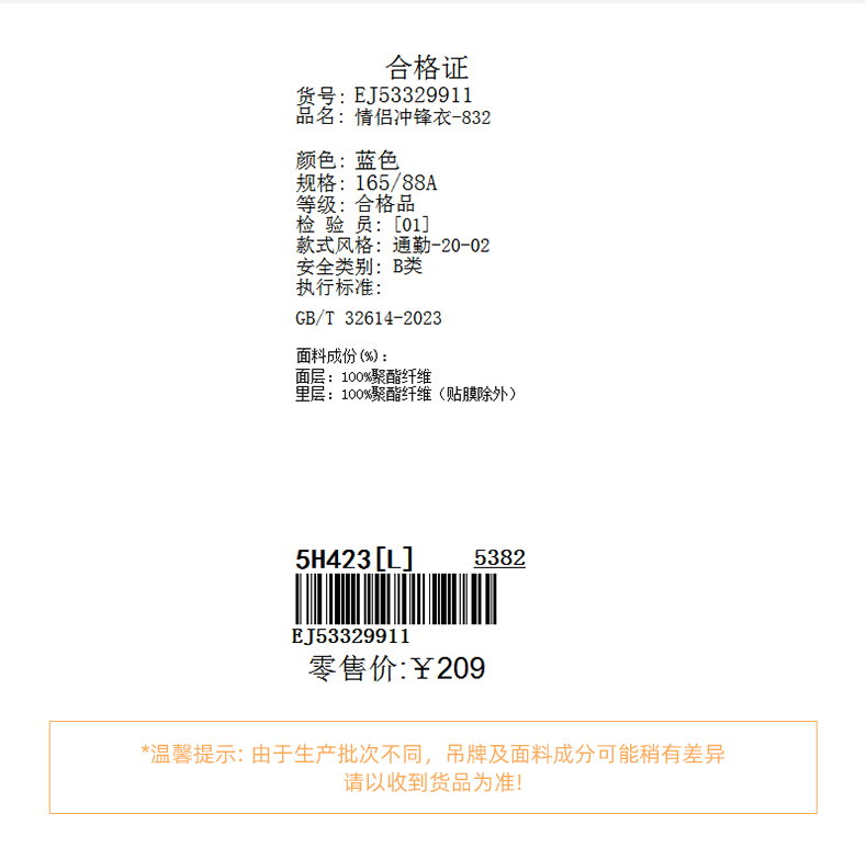 情侣装冲锋衣-832J5332991