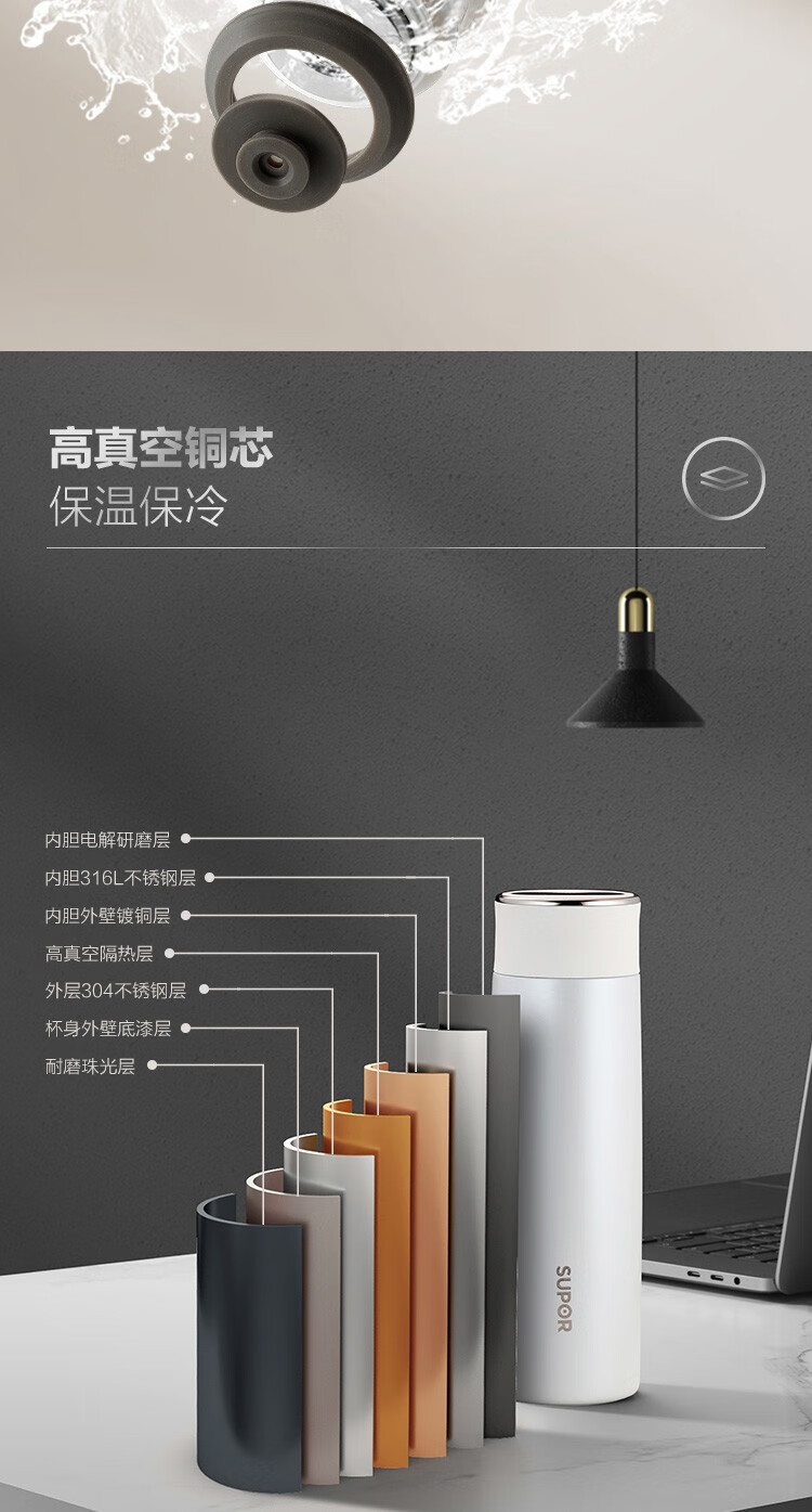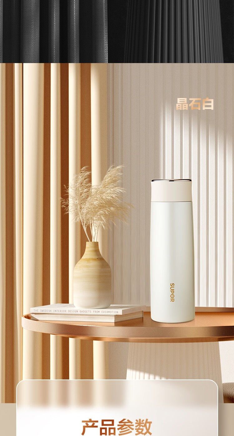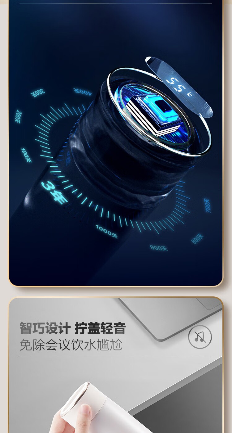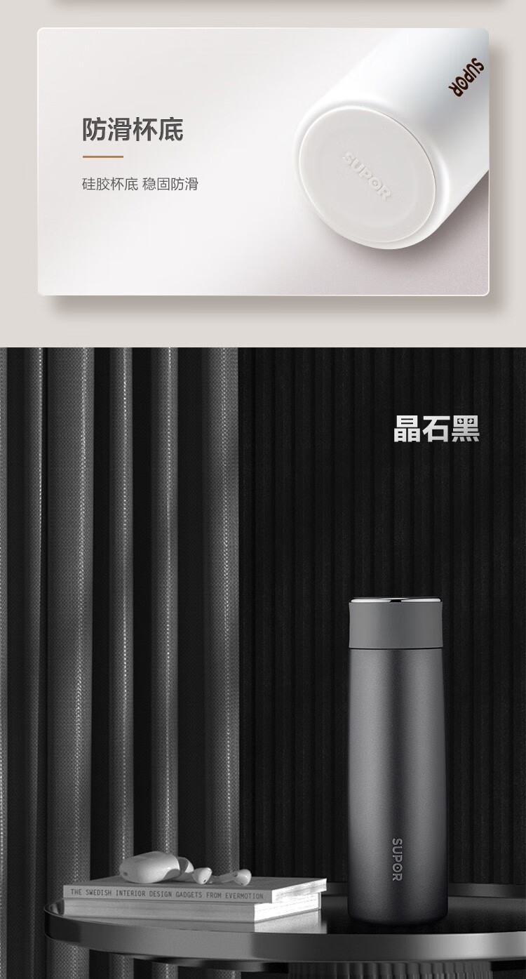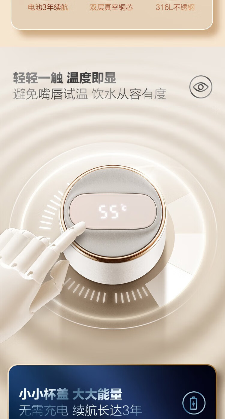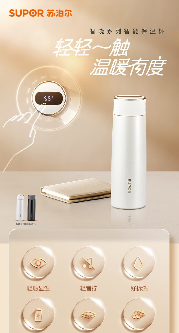 苏泊尔(SUPOR)智晓保温杯高真空铜芯保温保冷316L不锈钢LED屏显杯身钢琴烤漆工艺 KC43HW10晶石黑430ML