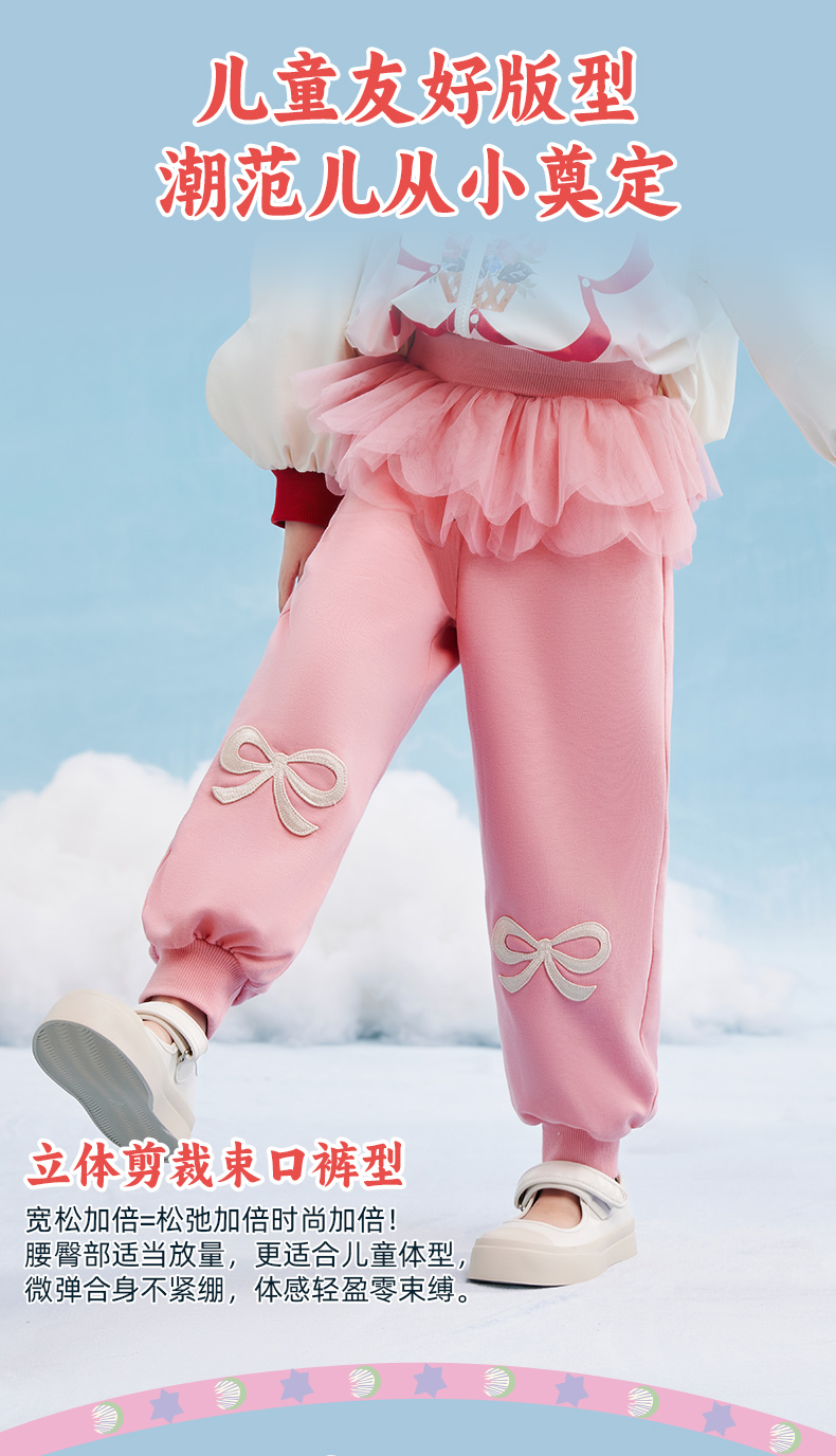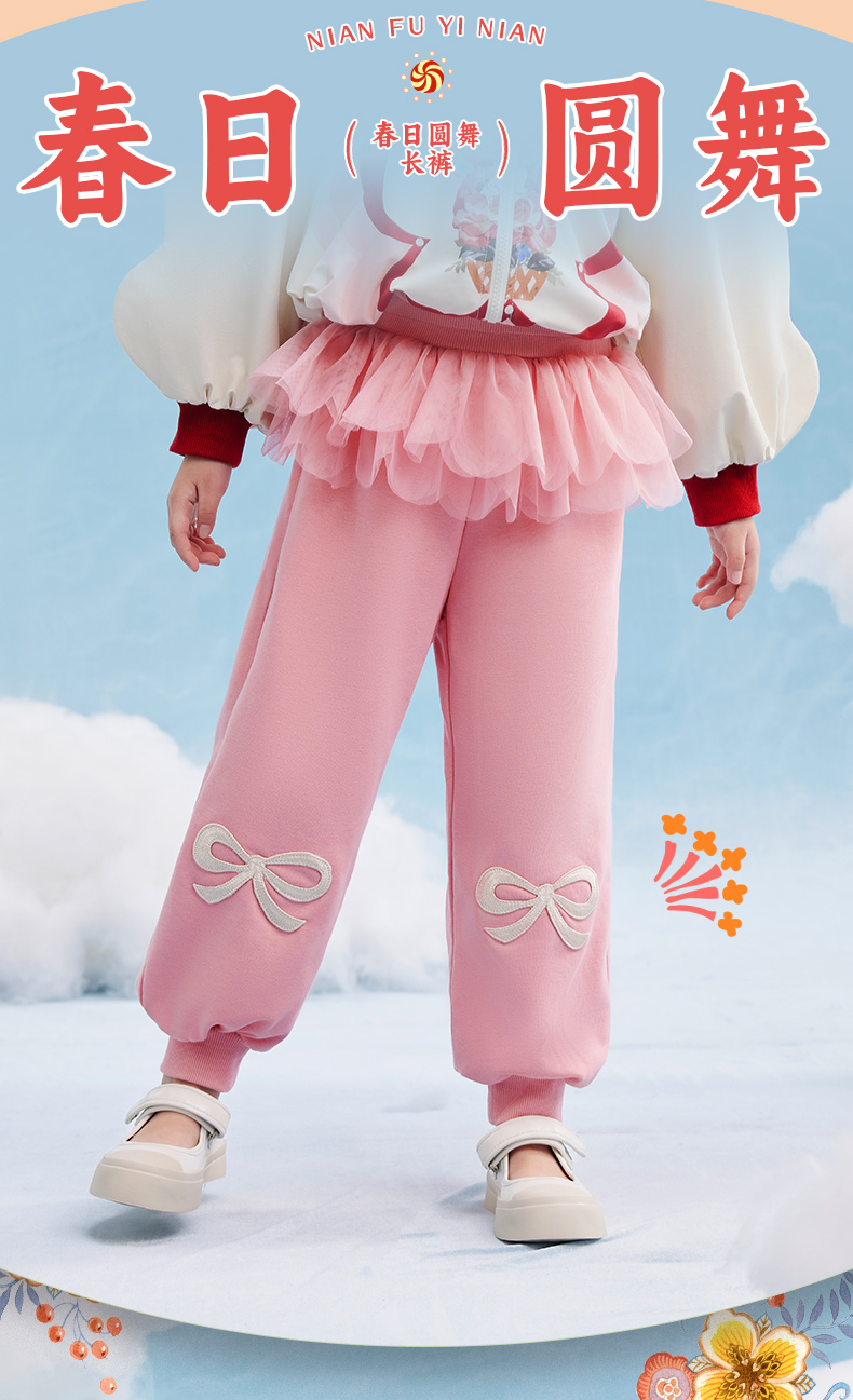 年衣童装女童裤子2025年春季新款女大童儿童运动裤休闲裤甜美卫裤春日圆舞长裤