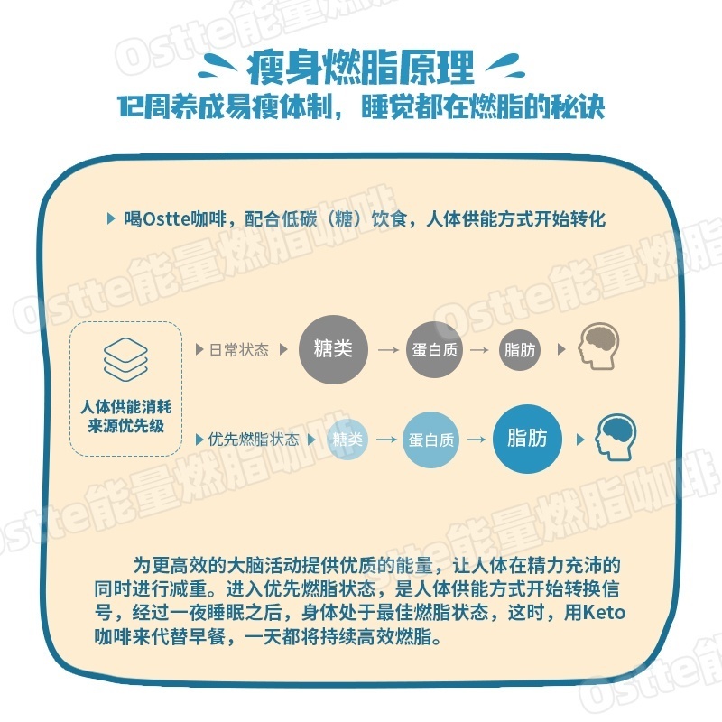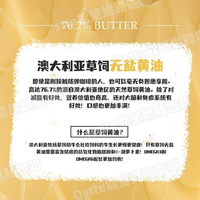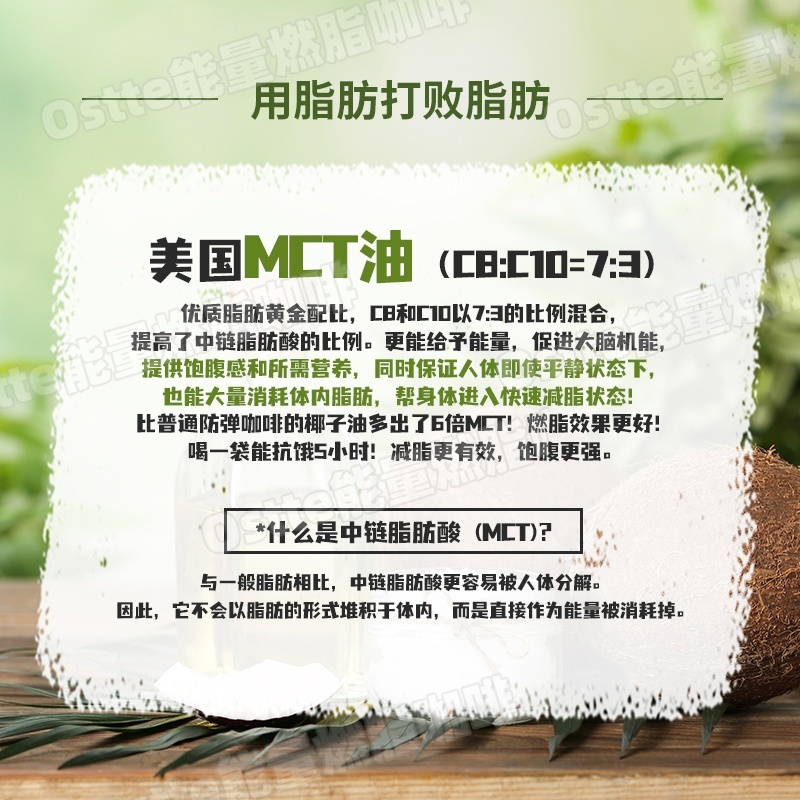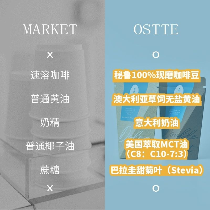 同时补充体内优质脂肪(Ostte咖啡含有的美国MCT油+澳大利亚草饲黄油)
