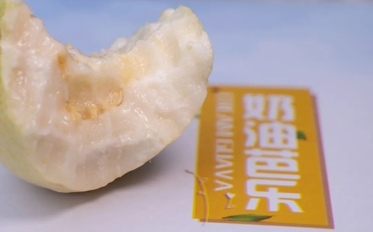 不同于传统的硬番石榴,这款番石榴果实为奶油色,表皮光滑软柔,口感软糯丝滑,果香浓郁,籽粒少,口感凝脂软糯,像在吃水果蛋糕上的奶油被业内称为“奶油番石榴”~