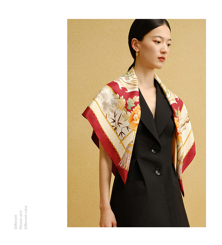 万事利“霁月香茗”88厘米双面印花真丝大方巾