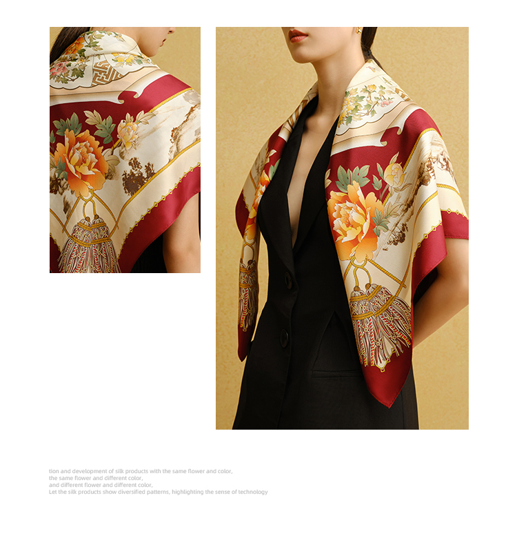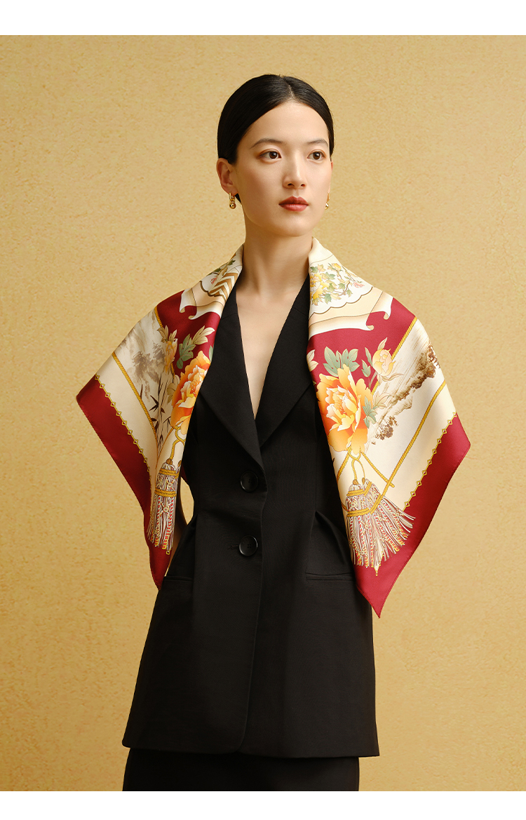 万事利“欢乐颂”51厘米双面印花真丝小方巾
