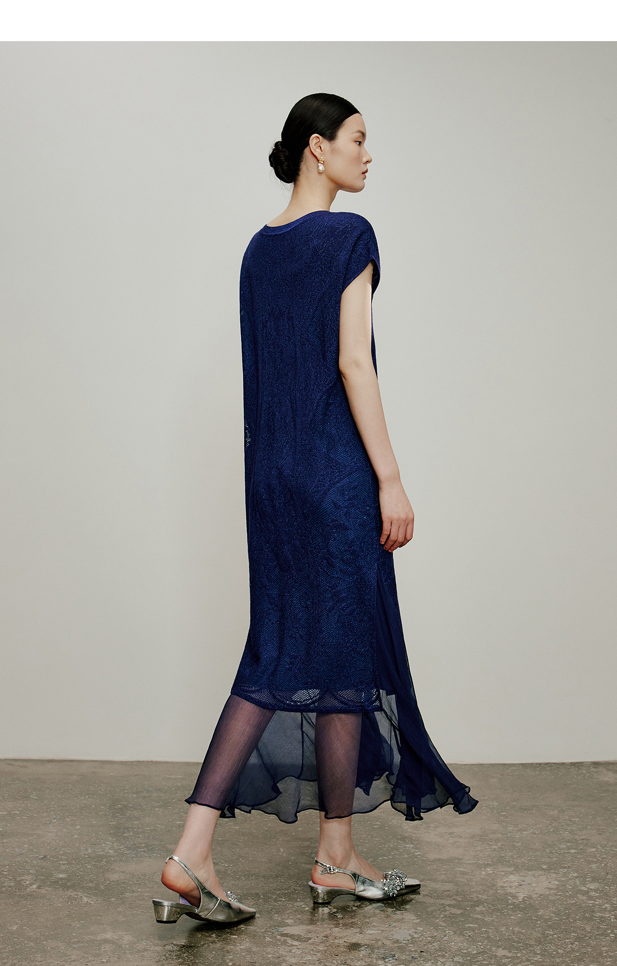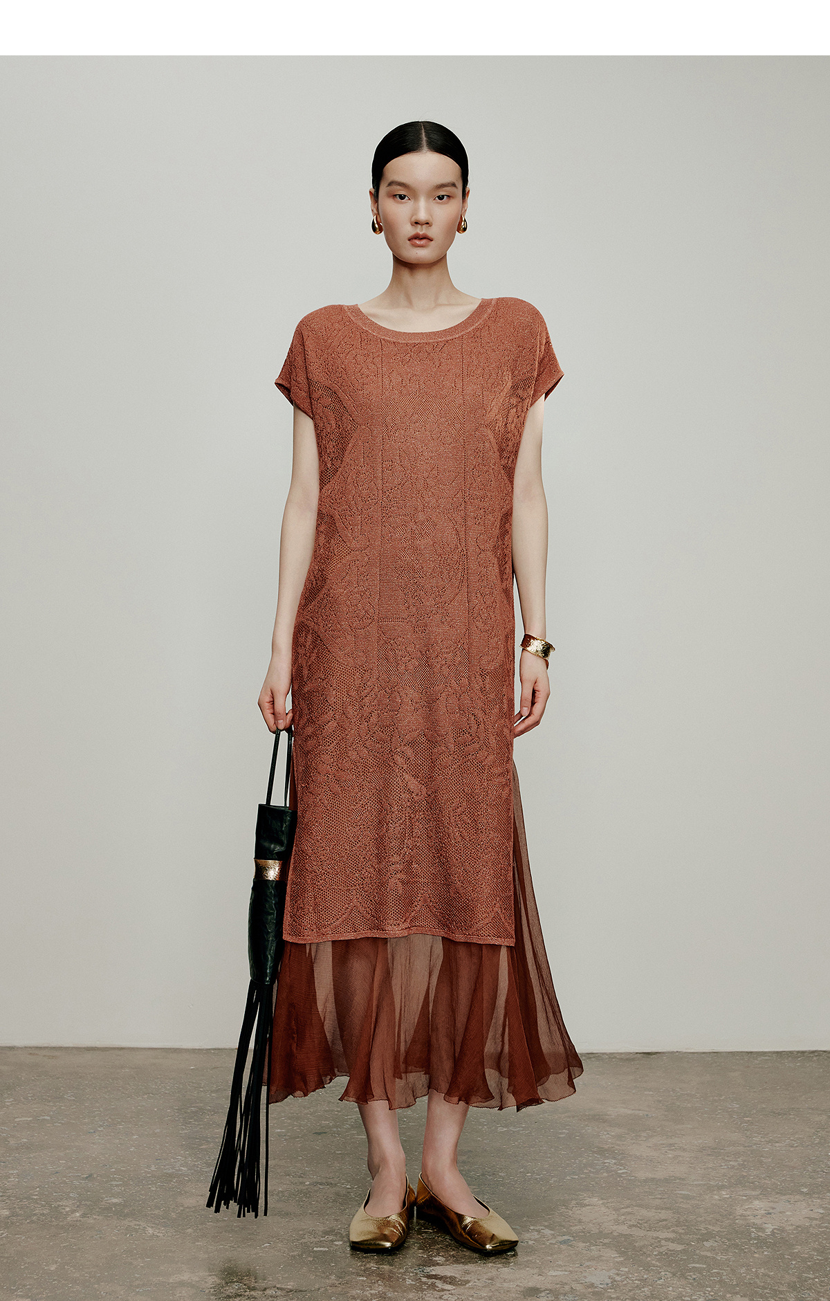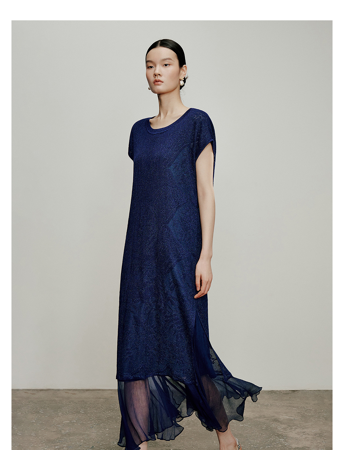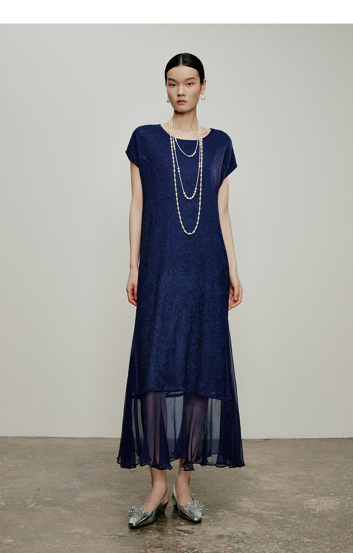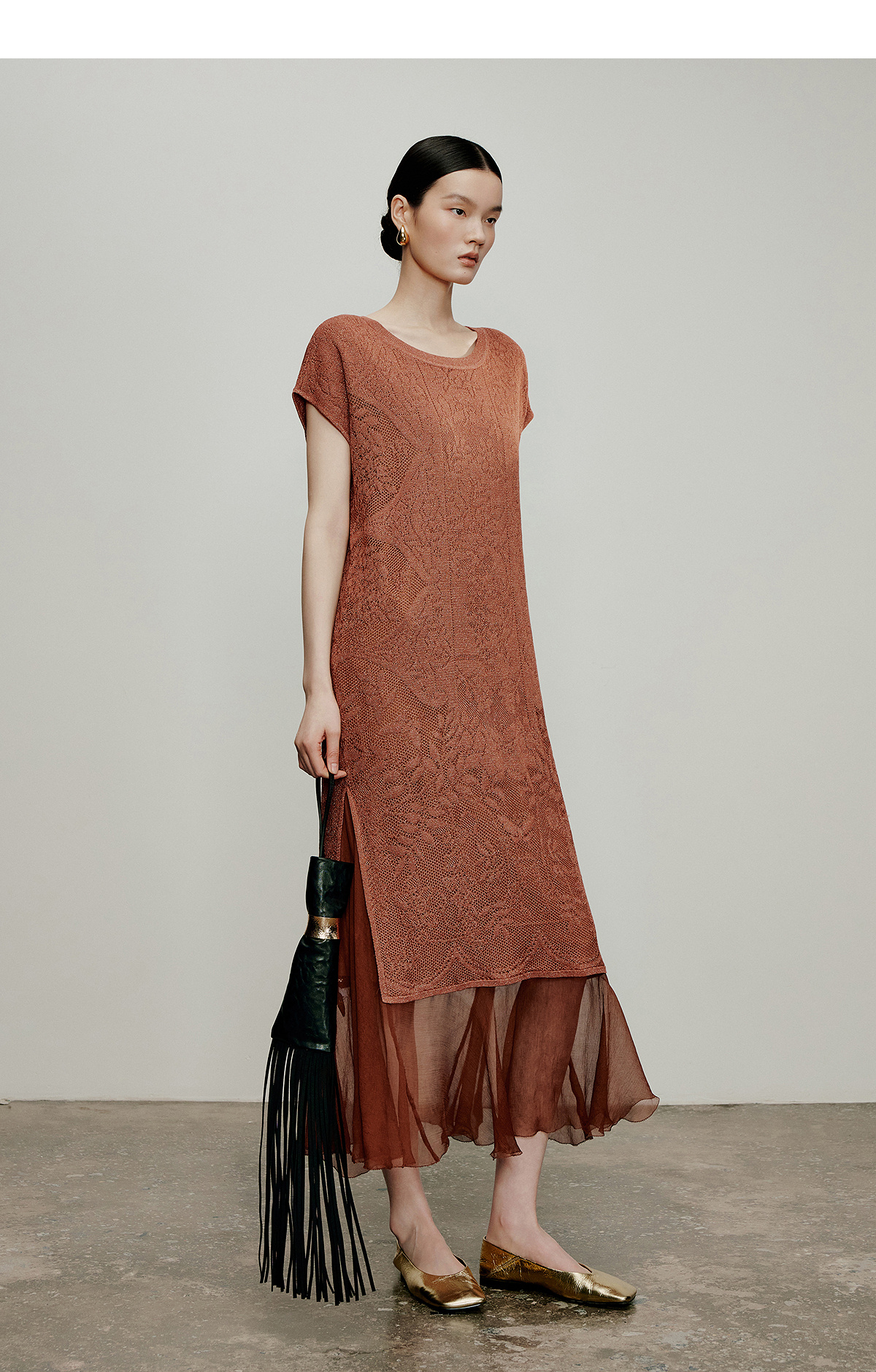 【林栖设计小店】 一帘幽梦|多色拼桑蚕丝飞片2026夏新款毛织连衣裙1962080