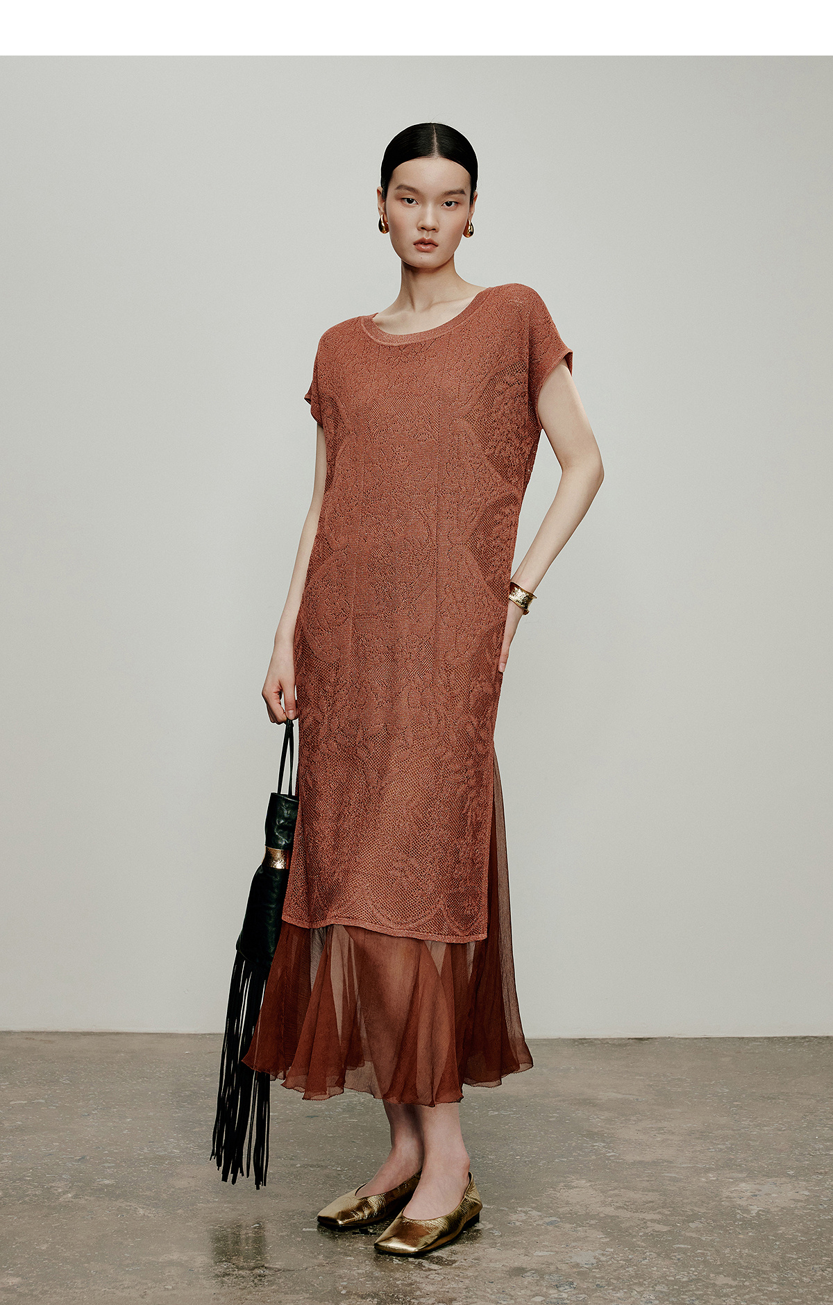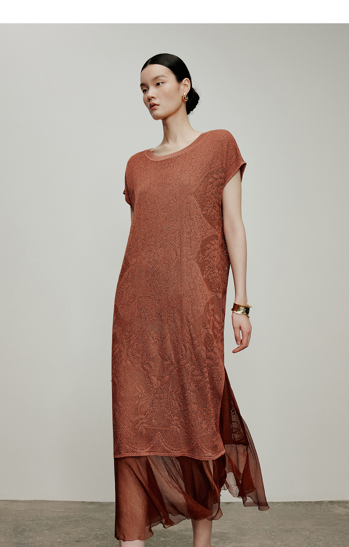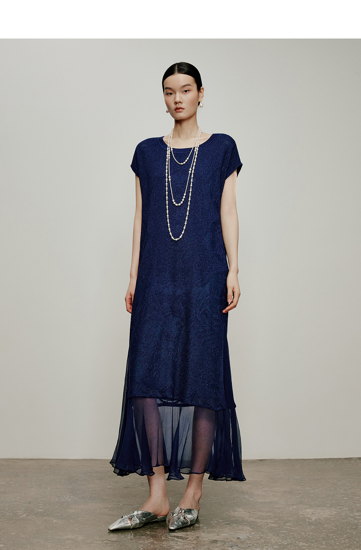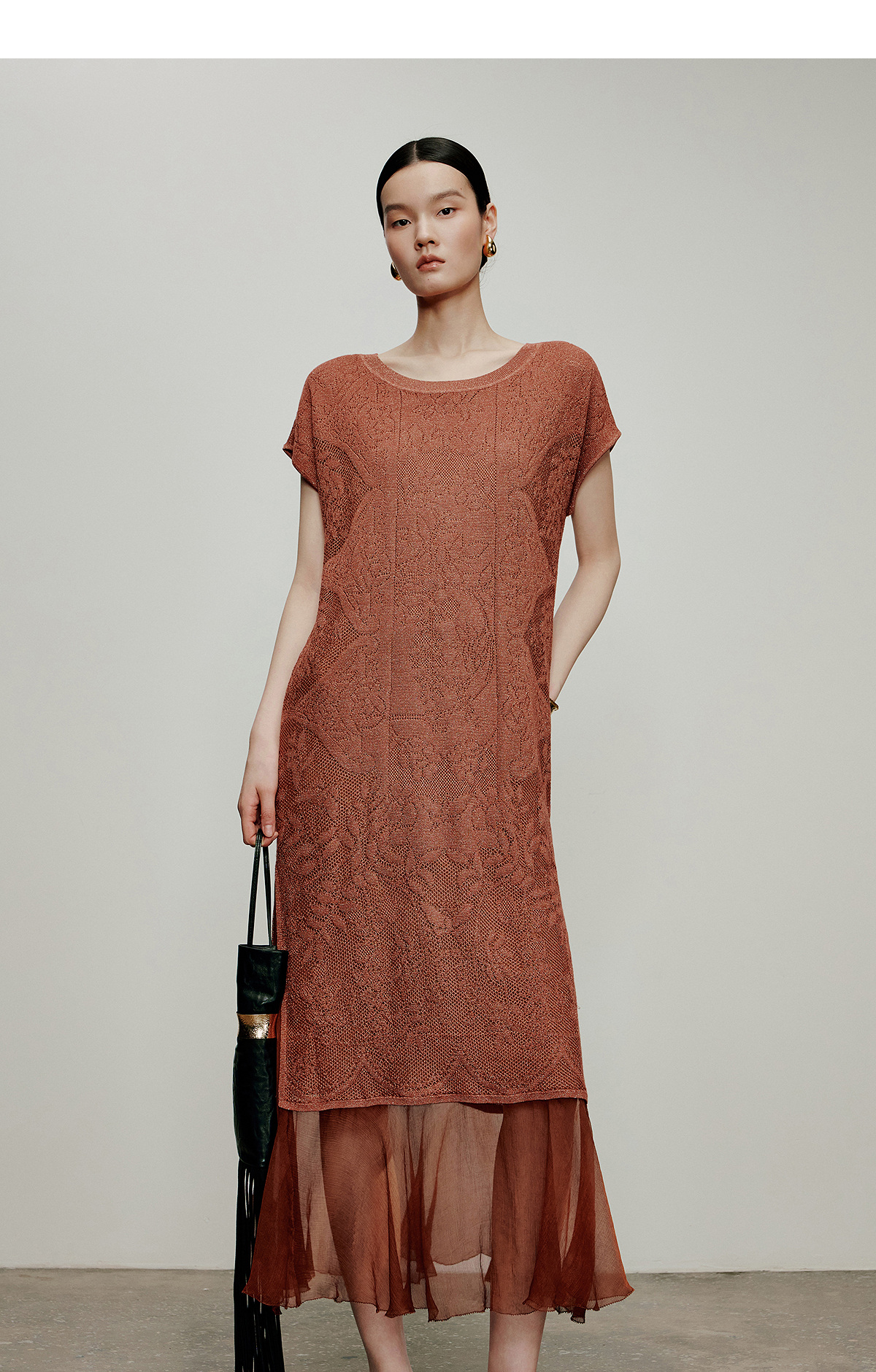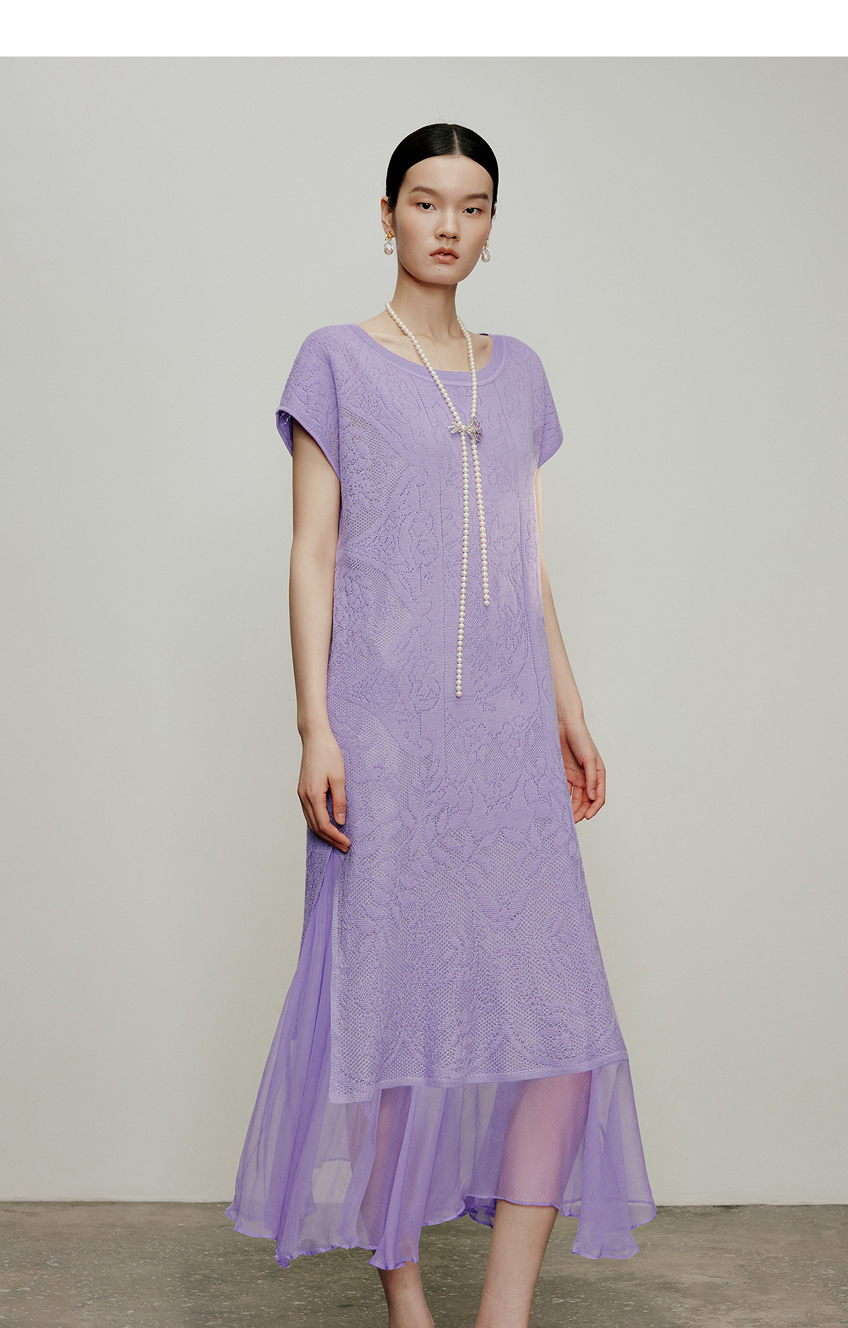 【林栖设计小店】 一帘幽梦|多色拼桑蚕丝飞片2026夏新款毛织连衣裙1962080