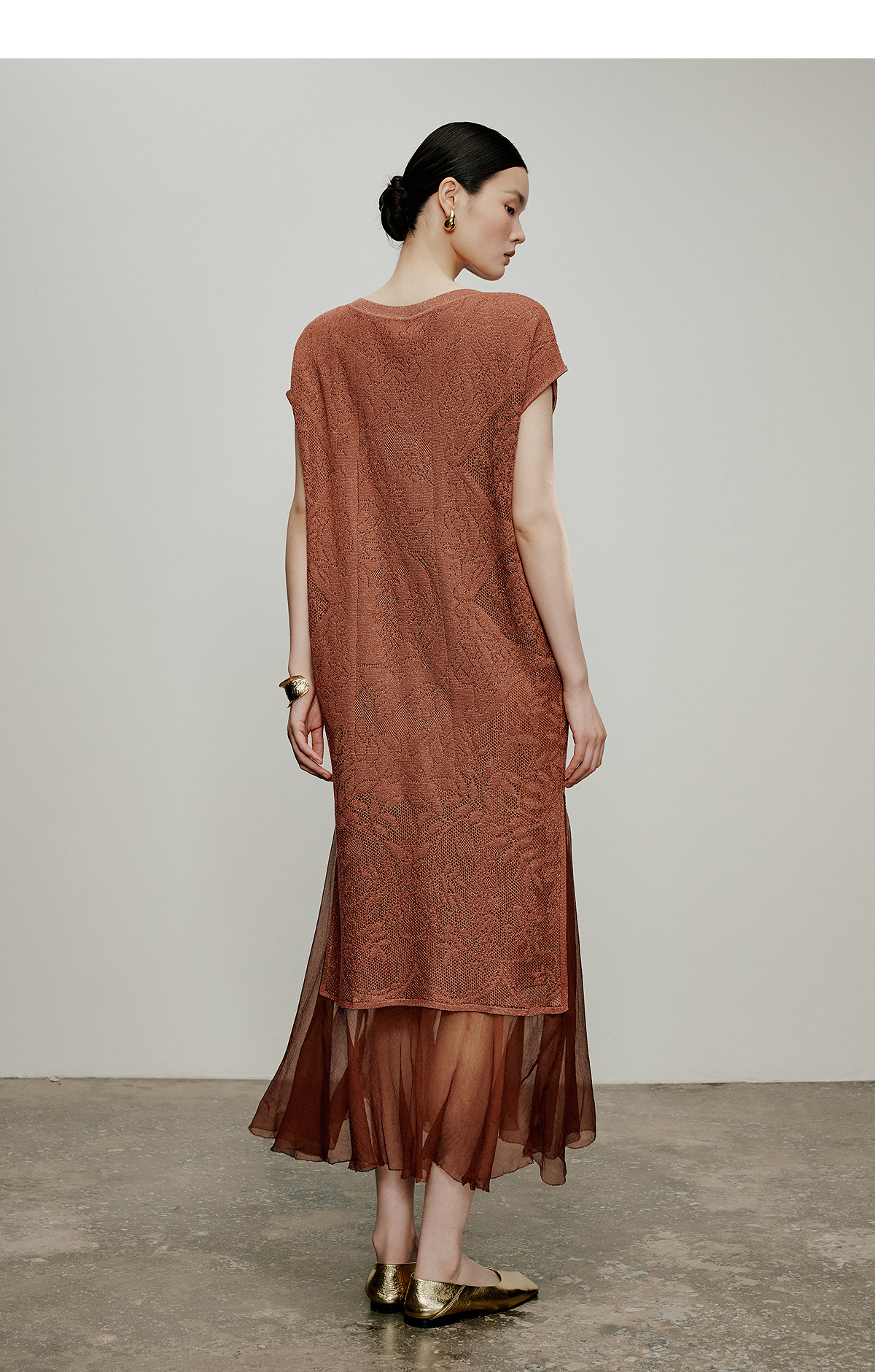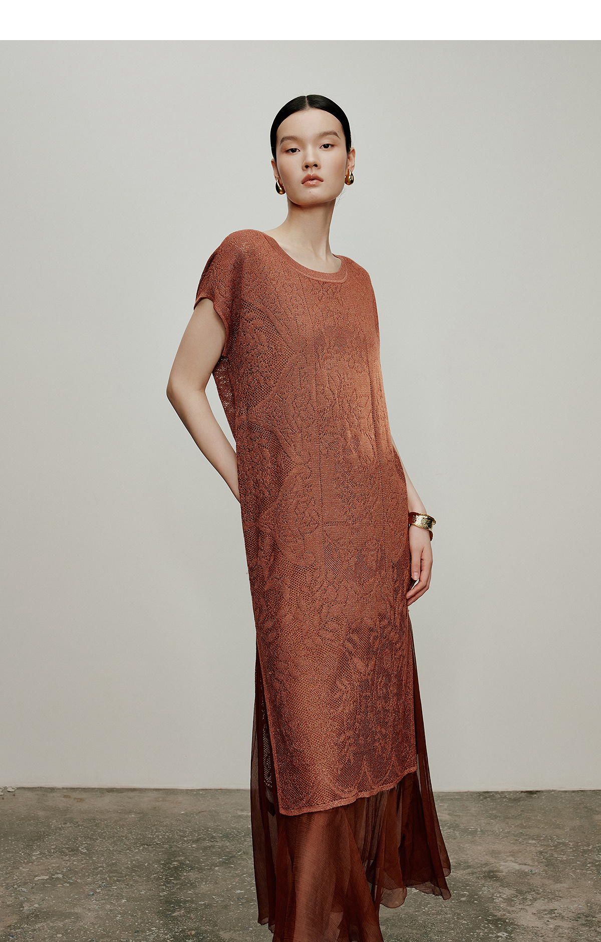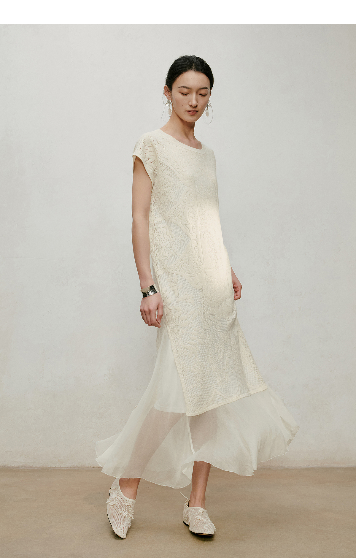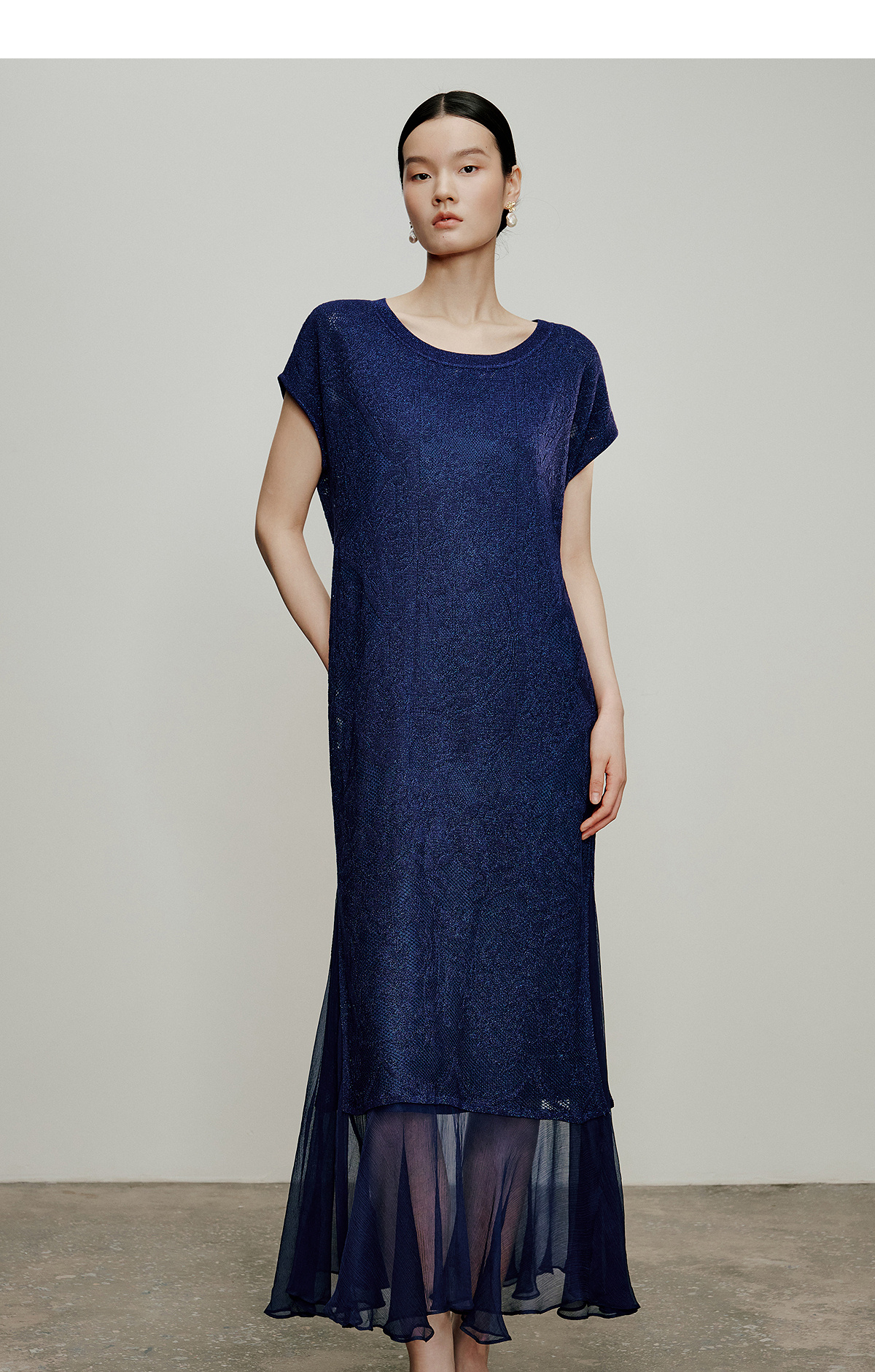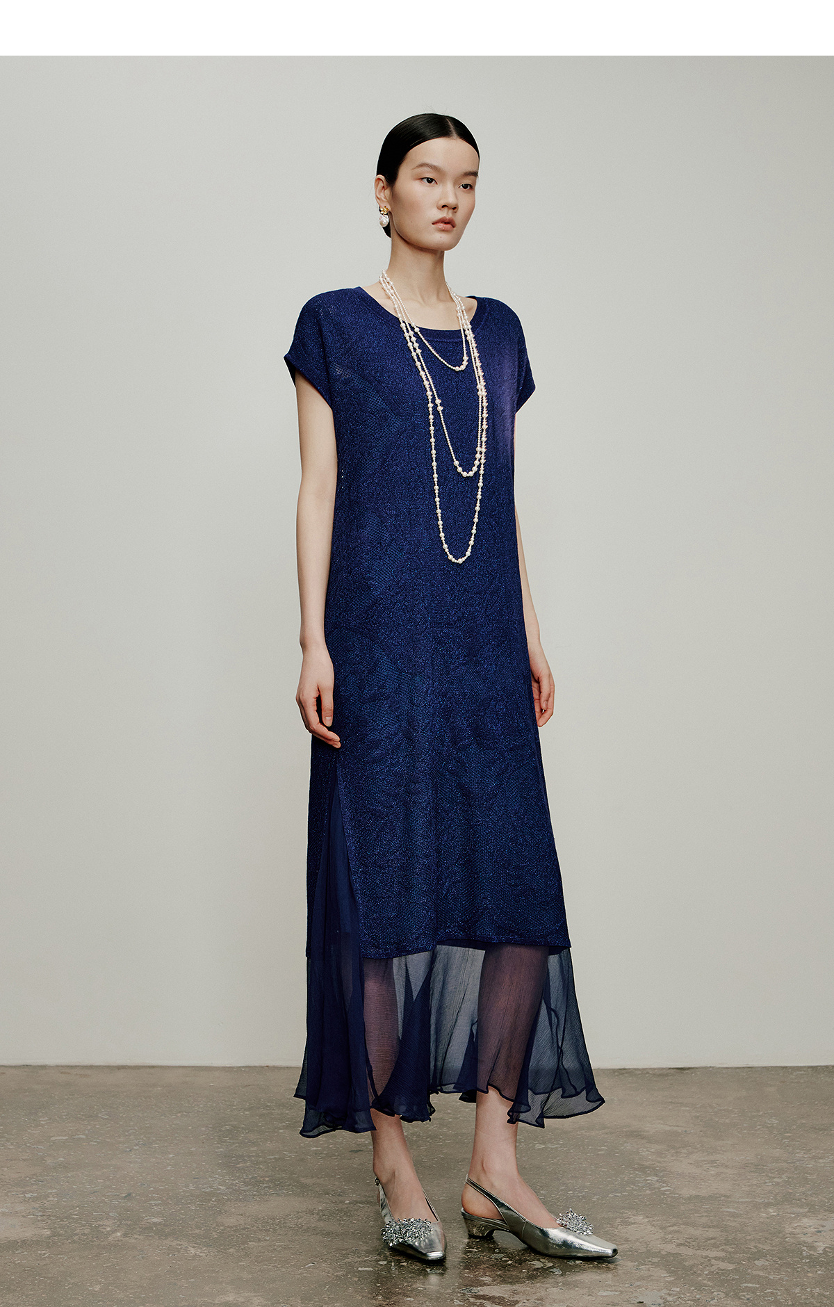 【林栖设计小店】 一帘幽梦|多色拼桑蚕丝飞片2026夏新款毛织连衣裙1962080