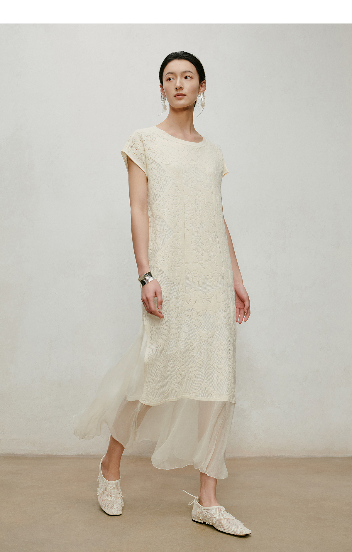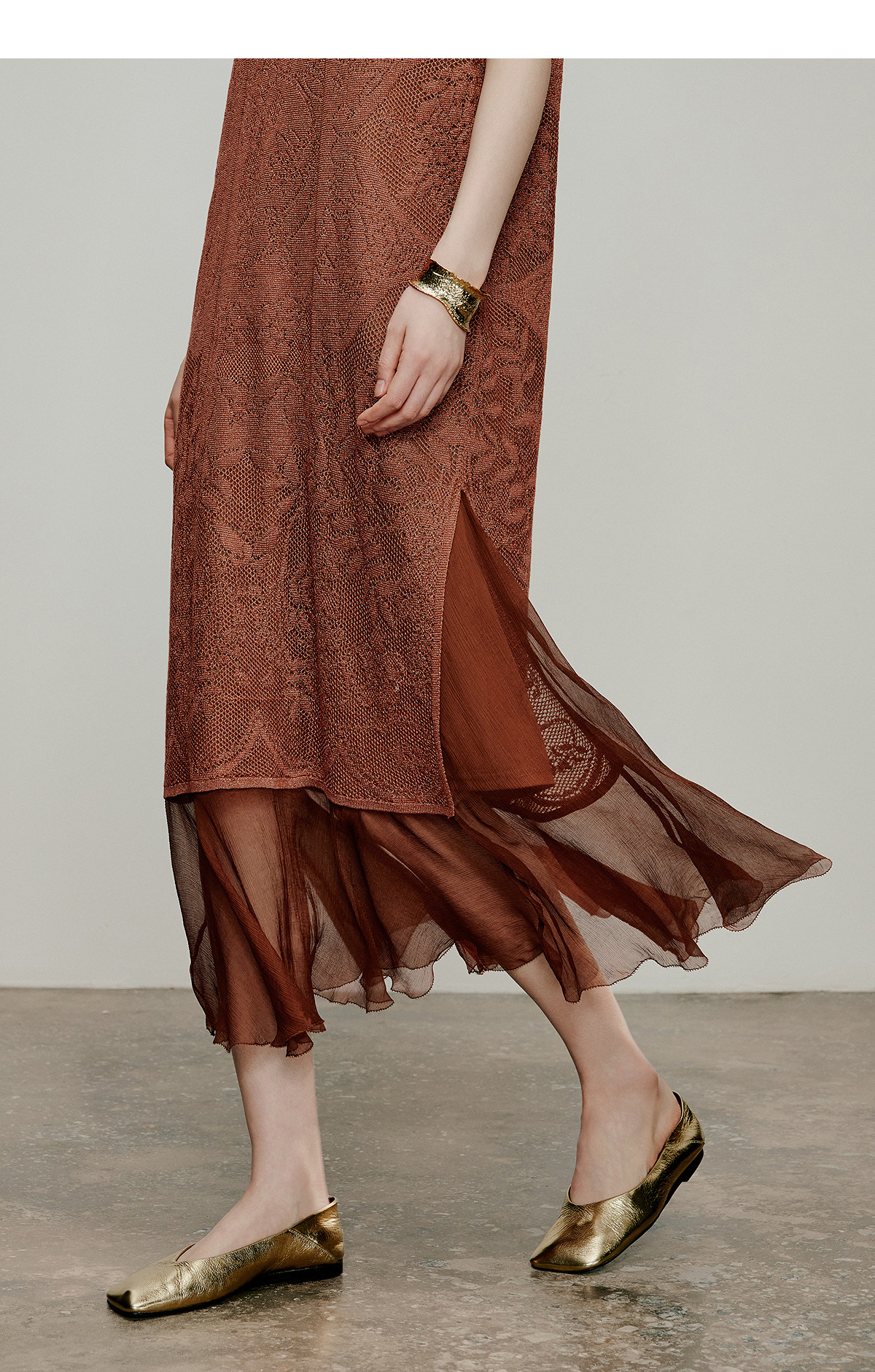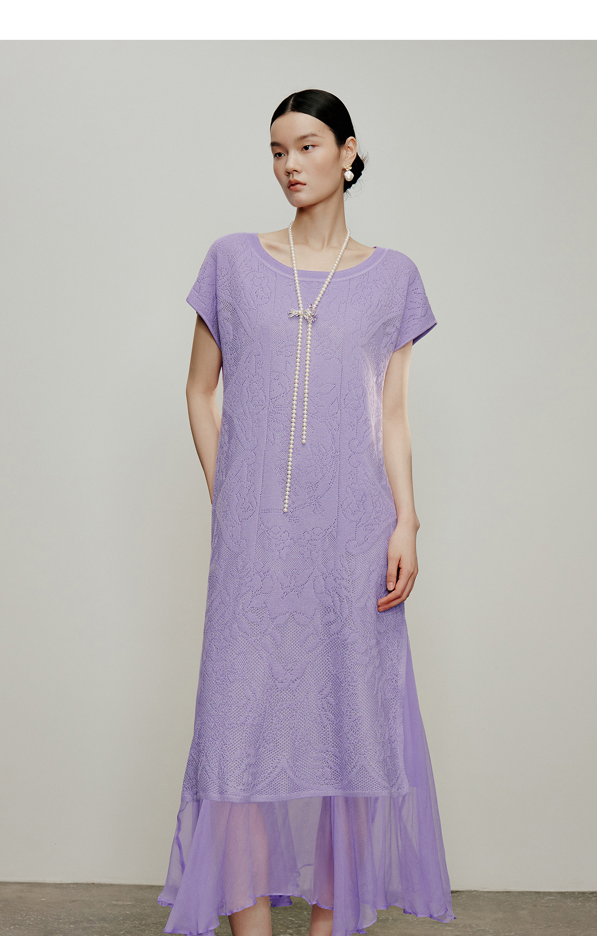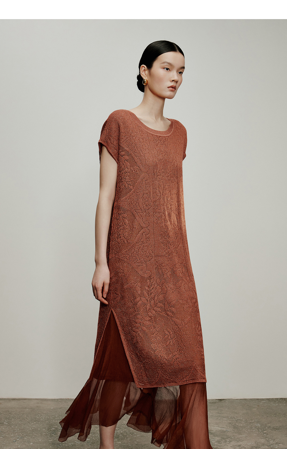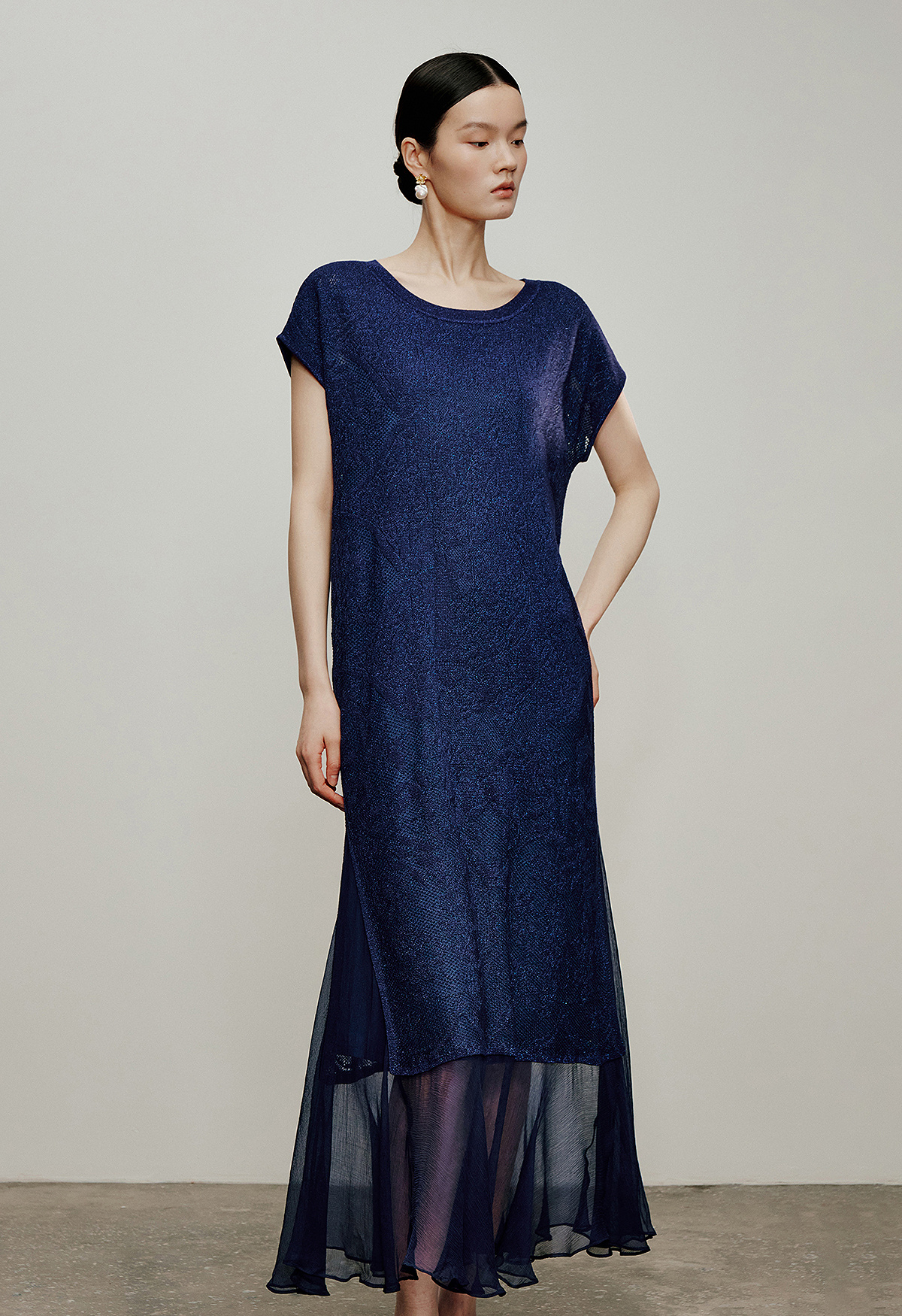 【林栖设计小店】 一帘幽梦|多色拼桑蚕丝飞片2026夏新款毛织连衣裙1962080