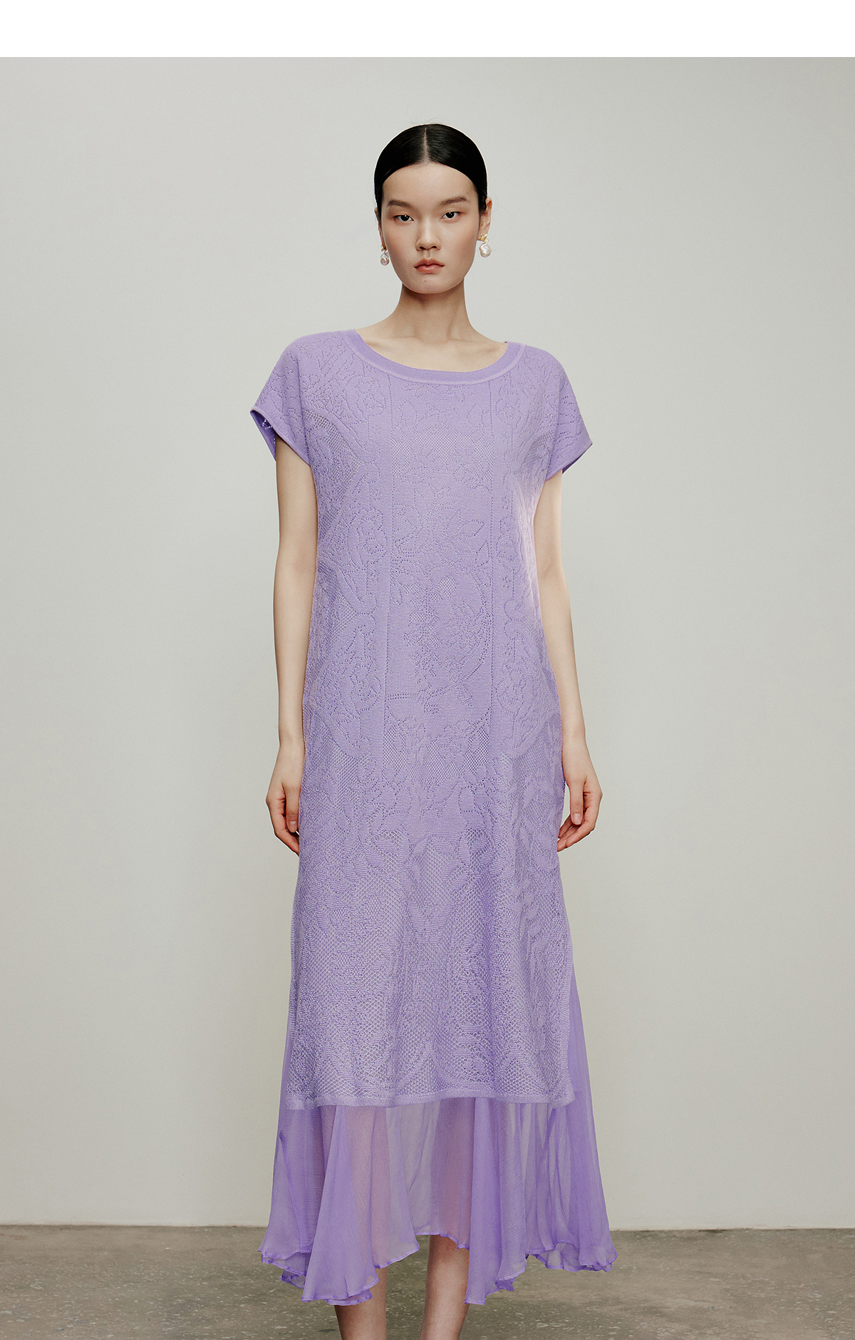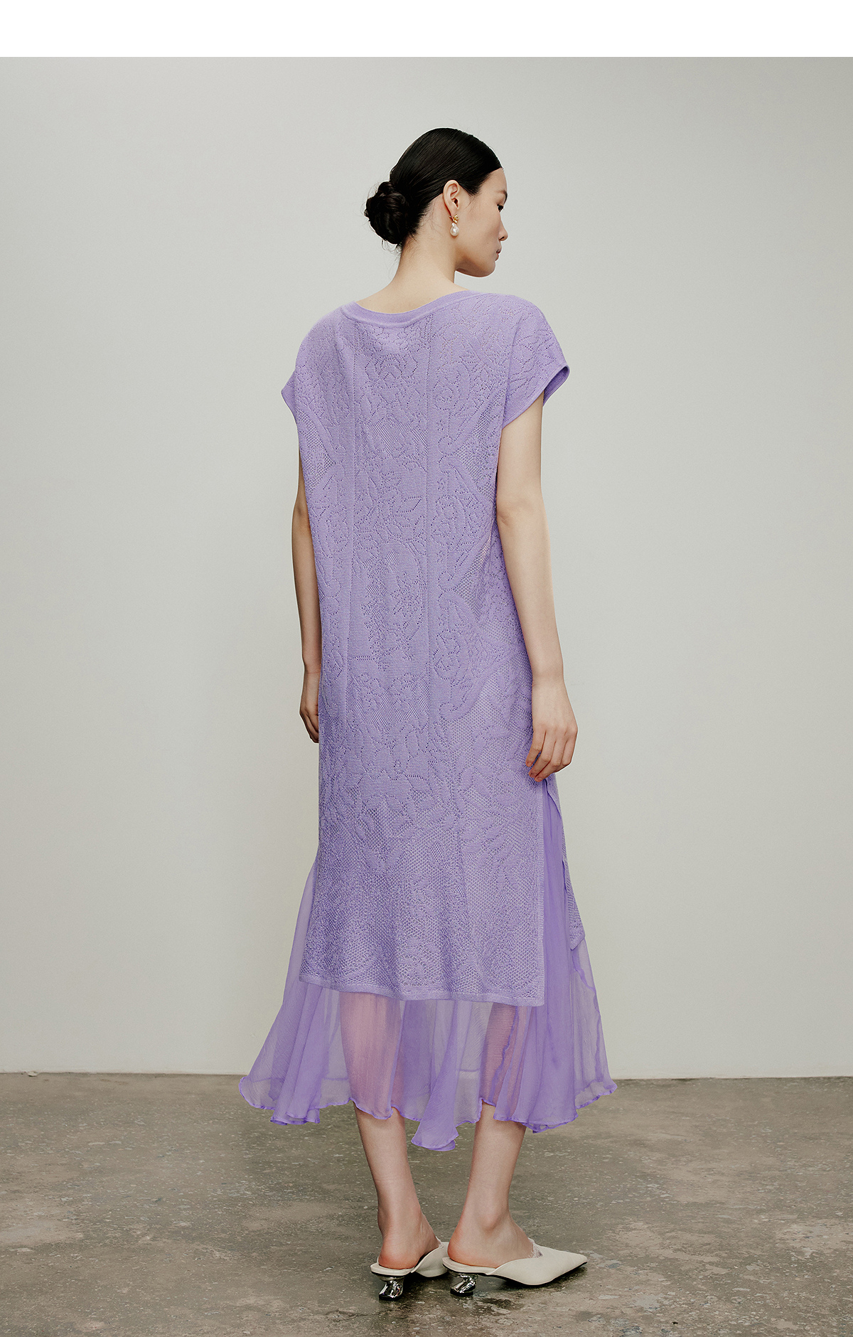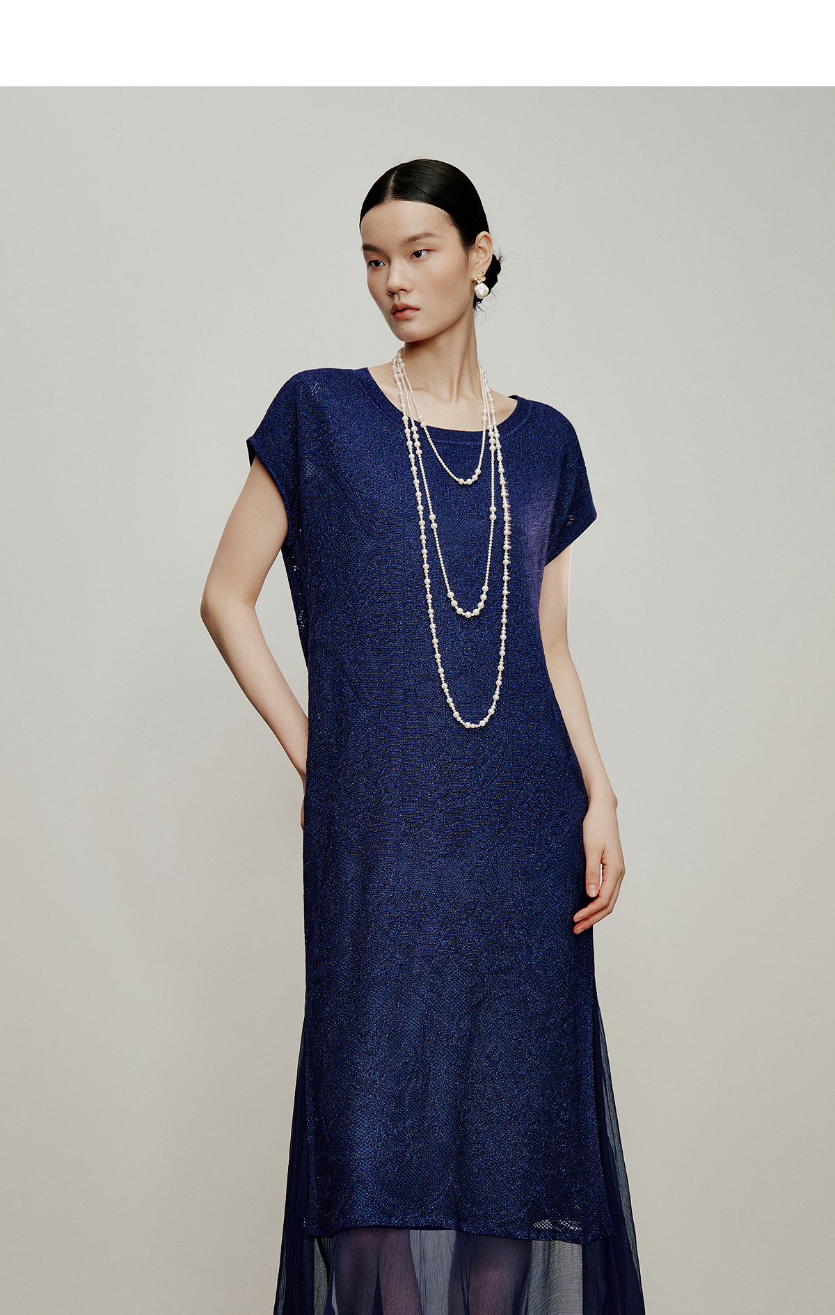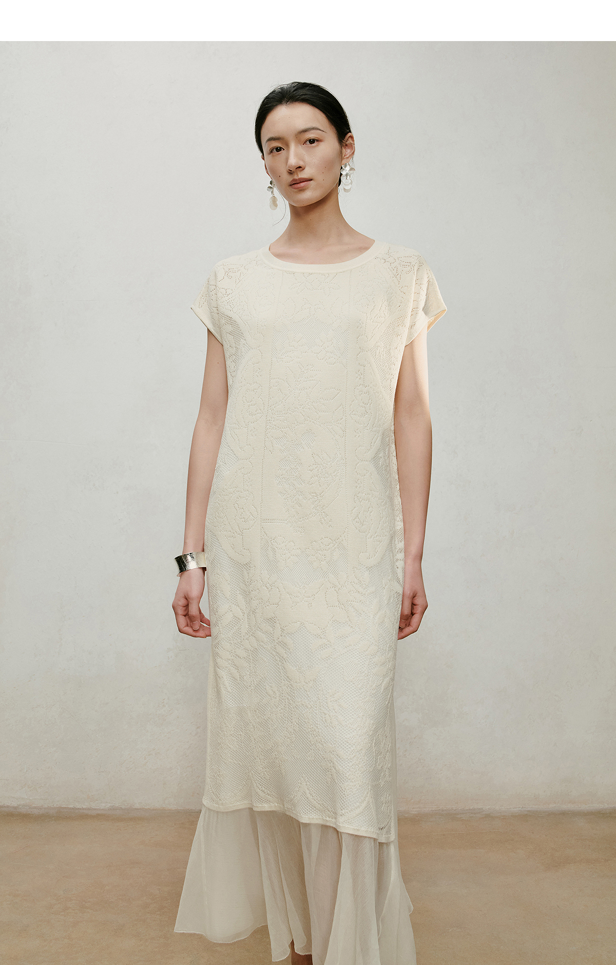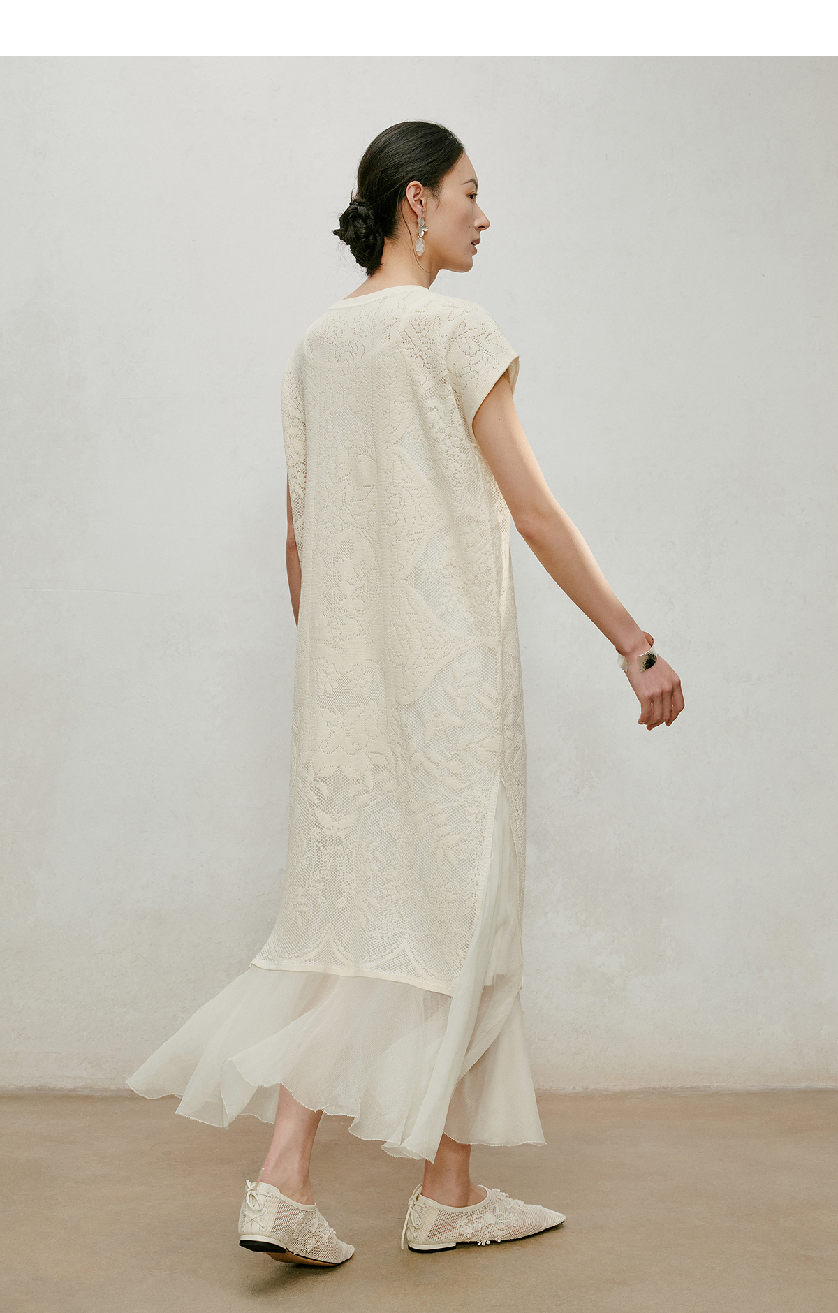 【林栖设计小店】 一帘幽梦|多色拼桑蚕丝飞片2026夏新款毛织连衣裙1962080