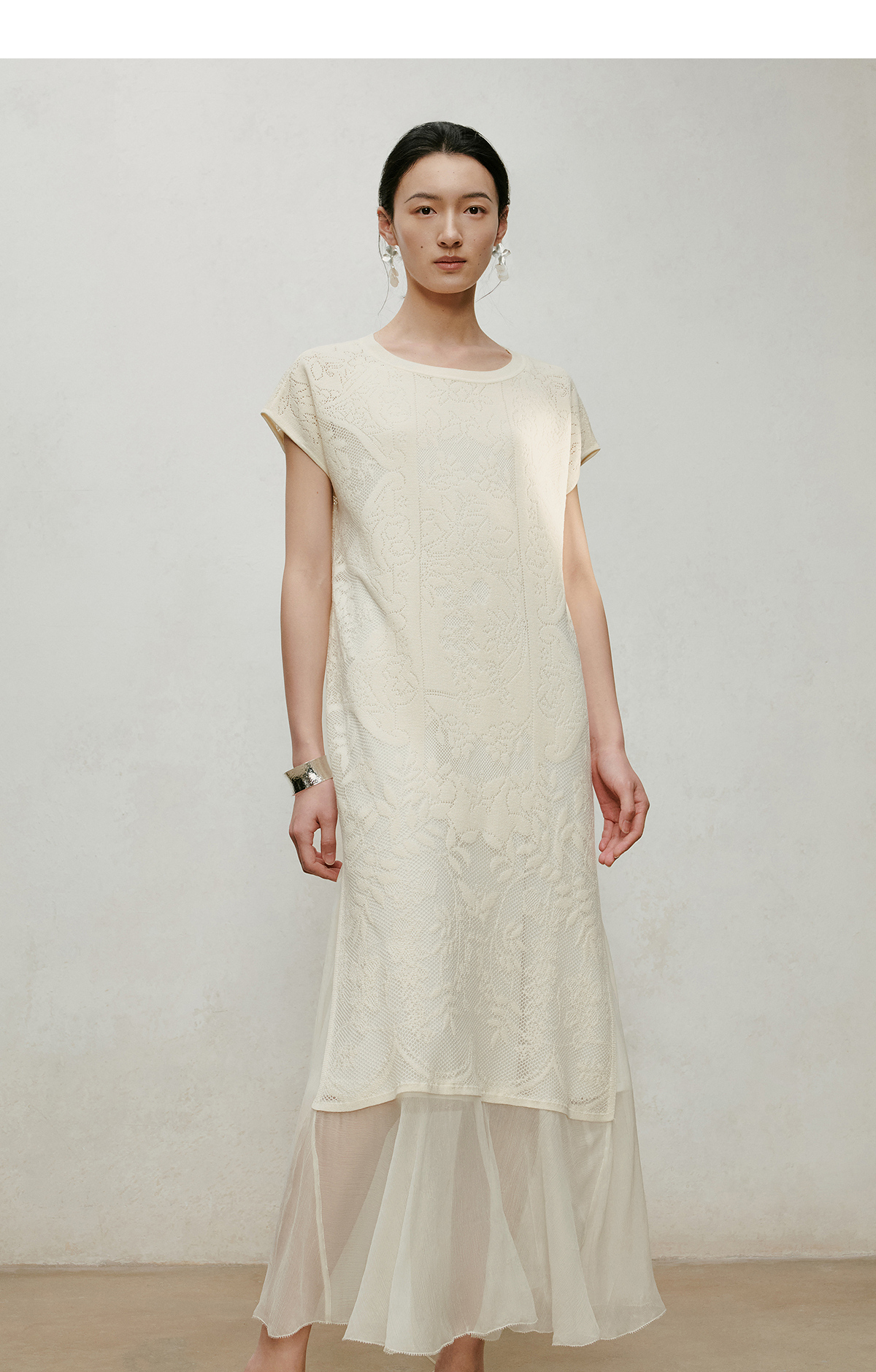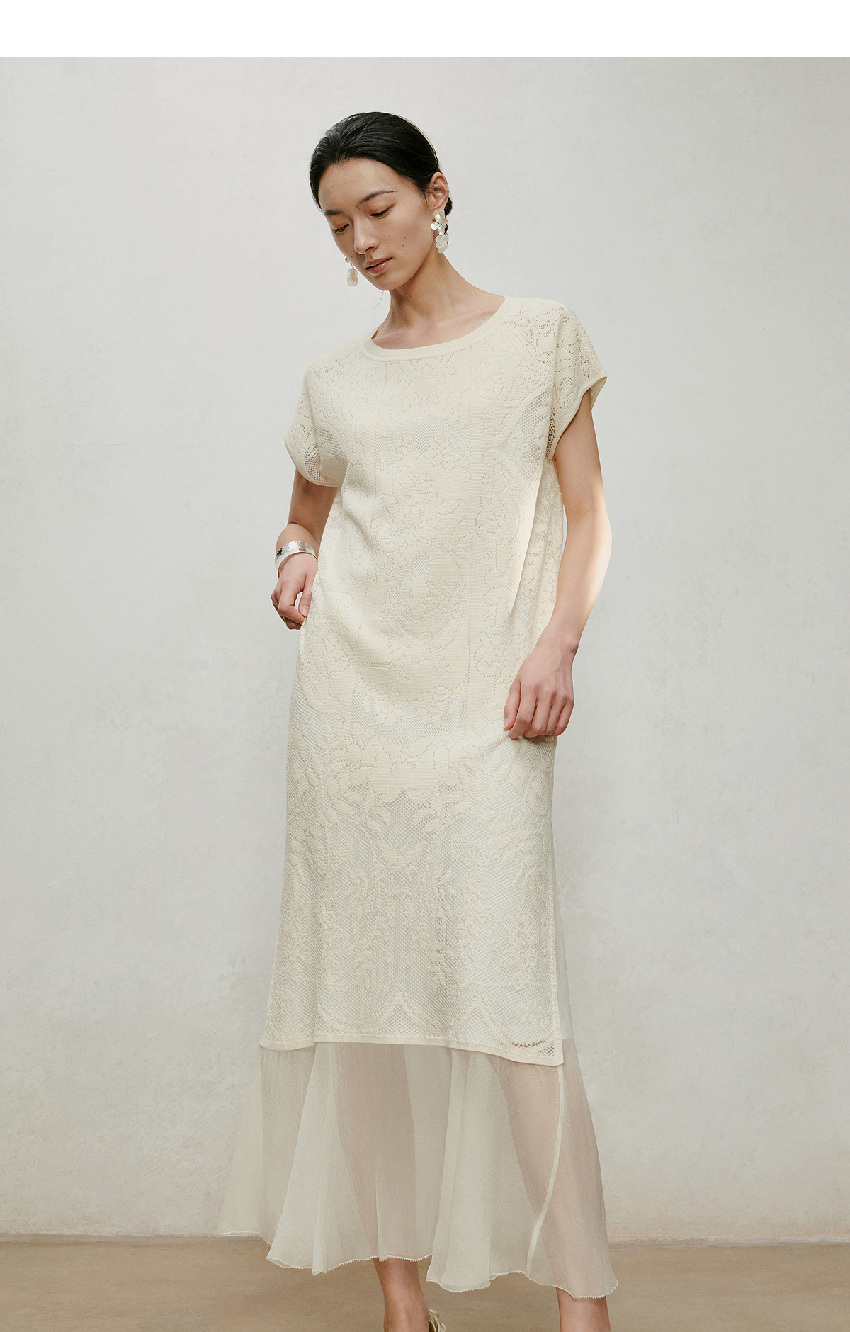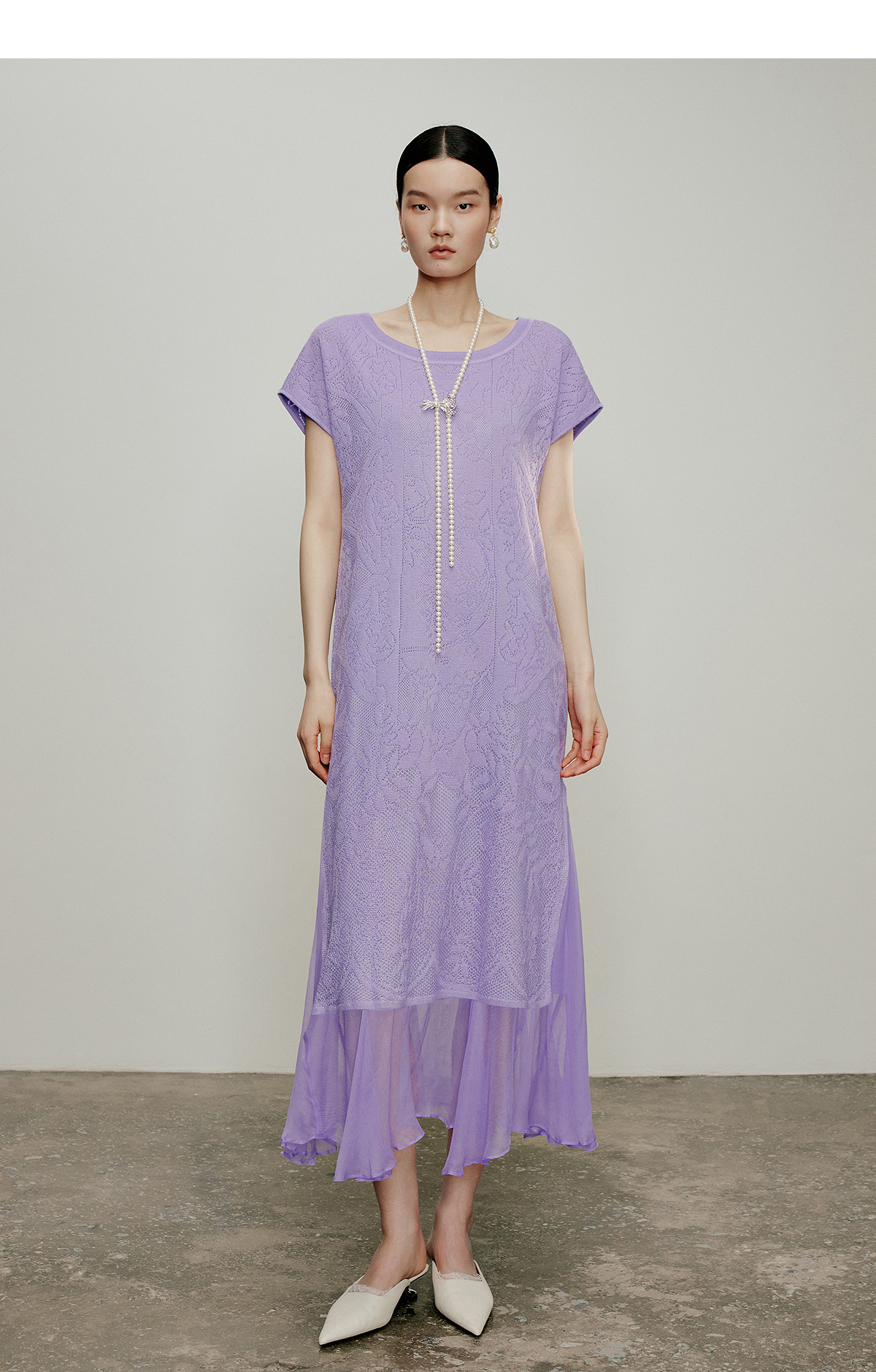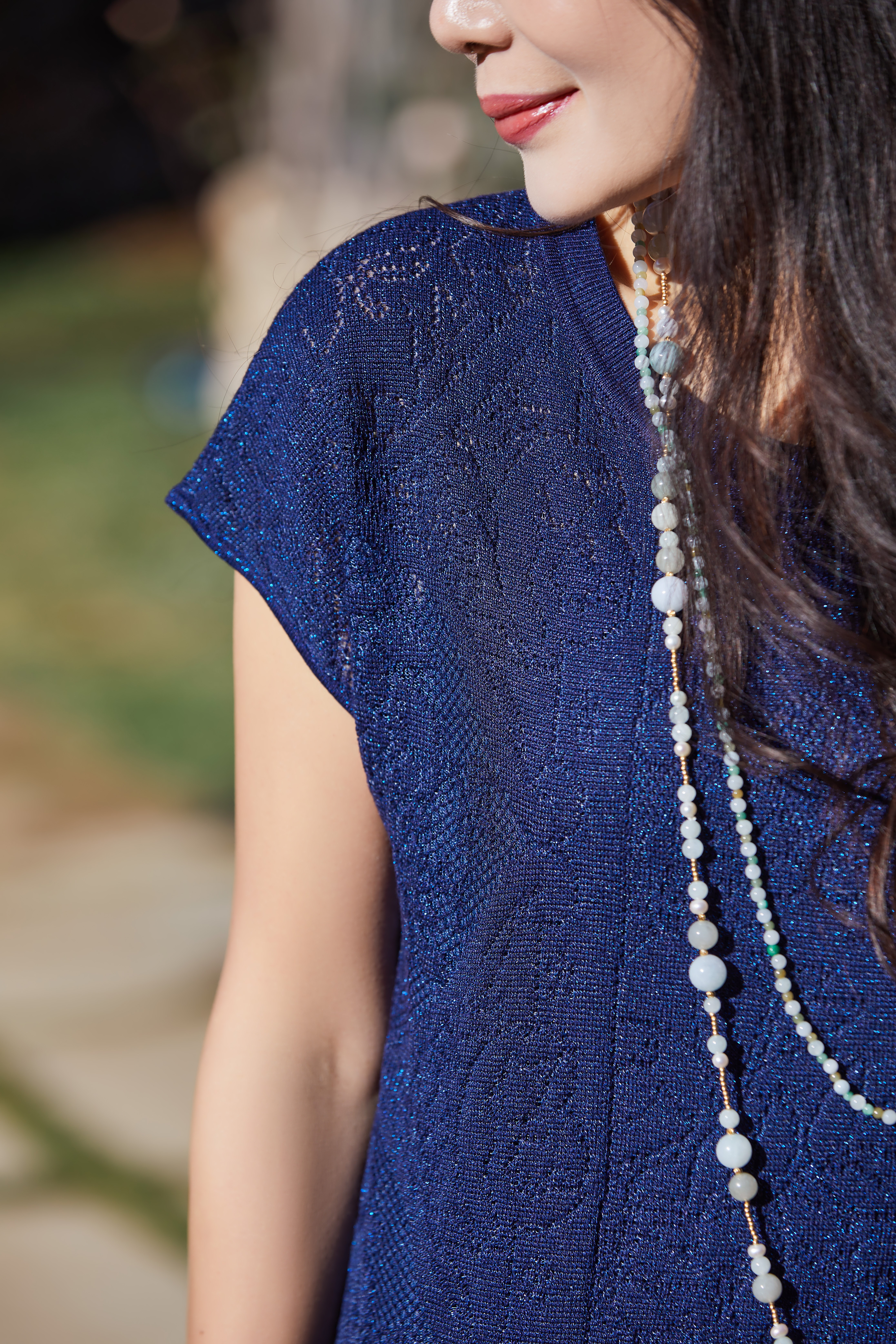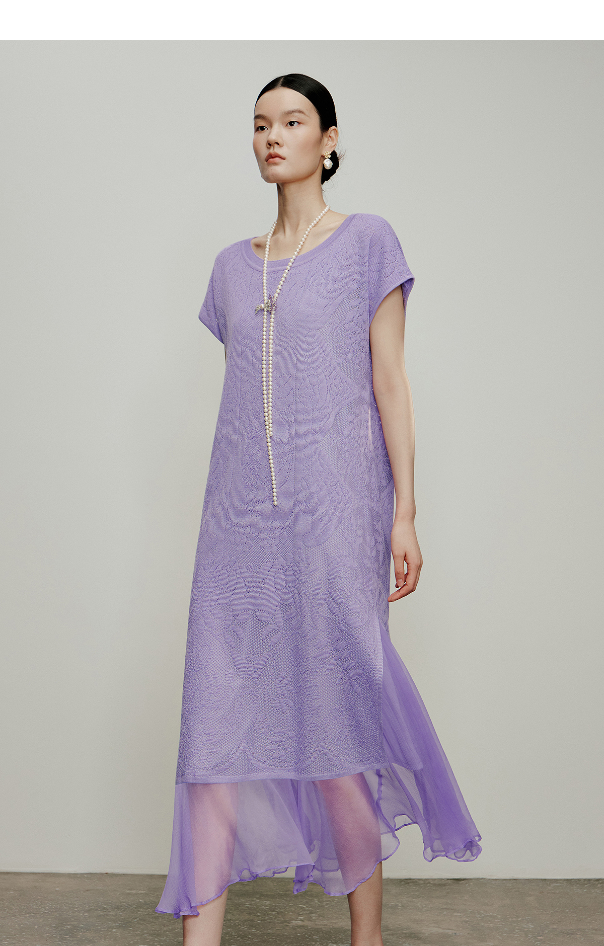 【林栖设计小店】 一帘幽梦|多色拼桑蚕丝飞片2026夏新款毛织连衣裙1962080