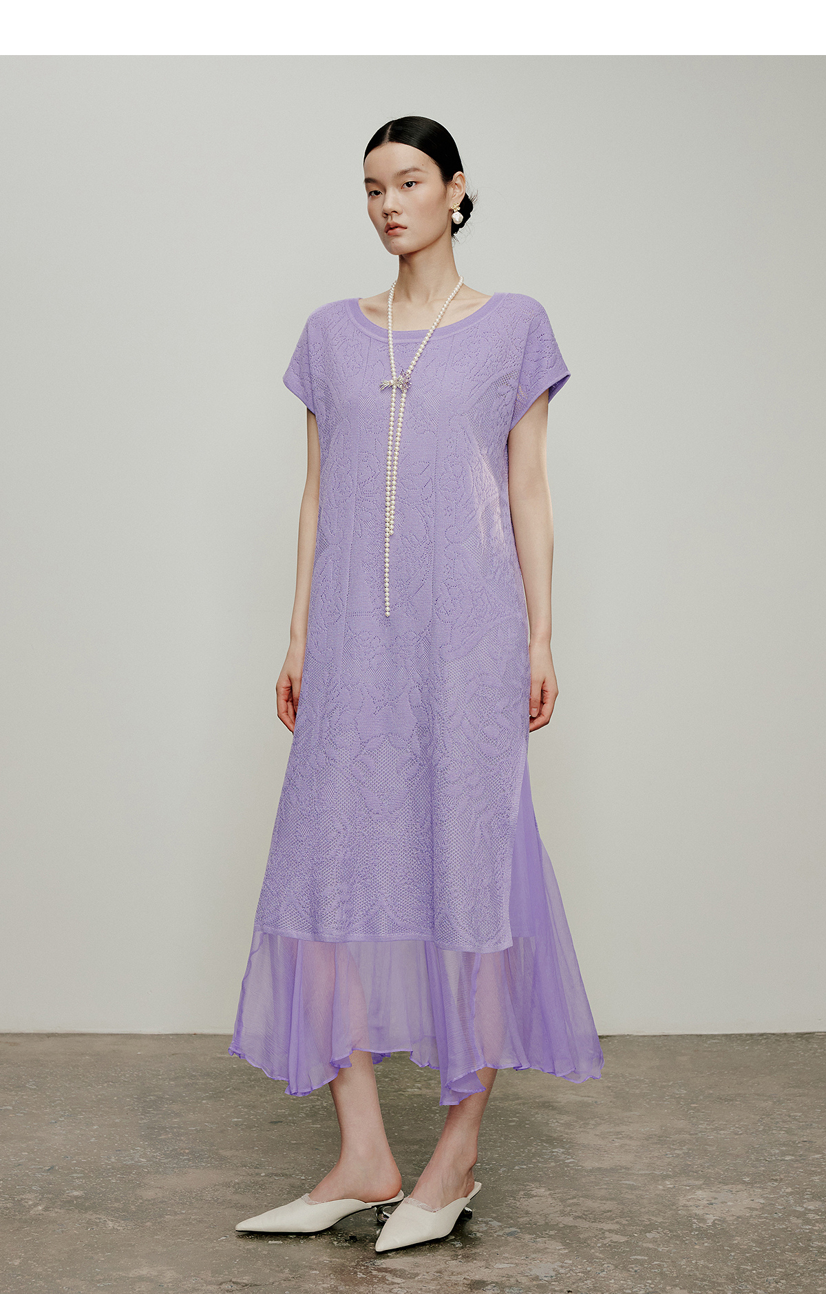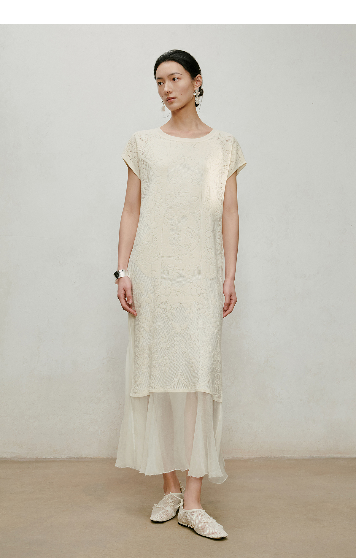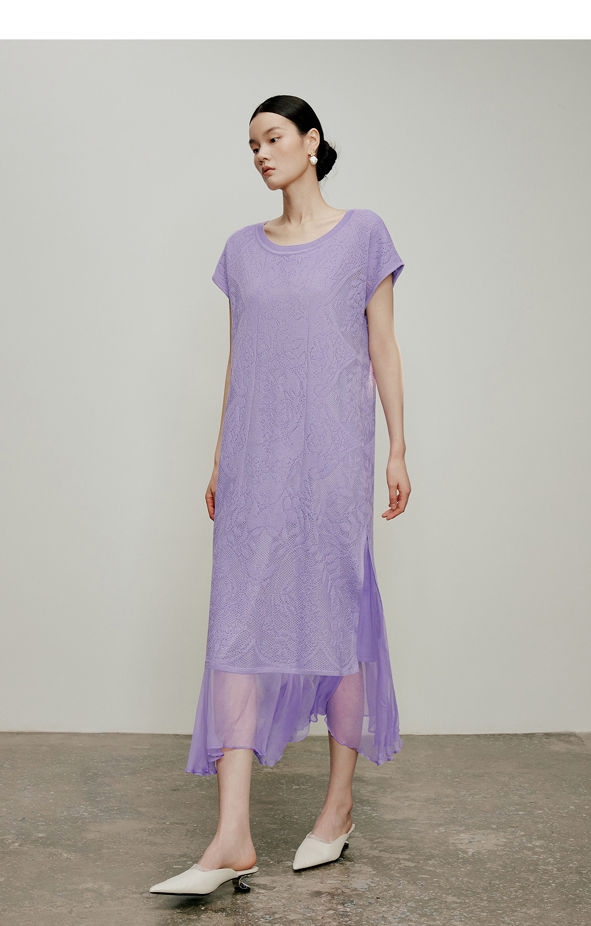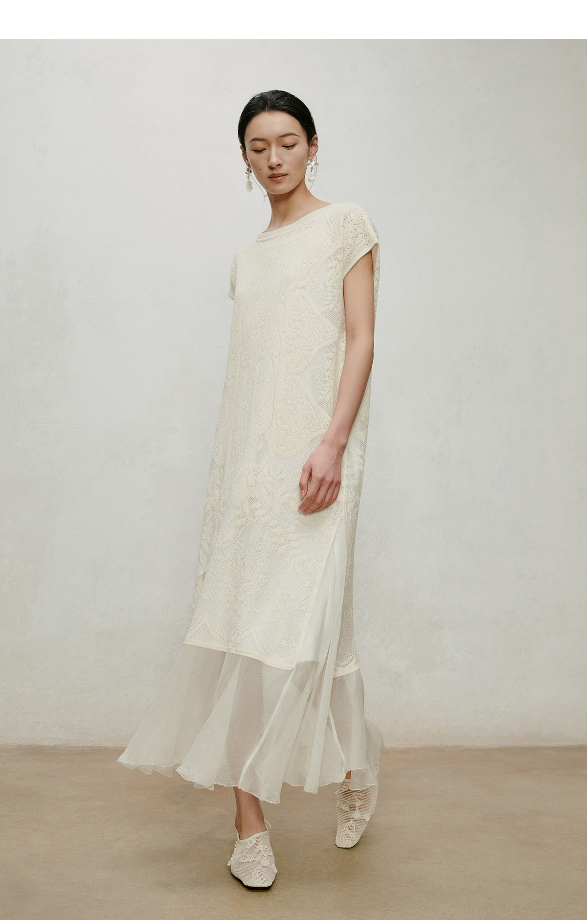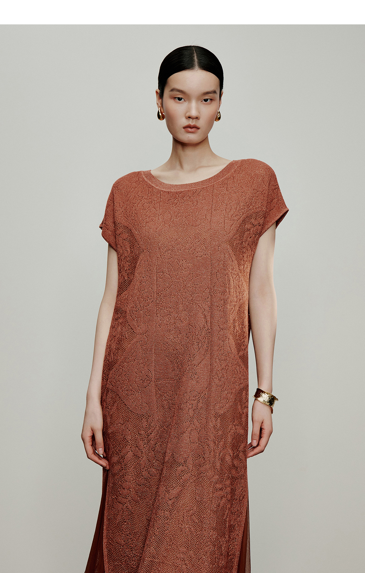 【林栖设计小店】 一帘幽梦|多色拼桑蚕丝飞片2026夏新款毛织连衣裙1962080
