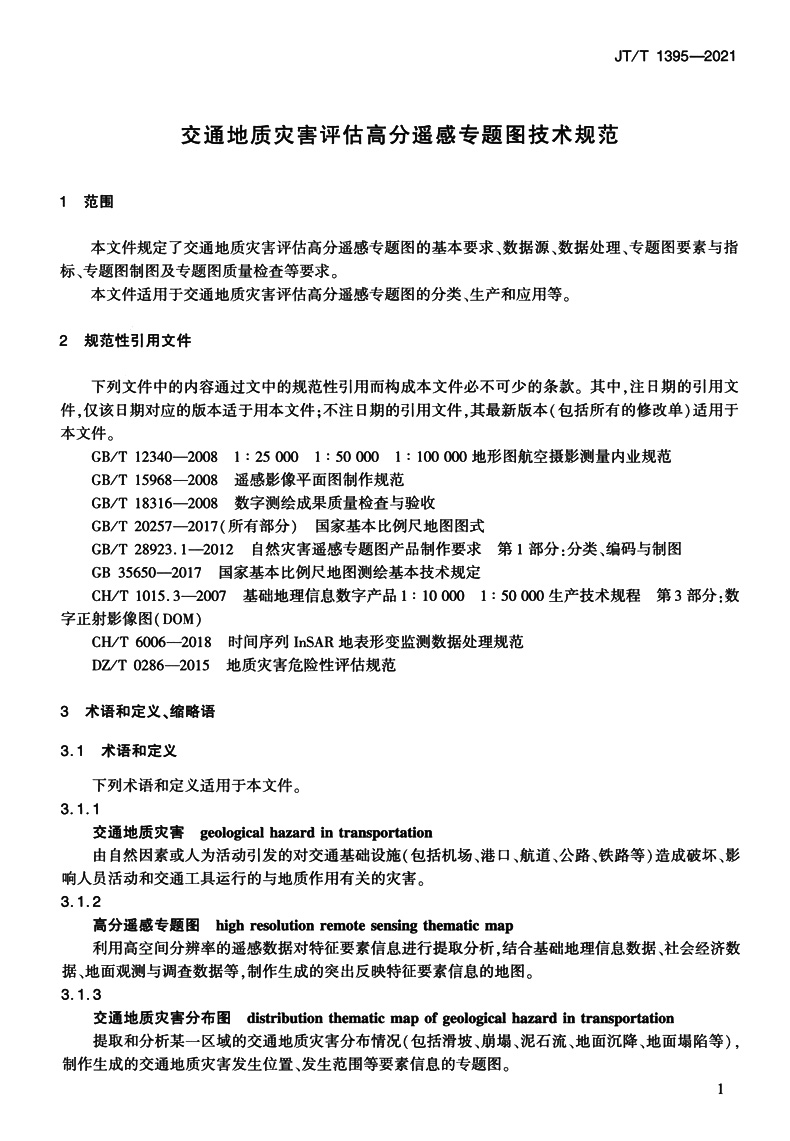 书名:交通地质灾害评估高分遥感专题图技术规范(JT/T 1395—2021)