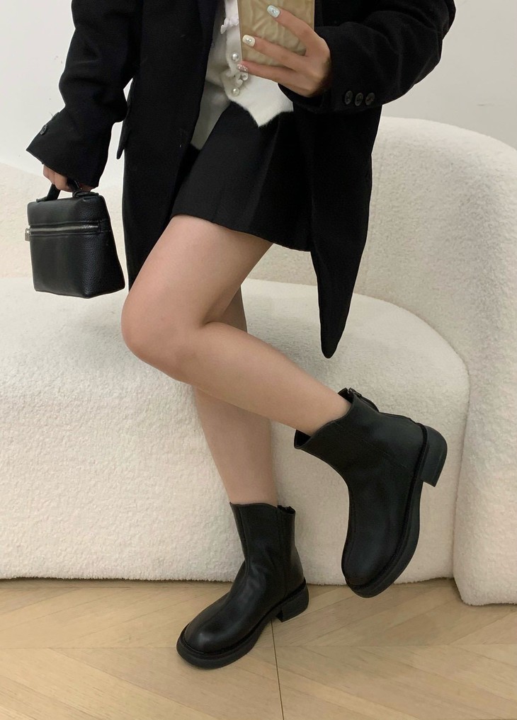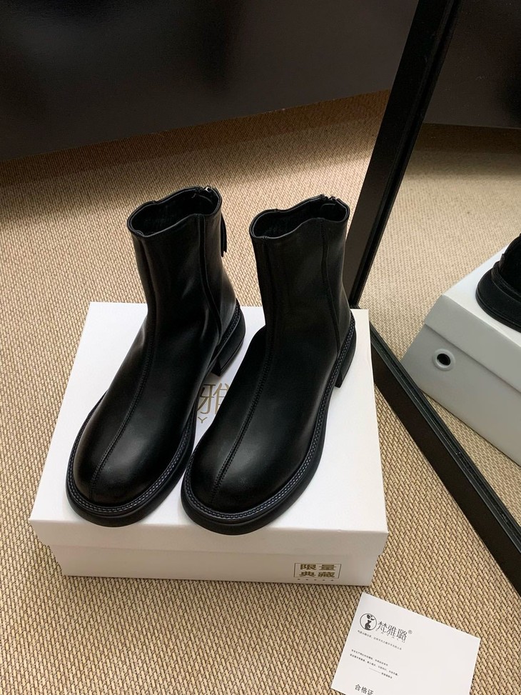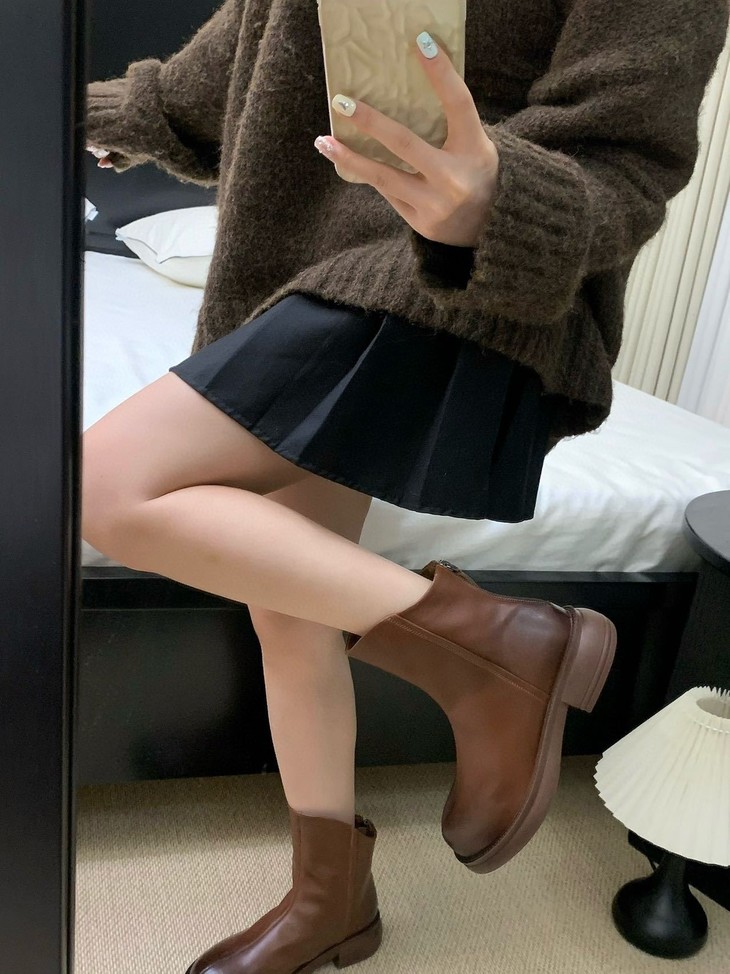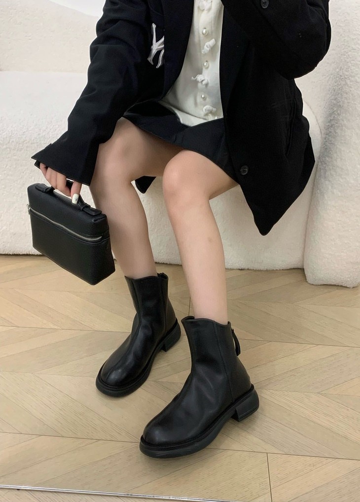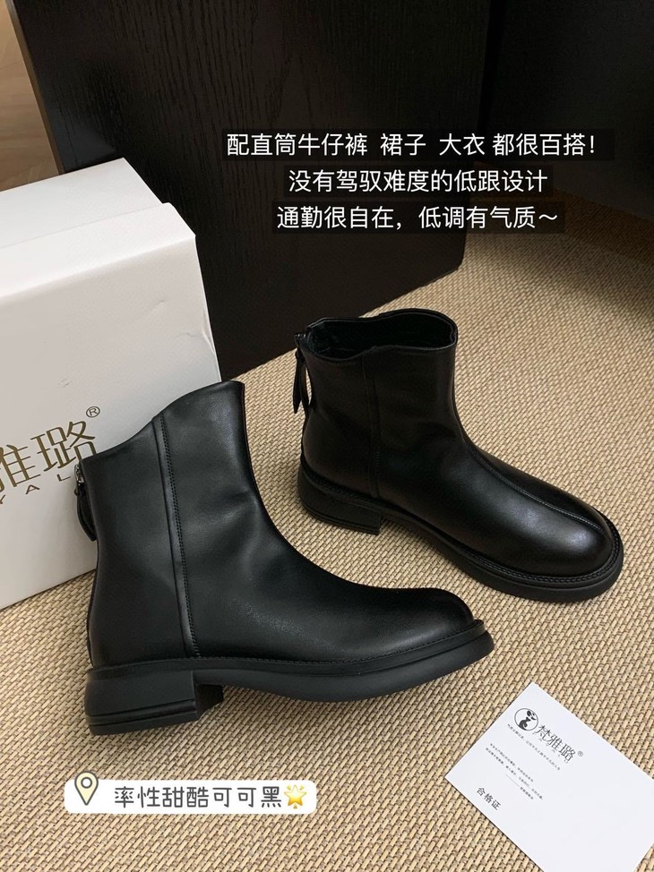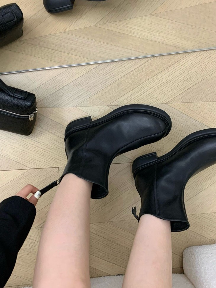 你离韩里韩气的氛围感穿搭只差这双小短靴! 秋冬味道十足的皮面 非常好打理 整双靴都很软可暴走哦! 配直筒牛仔裤 裙子 大衣 都很百搭!! 没有驾驭难度的低跟设计 通勤很自在,低调有气质~