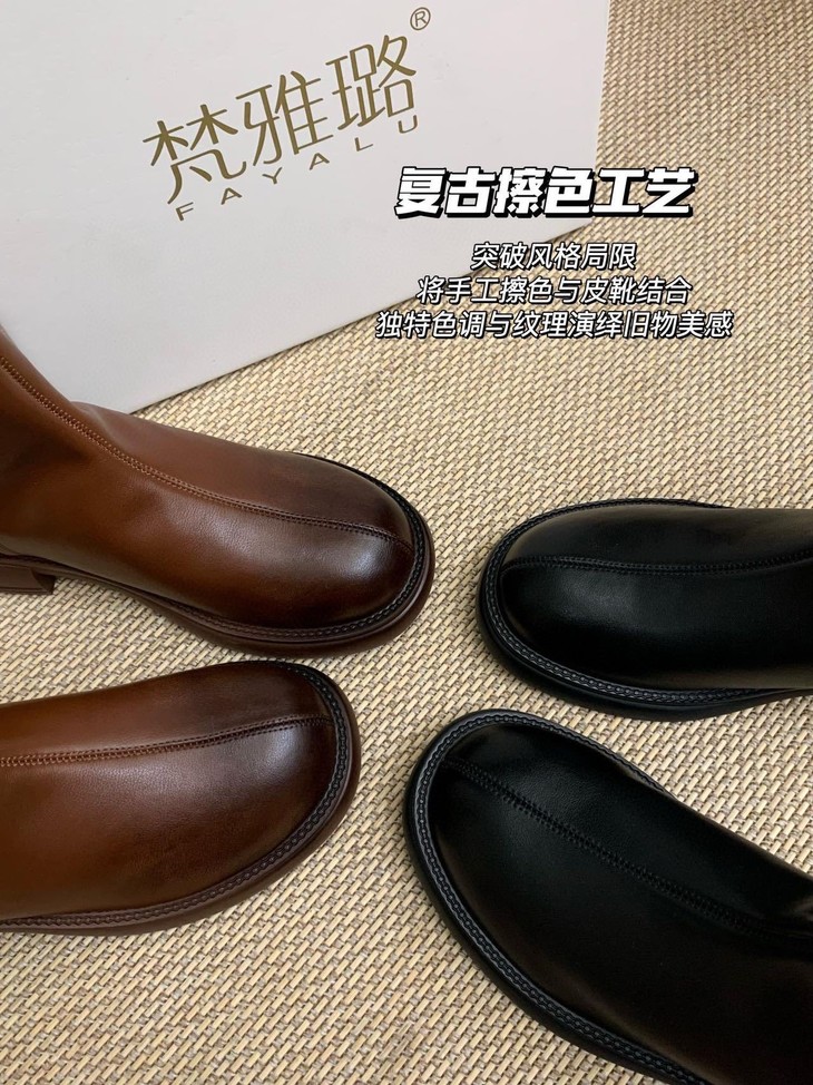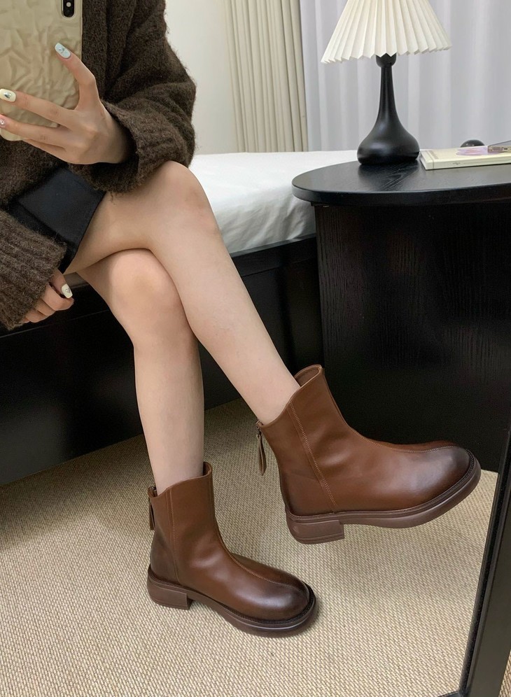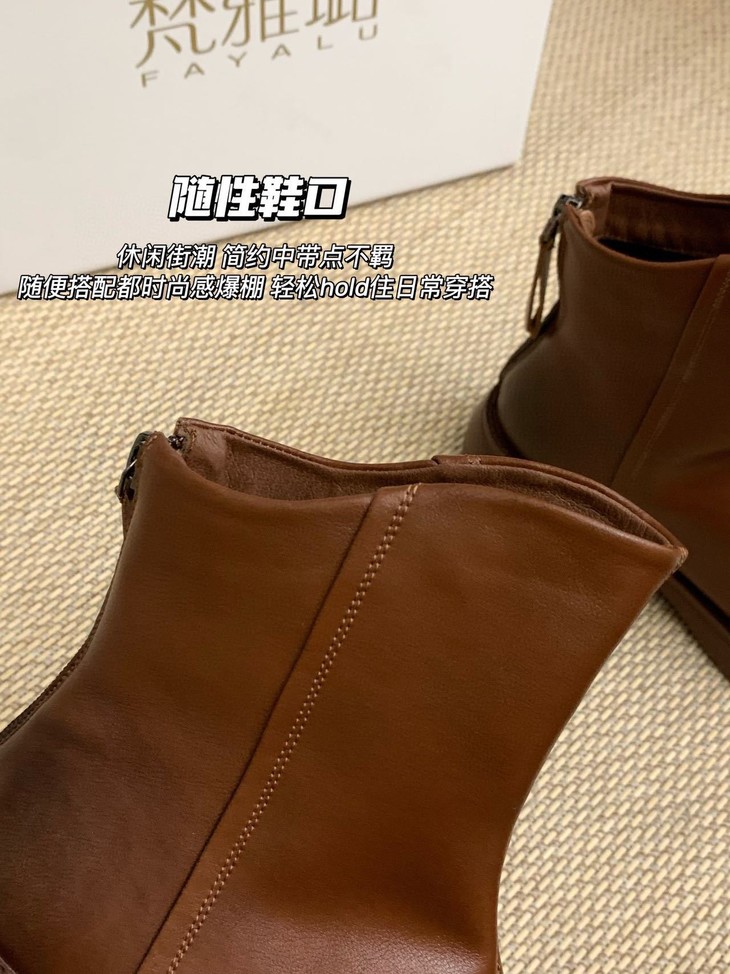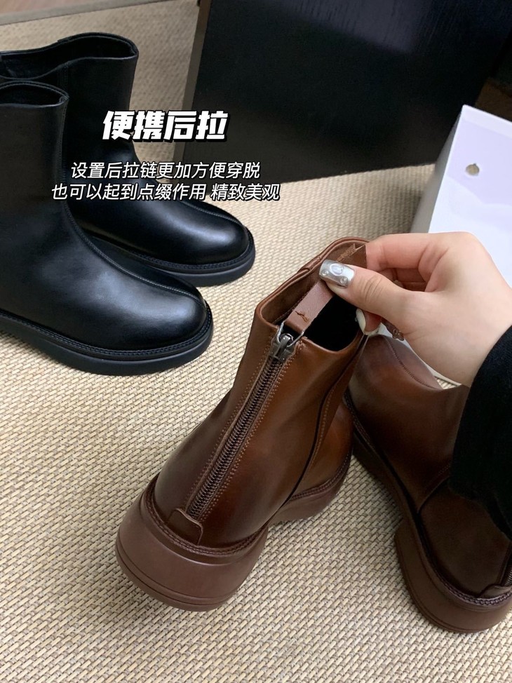 脚宽脚胖的女生请认准它 挺阔的圆头设计 包容性很强不挤🦶 小厚底增高3.5cm左右噢!! 不会特别挑人日常穿也无压力 复古擦色工艺 时髦不挑人 拉链的设计 很方便日常的穿脱