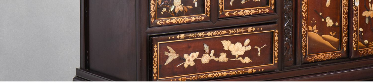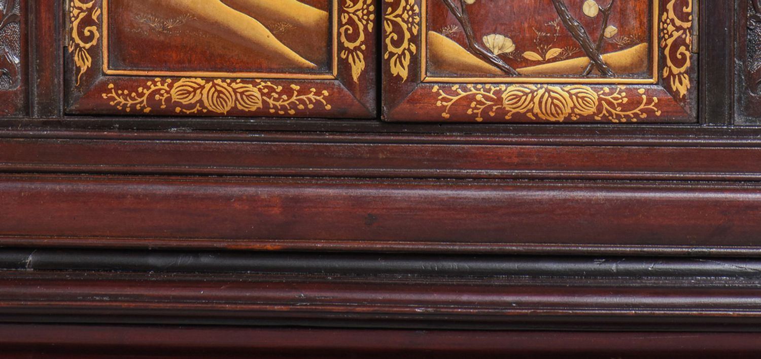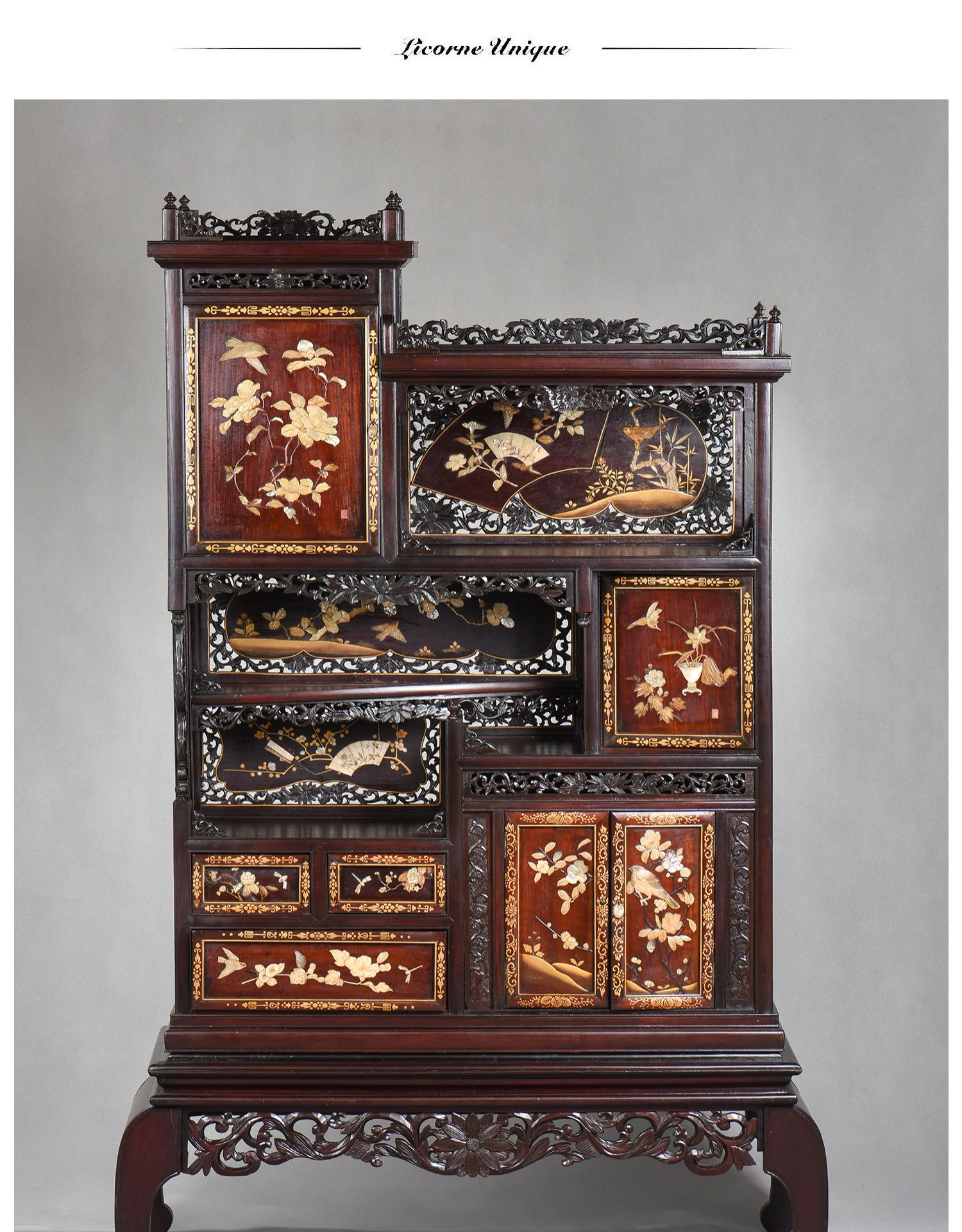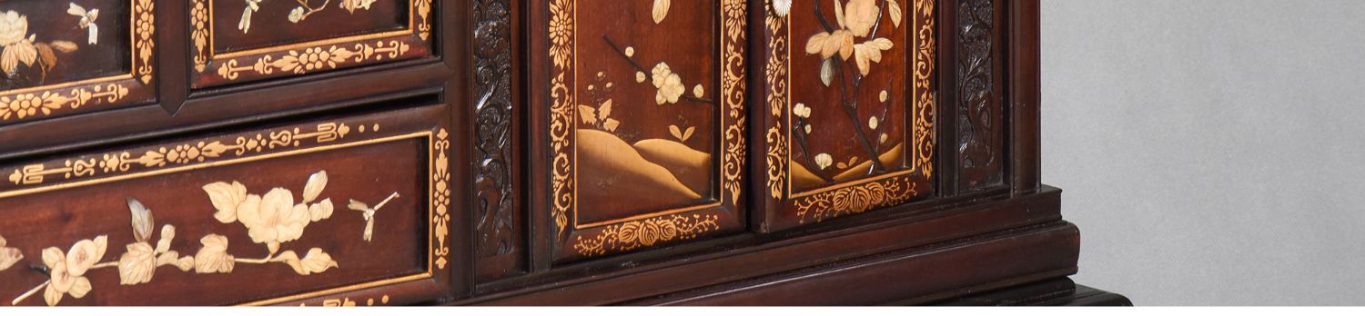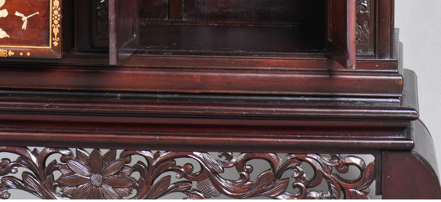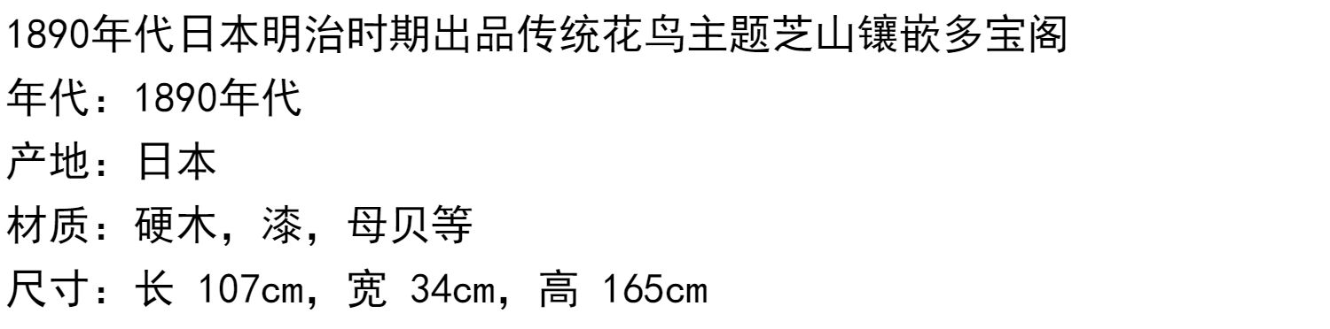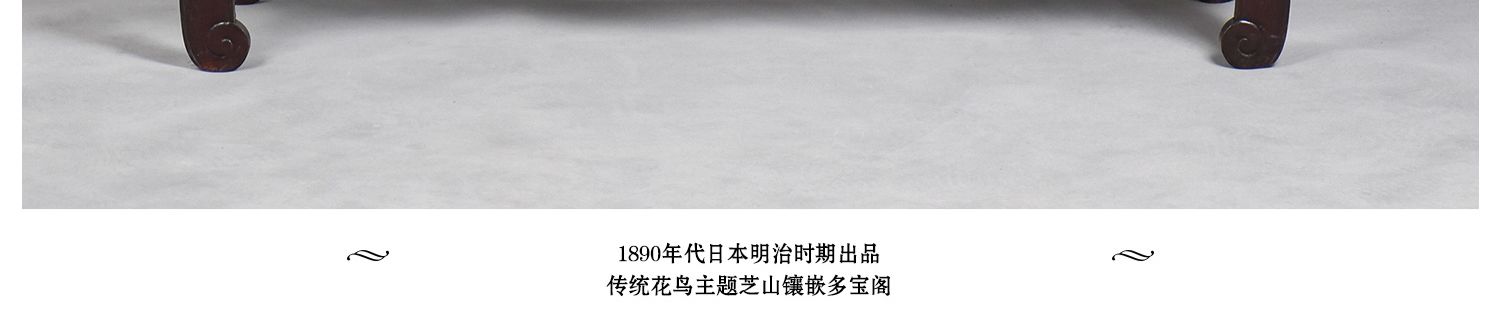 独角鹿西洋古董家具日本明治时期传统花鸟芝山镶嵌多宝阁立柜