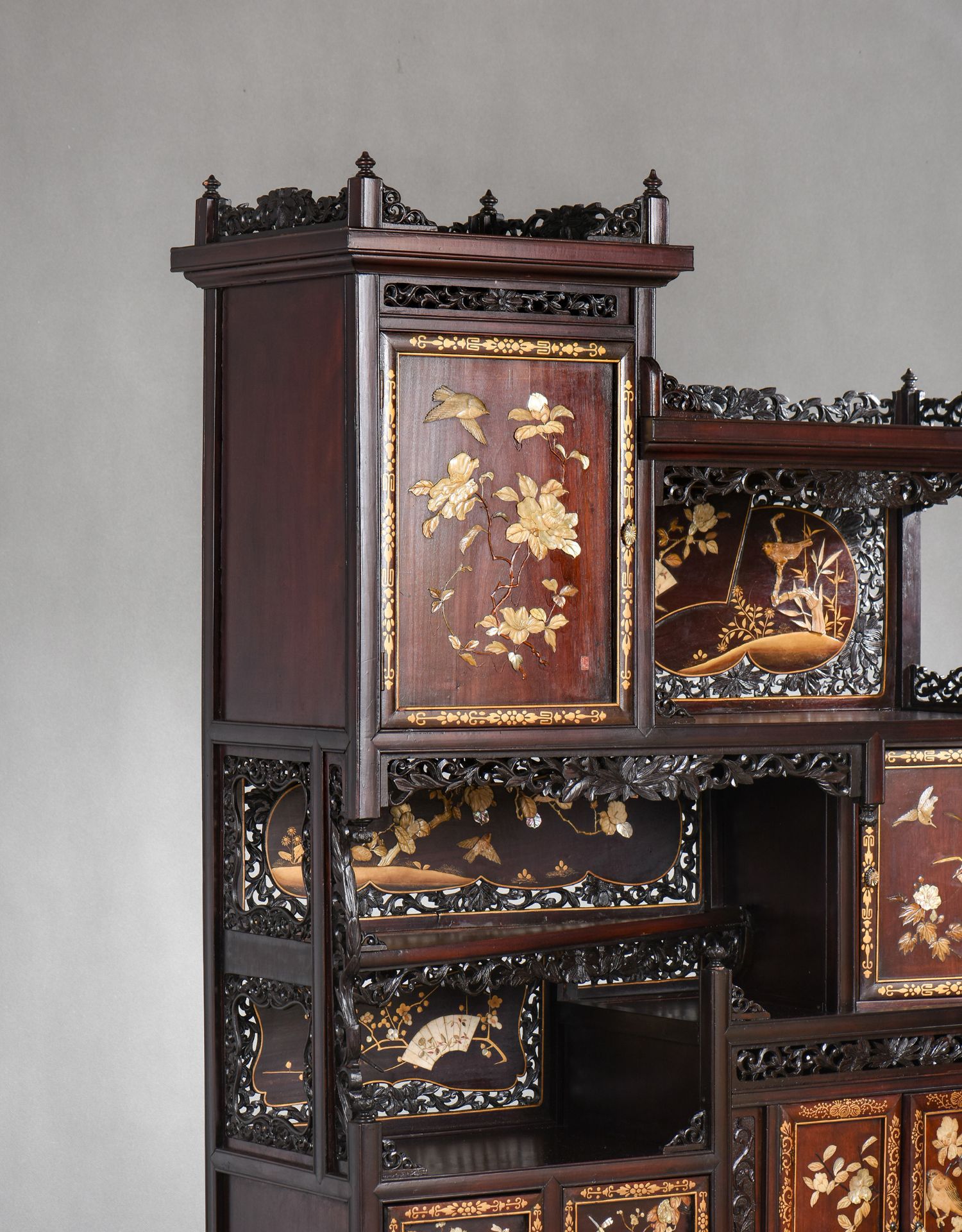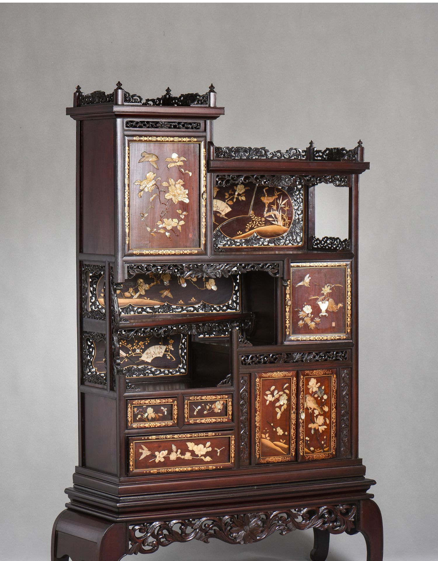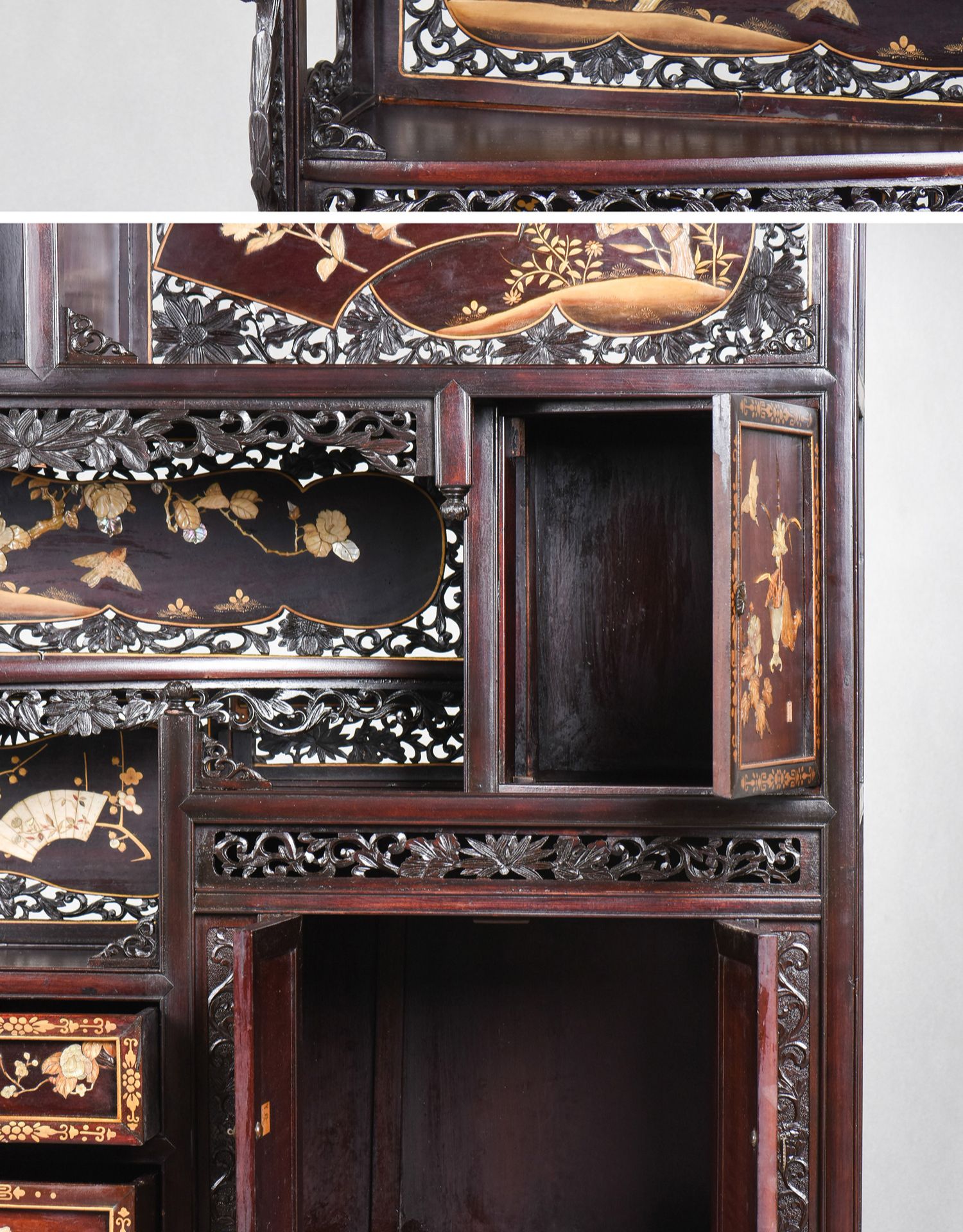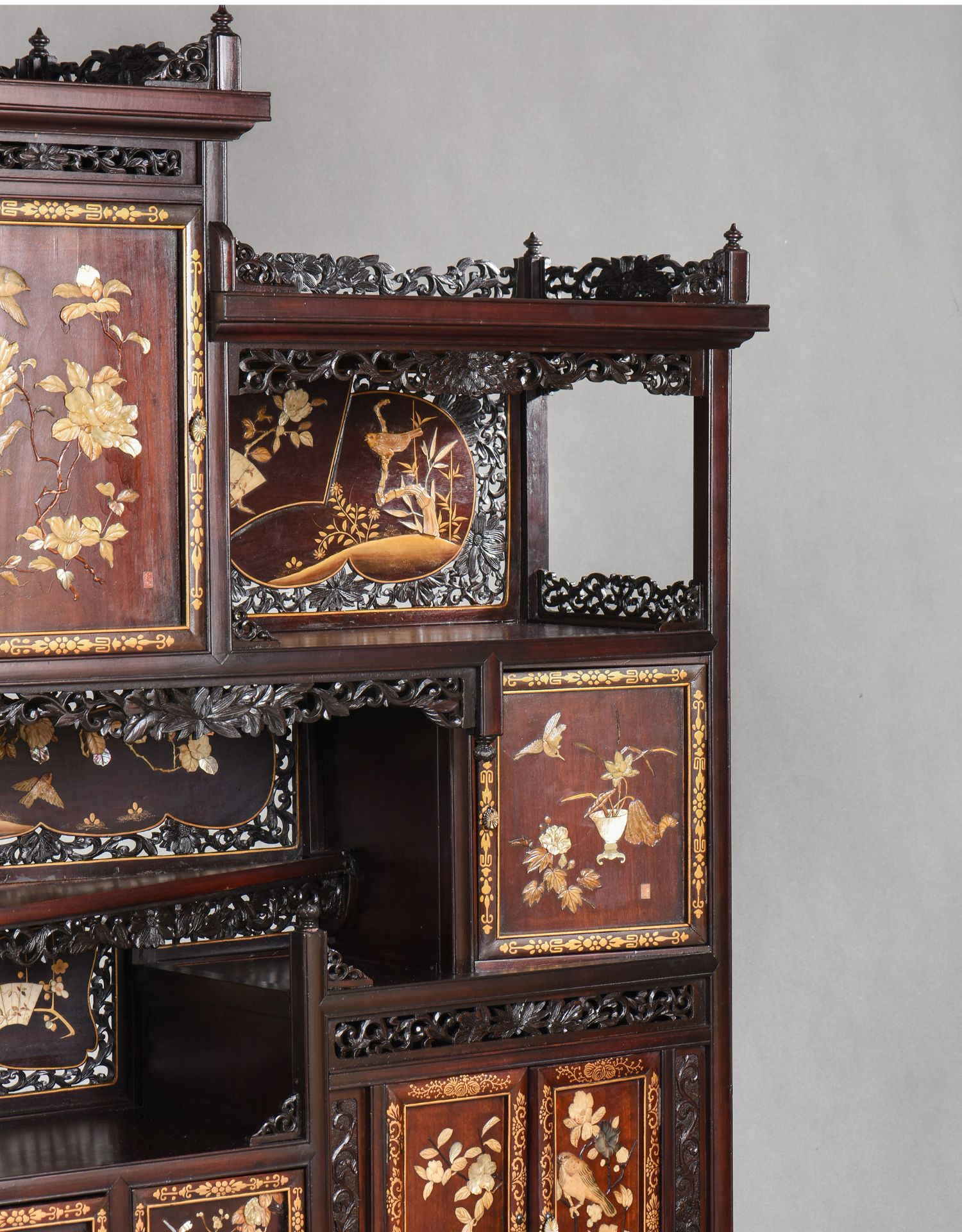 独角鹿西洋古董家具日本明治时期传统花鸟芝山镶嵌多宝阁立柜