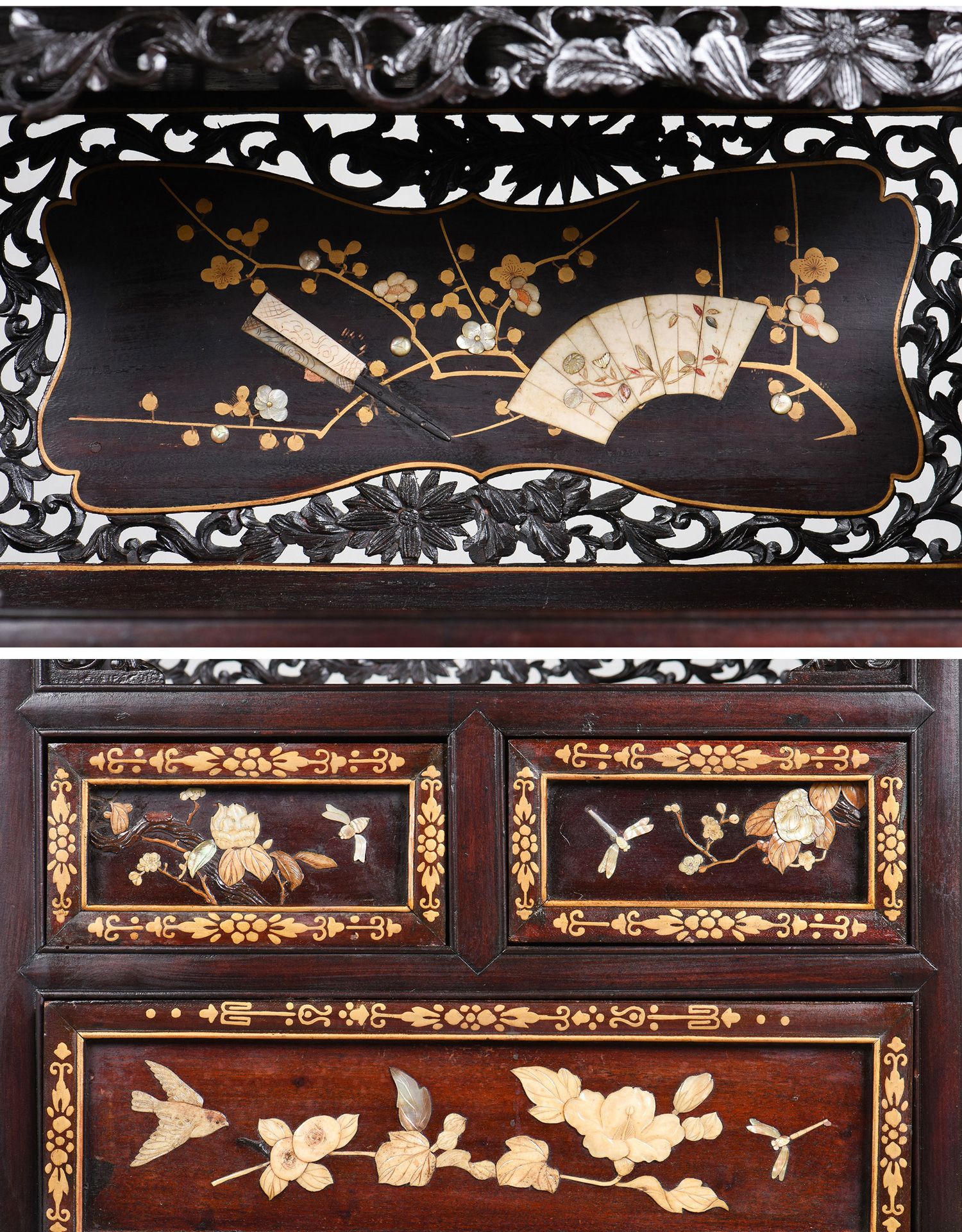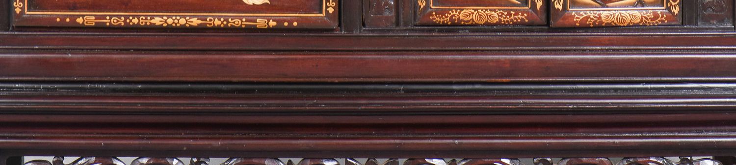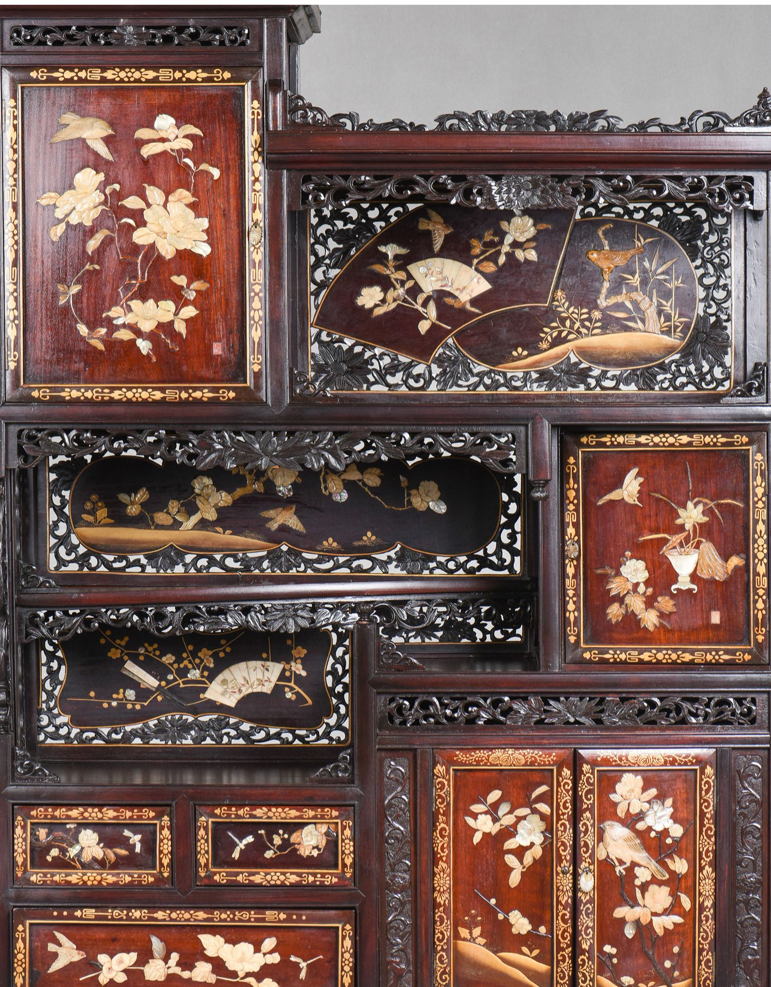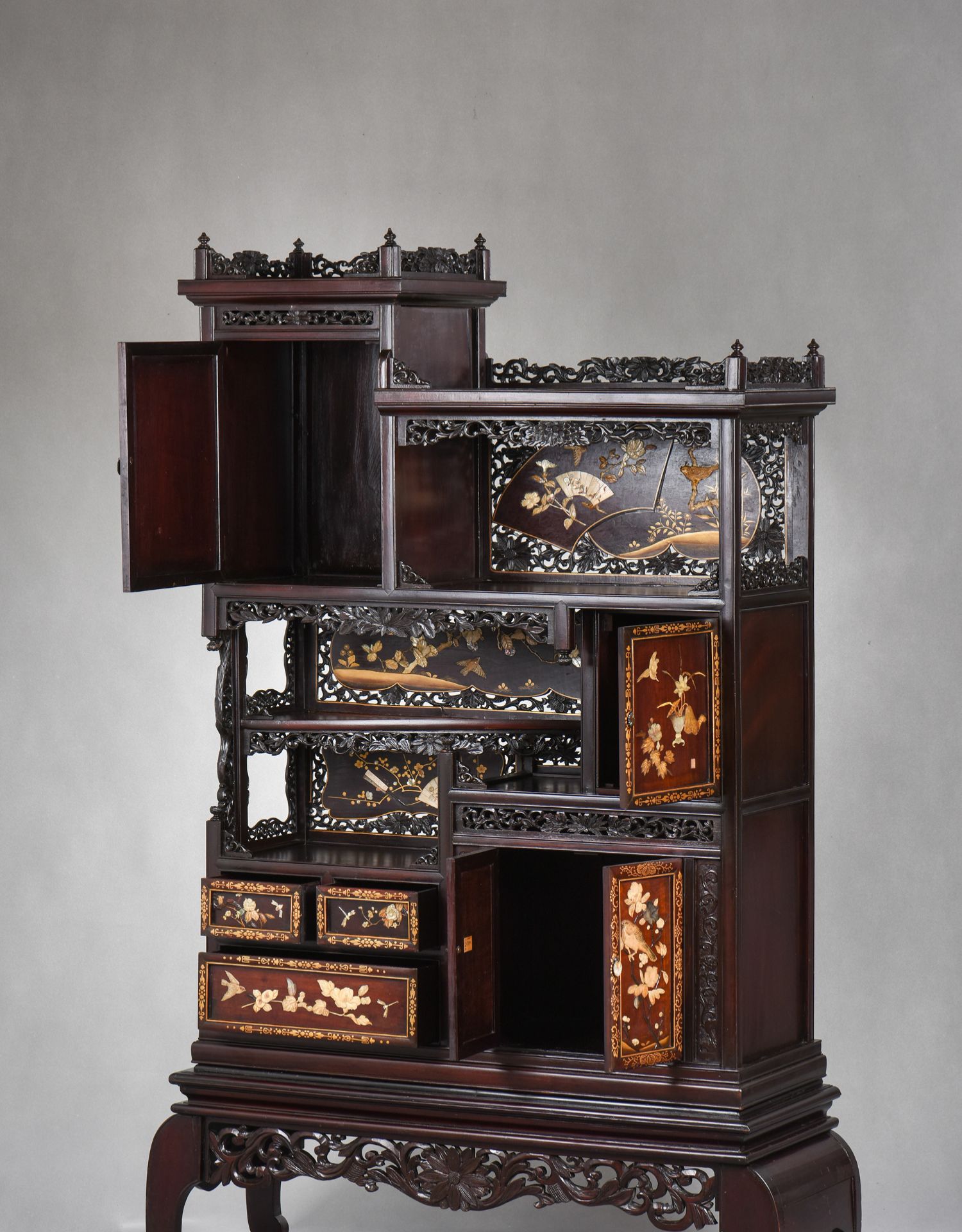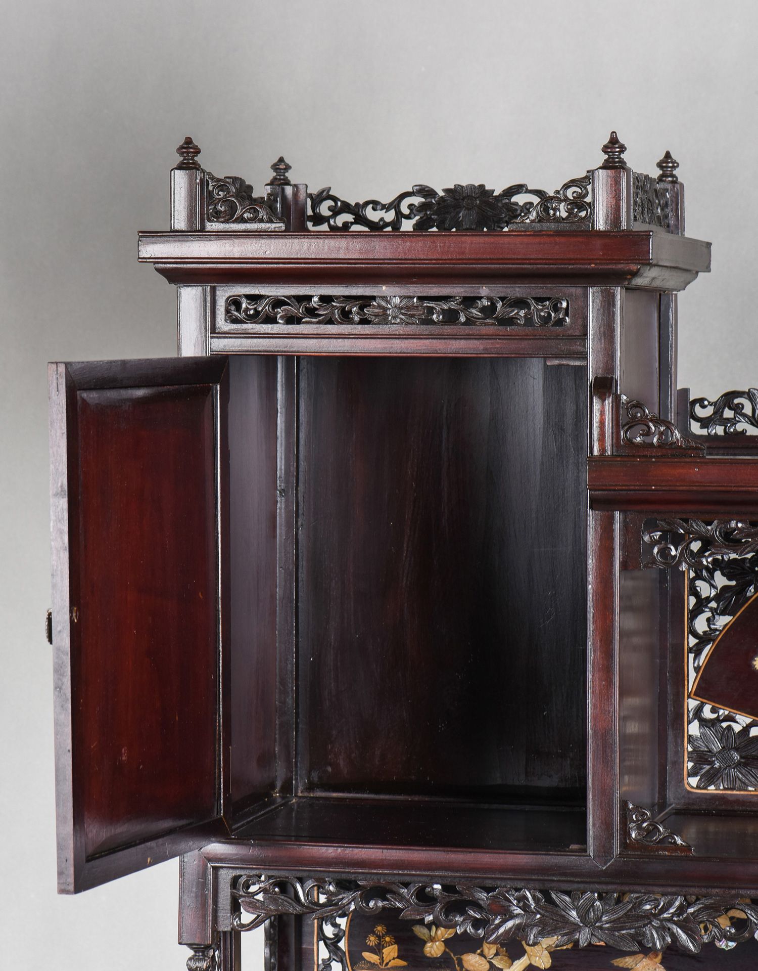 独角鹿西洋古董家具日本明治时期传统花鸟芝山镶嵌多宝阁立柜