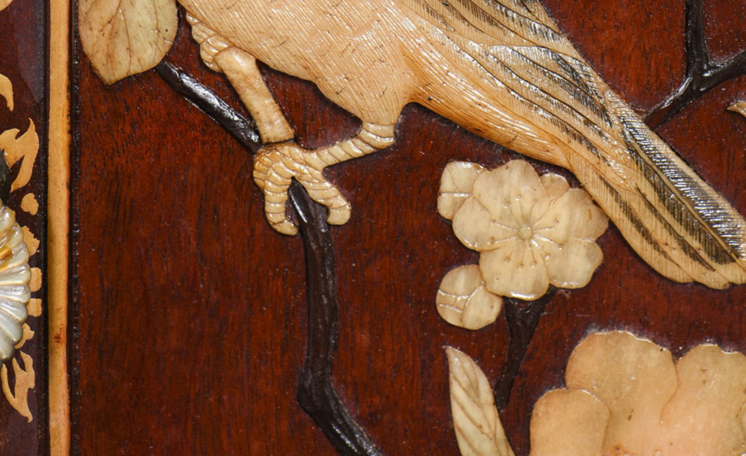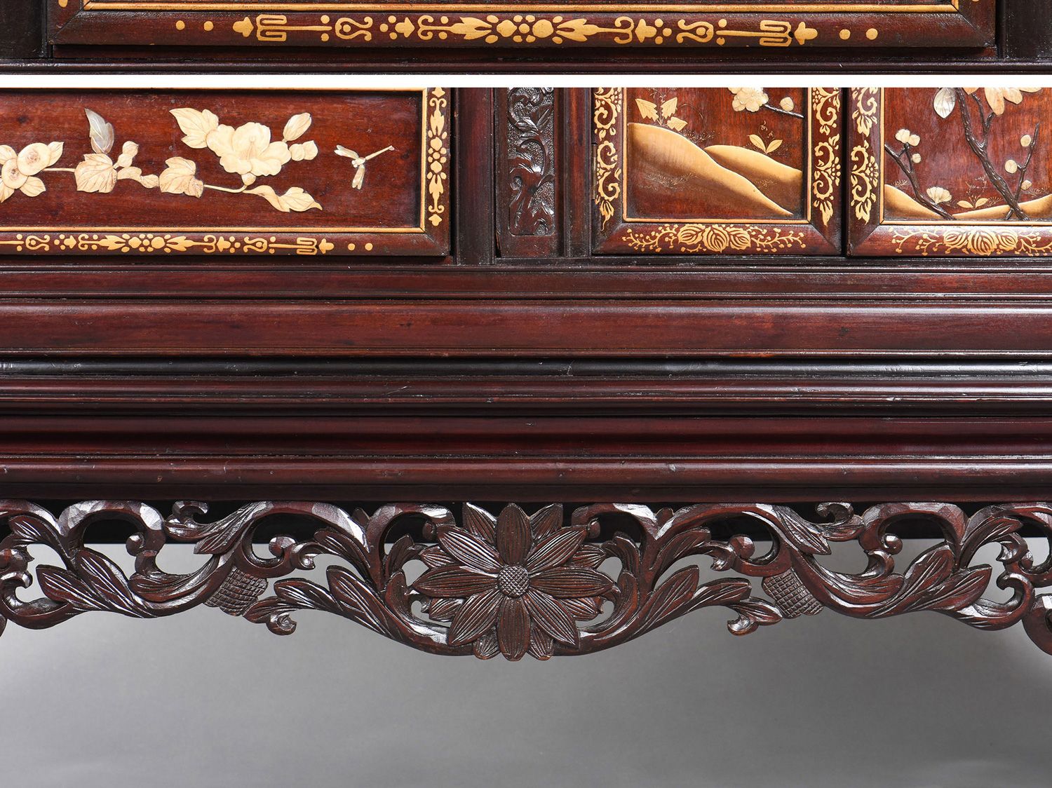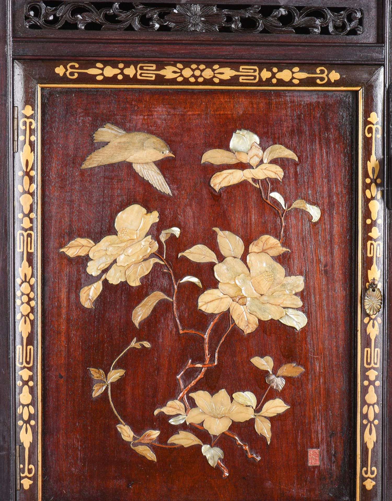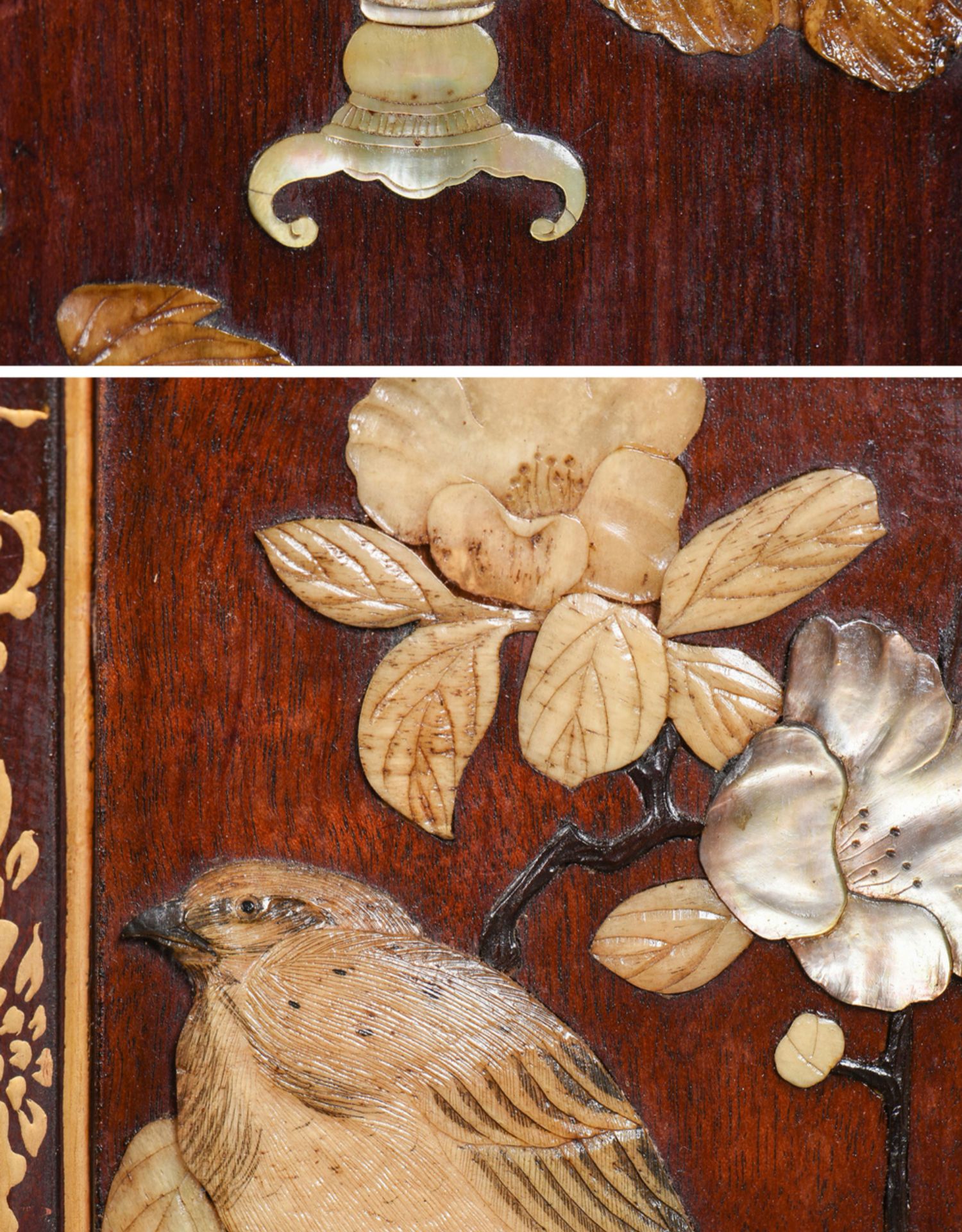 独角鹿西洋古董家具日本明治时期传统花鸟芝山镶嵌多宝阁立柜