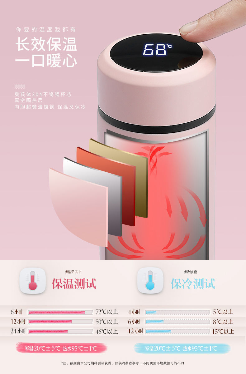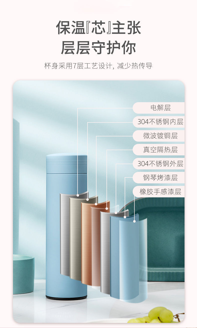 【YW】无忧购45元2件智能数显纯色保温杯男女304不锈钢手感漆B-950(截单后3-5天发货)