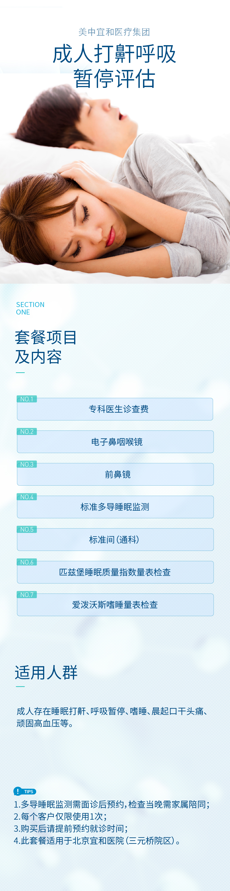 【暑期钜惠】成人睡眠打鼾呼吸暂停评估套餐