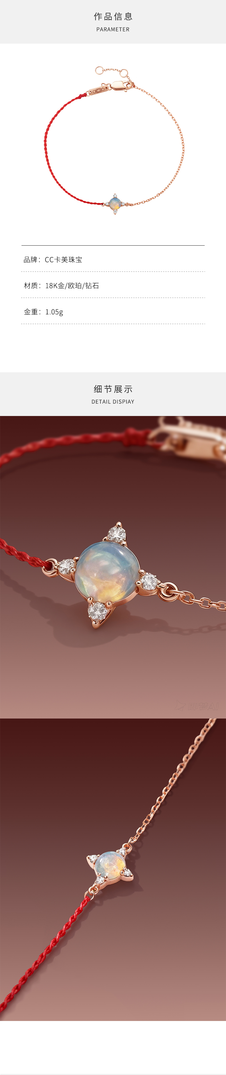 [C+Vogues系列]18K金钻石欧珀红绳手链#小结悦