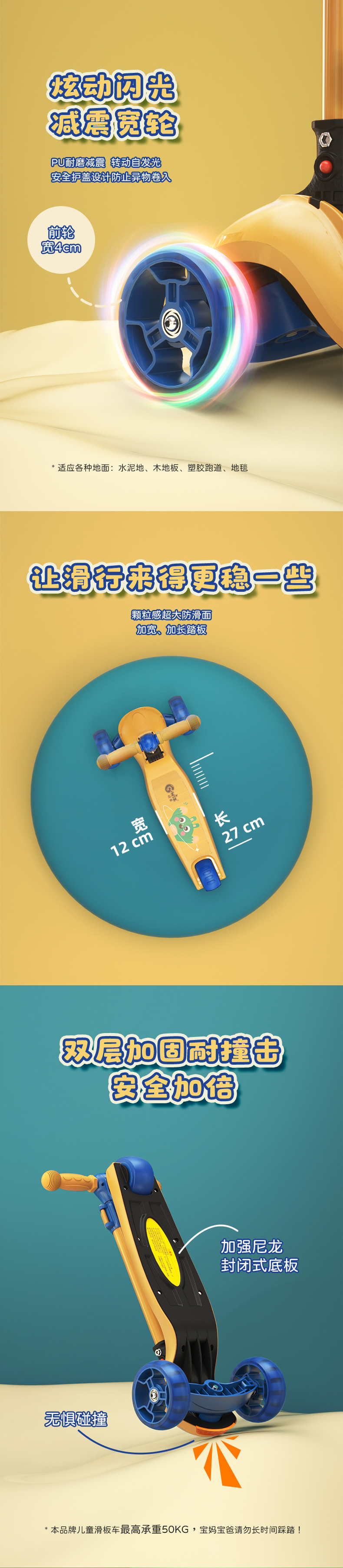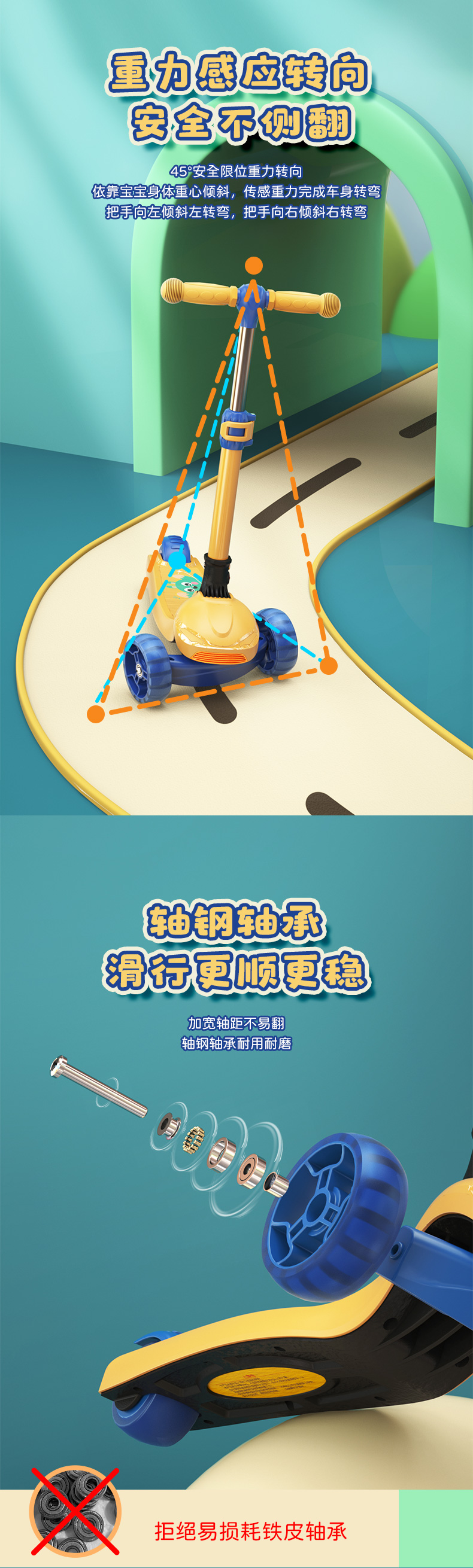 【K姐推荐】【重力感应转向,安全不侧翻】GWIZ顽学儿童滑板车滑滑车男女孩踏板宽轮溜溜车3-9岁
