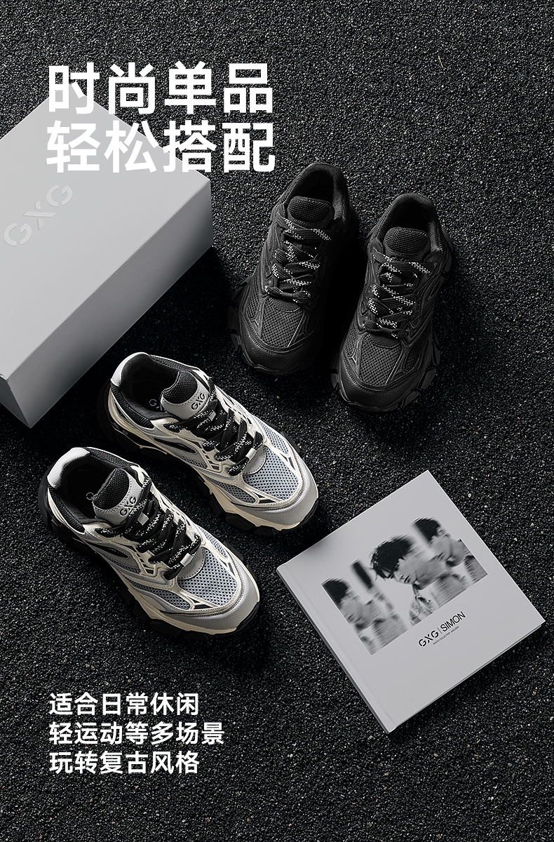 GXG男鞋复古慢跑鞋户外厚底增高潮鞋休闲厚底运动鞋老爹鞋