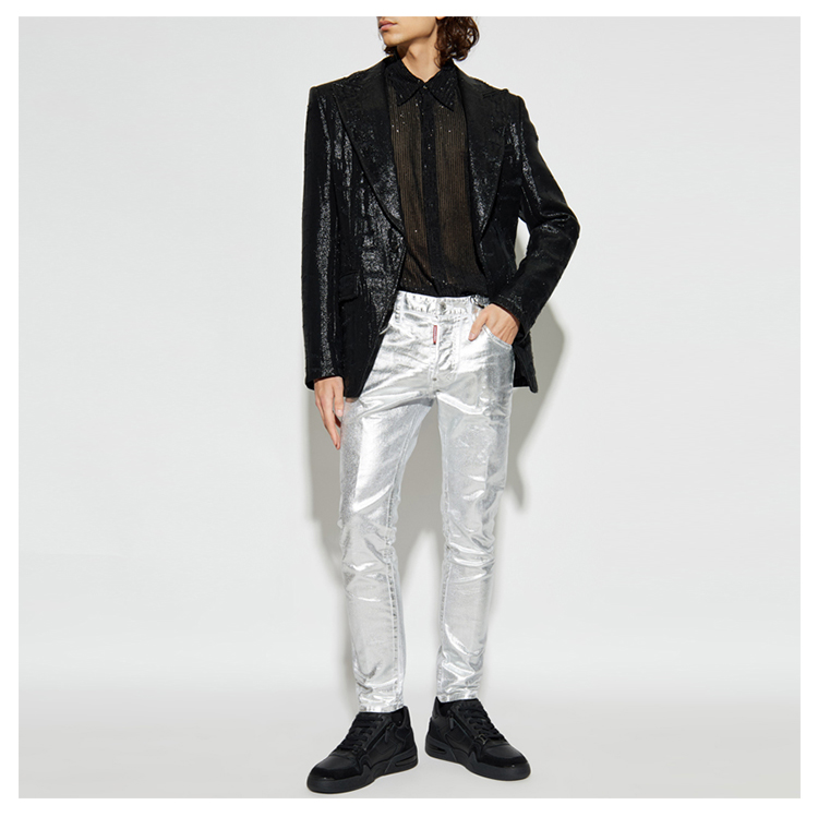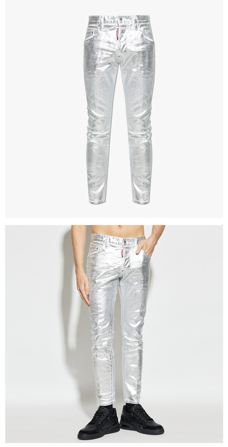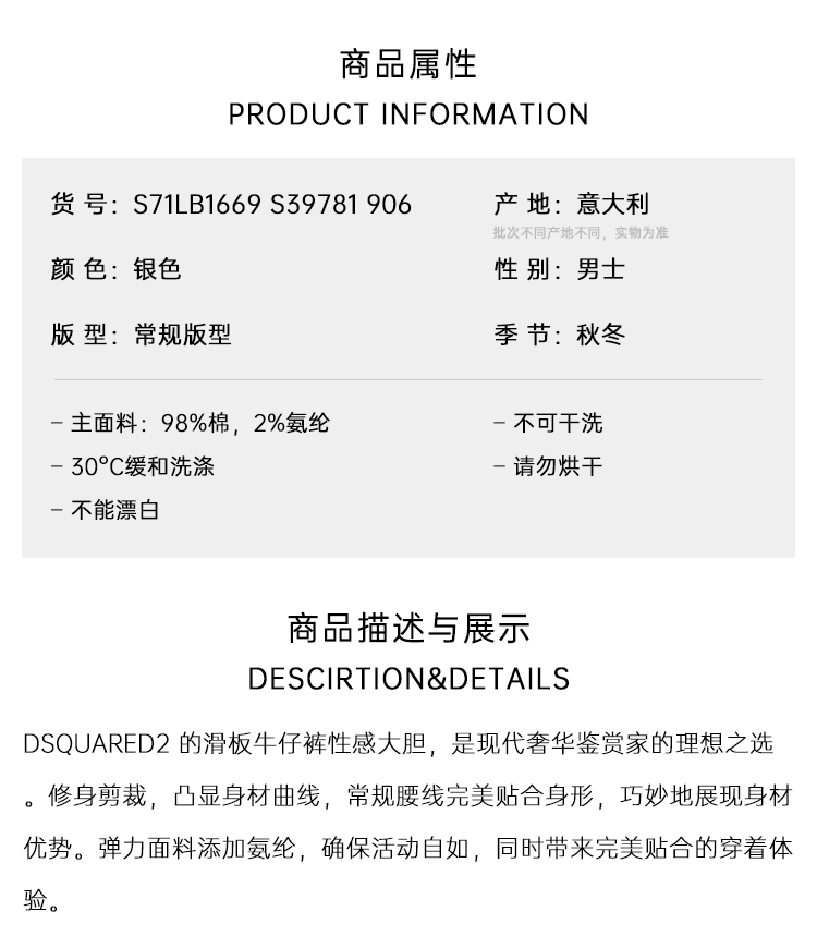DSQUARED2 男士字母徽标标签棉质休闲牛仔裤 银色 S71LB1669 S39781 906